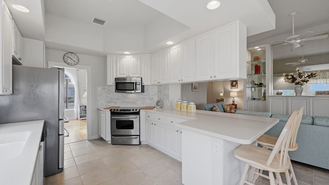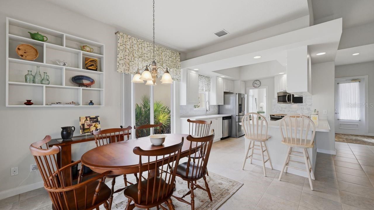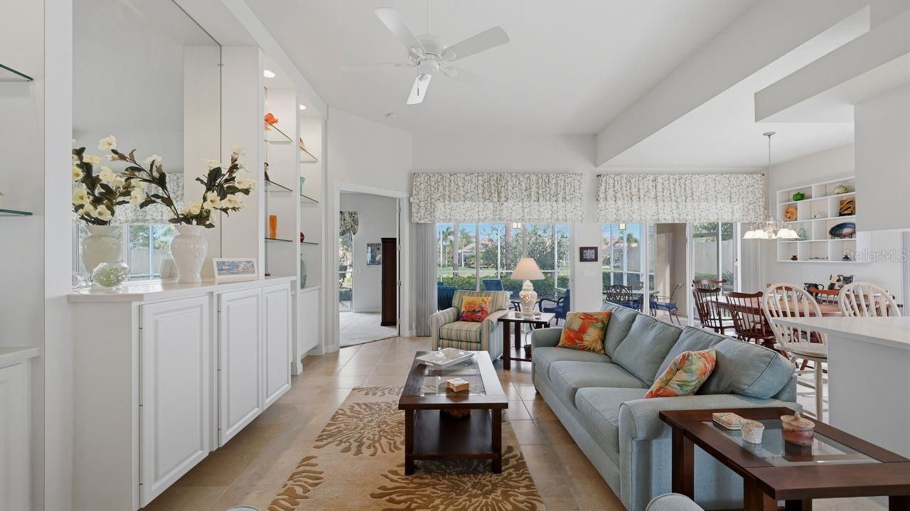 Set within the GATED COMMUNITY of IslandWalk at Wellen Park, this OAKMONT MODEL by DiVosta Homes sits on a PREMIUM LAKEFRONT HAMMERHEAD CUL-DE-SAC LOT, where peaceful water views and beautifully maintained surroundings create a setting that feels both private and connected to the vibrant energy of Wellen Park. The home welcomes you with SOARING CEILINGS, ABUNDANT NATURAL LIGHT, and a thoughtfully designed SPLIT FLOOR PLAN that balances open gathering spaces with private retreats. The interior carries a LIGHT, BRIGHT COASTAL PALETTE, complemented by BUILT-IN SHELVING IN THE LIVING ROOM and expansive SLIDING GLASS DOORS that frame the lake while drawing the outdoors inside. The spacious kitchen offers AMPLE CABINETRY, PULL-OUT SHELVING FOR EASY STORAGE, a TILE BACKSPLASH, and a charming BREAKFAST NOOK perfect for morning coffee while enjoying the tranquil water views. The OWNER’S SUITE is privately positioned away from the guest bedrooms, creating a peaceful place to unwind, while two additional bedrooms and a DEN WITH FRENCH DOORS provide flexible space for guests, a home office, or hobby room. Designed for both comfort and durability, the home features a TILE ROOF, HURRICANE SHUTTERS, and POURED CONCRETE EXTERIOR WALLS, a signature construction method known for strength and longevity. Practical touches continue with a LAUNDRY ROOM WITH CABINETS AND UTILITY SINK, generous storage throughout, and a TURNKEY PRESENTATION that allows you to move in and begin enjoying the Florida lifestyle immediately. Outdoor living truly shines with an EXTENDED LANAI overlooking the shimmering lake, offering a front-row seat to peaceful water views and colorful Florida sunsets. Life in IslandWalk centers around connection, activity, and relaxation with TWO CLUBHOUSES, RESORT-STYLE POOLS, a LAP POOL, TENNIS AND PICKLEBALL COURTS, scenic TRAILS AND WATERWAYS, and FULL-TIME ACTIVITIES DIRECTORS curating a calendar filled with social events, clubs, and gatherings throughout the year. Just minutes away, Downtown Wellen Park brings a lively mix of restaurants, shops, and waterfront entertainment, while baseball fans enjoy easy access to CoolToday Park, the spring training home of the Atlanta Braves. Beyond the neighborhood, some of Southwest Florida’s most celebrated GULF COAST BEACHES await just a short drive away, where soft sand, turquoise water, and breathtaking sunsets define the coastal lifestyle. Combining WATERFRONT SERENITY, SOLID CONSTRUCTION, and a RESORT-INSPIRED COMMUNITY, this home captures the essence of living well in one of Venice’s most sought-after lifestyle communities.