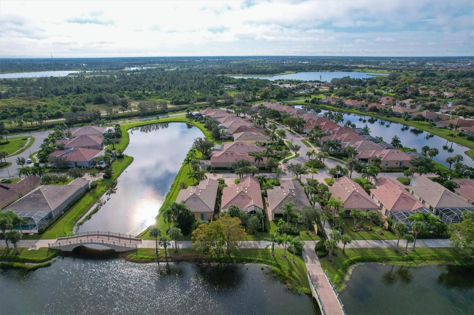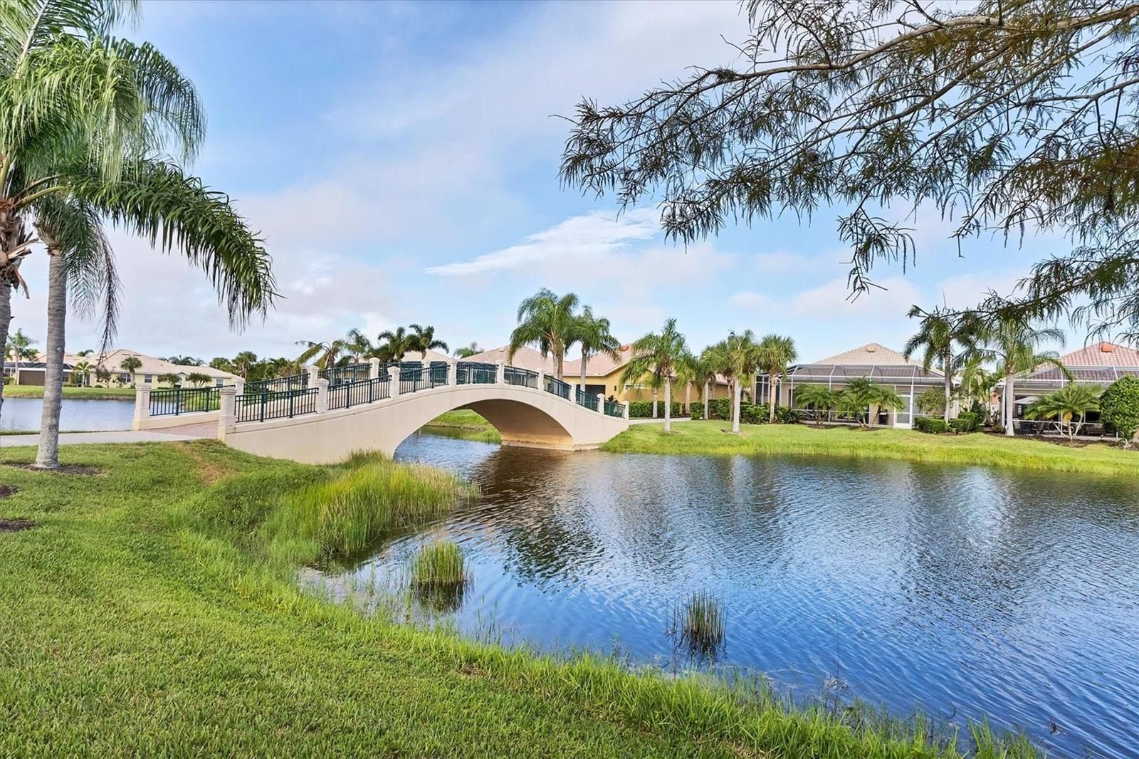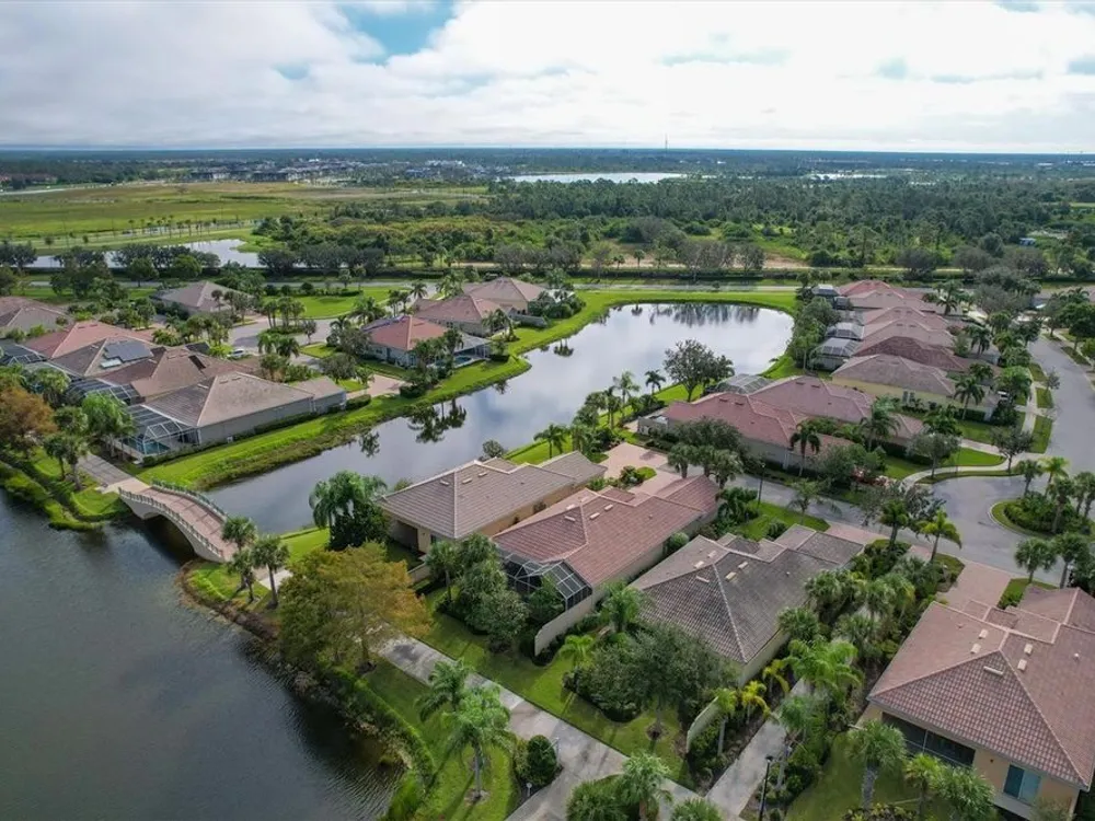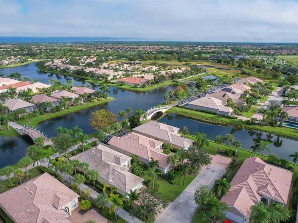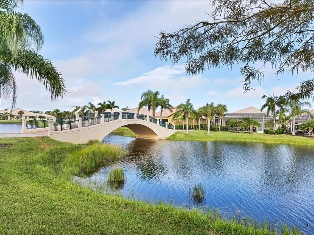 NOW AVAILABLE. Popular Oakmont floor plan 3BD/3BA/2CG. Located at the end of the Cul De Sac toward the end of Hammerhead with beautiful views of lakes, Venetian style bridges, and tropical landscaping. Enjoy your views from the large extended lanai- plenty of space and perfect for entertaining. Great room Open floor plan with high ceilings makes the space seem never ending and lots of windows let in the natural light to make this a bright and cheery place to be. Glorious built in shelves in living area is a great place to show off your collectibles and has plenty of room for large TV and all the equipment that goes with it. Kitchen offers plenty of cabinets and counter space, gorgeous tile back splash, and stainless steel appliances. Eat at the Island counter or the spacious breakfast nook. Tile flooring through out main area of home. Master bedroom with en suite his and hers bathrooms and tons of closet space. 2 Guest bedrooms and guest bath at other end of home for privacy. Laundry room is a dream with cabinets, wash sink, folding counter, and shelf for storage. This home was built with reinforced poured concrete for strength and energy efficiency. HURRICANE SHUTTERS. Islandwalk is a Premier resort style community offering 2 Clubhouses with swimming pools/spa and fitness centers, 12 lighted pickleball courts,8 Har Tru tennis courts, bocce ball, Dog Park and 2 activities directors coordinating tons of activities/social events. Designed w/ the outdoors in mind- walking paths and bridges flow throughout the community amidst the tropical landscape. Located minutes to Manasota Beach, Venice Beach, shopping, and Venice Downtown with its quaint shops, restaurants, and theatres. Plus just around the corner from the Atlanta Braves stadium and spring training camp, the NEW WELLEN PARK designed community with tons of restaurants, shops, and activities, The 80 acre Grand Lake with numerous outdoor water activities and walking trails. Don't miss out- this is the new upcoming PLACE TO BE!!! Start living your Florida Lifestlye Today!! LOOKING FOR A SNOWBIRD RETREAT? THE TURNKEY FURNISHINGS ARE AVAILABLE SEPARATELY. 3D WALKTHROUGH AT : https://my.matterport.com/show/?m=wh7a5XoncPi SEE IT TODAY!
