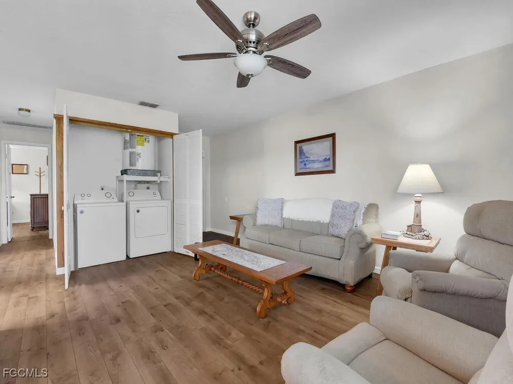 Welcome to Cross Creek Country Club — where privacy, serenity, and convenience come together to offer the country club lifestyle you’ve been dreaming of—without the high price tag. This charming 2-bedroom, 2-bath end unit is move-in ready! As you step inside, you're welcomed by stylish wood-look laminate flooring and soft, neutral tones that create a warm, inviting atmosphere. The open-concept living and dining area is filled with natural light and leads seamlessly to your private lanai, perfect for relaxing or entertaining. The well-appointed kitchen is just off the main living space, making hosting guests effortless. The spacious primary suite features an en-suite bath with walk-in shower, while a comfortable guest bedroom and full bath provide a perfect setup for visitors or a home office. Cross Creek Country Club offers affordable golf with membership perks, plus a host of amenities including tennis courts, pickleball, bocce, swimming pool and spa, a clubhouse with restaurant and bar, and an active social calendar full of clubs and events. Ideally located along the Daniels Corridor, you're just minutes from SWFL International Airport, shopping, dining, entertainment, and the beautiful beaches of Southwest Florida. Don’t miss this incredible opportunity to live the Florida golf and social lifestyle at an unbeatable value!