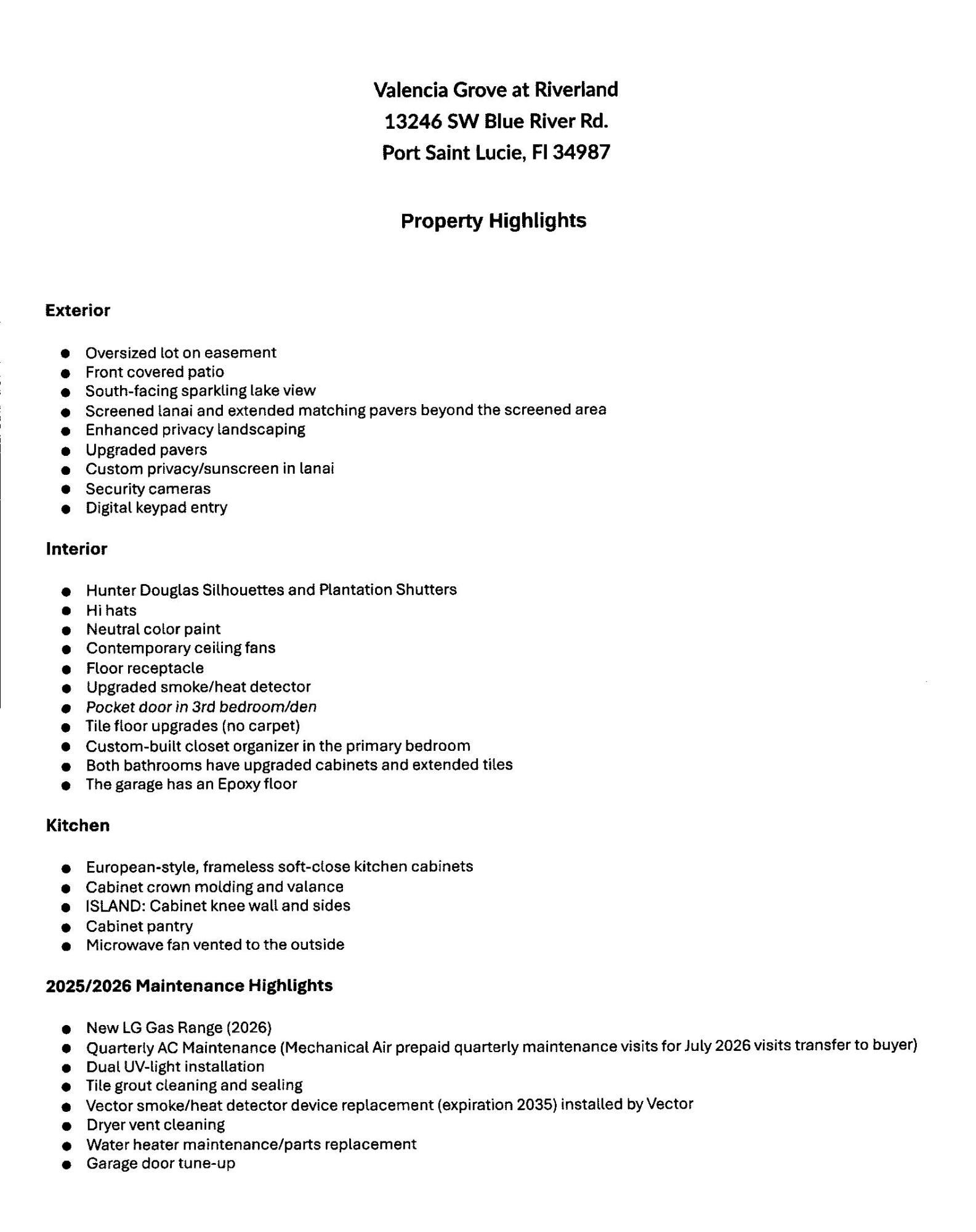 Experience the pinnacle of active 55+ living at Valencia Grove at Riverland! The popular Sierra model offers 3BD/2BA and 2,064 sq. ft. of Florida lifestyle living space. Enjoy south-facing, wide-lake views from this beautiful home on an oversized lot. The screened lanai boasts upgraded pavers, privacy landscaping, and shade; extended patio pavers enhance the view. This contemporary, move-in-ready home features European-style, frameless soft-close kitchen cabinets, a large kitchen Island perfect for entertaining, and a custom pantry. Enjoy neutral, calming paint colors, modern ceiling fans and lighting, Hunter Douglas Silhouettes & Plantation Shutters, and a custom-designed primary closet. Built with impact glass, upgraded appliances, contemporary offset tile throughout, and no carpet! Valencia Grove at Riverland is part of an extraordinary master-planned community offering an unparalleled resort lifestyle. Residents enjoy access to a clubhouse with a resort-style pool, full-service restaurant, outdoor bar, and card and billiards rooms. Riverland offers an impressive 24-acre Sports & Racquet Club featuring a 51,000 sq. ft. facility with indoor and outdoor lap pools, spa/hot tub, Wellness & Fitness Center, restaurant, and an incredible variety of outdoor sports, including 15 tennis courts, 53 pickleball courts (the largest private facility in Florida), and 16 bocce ball courts. The community also offers a 5-acre Arts & Culture Center with art, pottery, and cooking classes, and a community garden. The beautiful 12-acre Paseo Park, and Recreational and dog parks are all designed to enhance active, social, and engaging living.