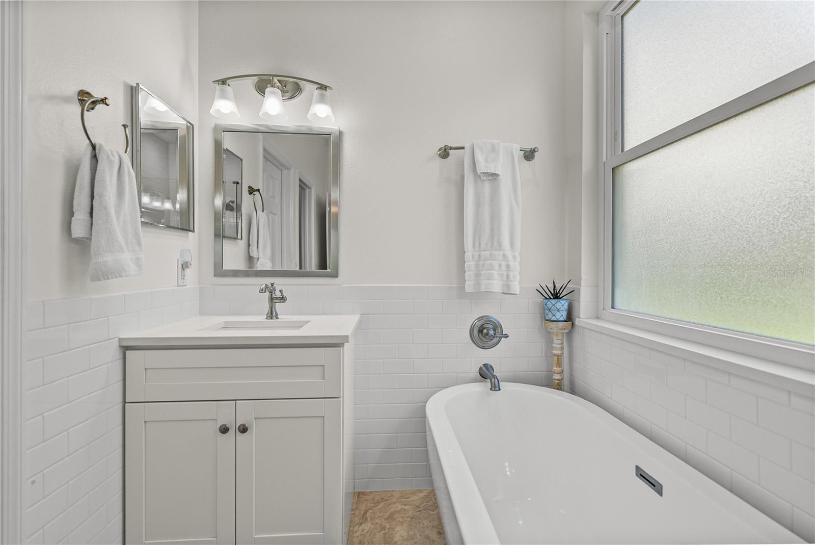 Peacefully situated within the low-maintenance section of The Heathers at Lake Jovita, this 4 bedroom, 3 bathroom, 2 story home offers inviting curb appeal framed by lush landscaping and sidewalk-lined streets. Inside, a light-filled formal living and dining area creates an immediate sense of charm with built-in bookshelves, cabinetry, crown molding, and an adorable window seat that makes the perfect reading nook. Tile flooring runs throughout the first floor for a seamless, elevated feel that flows easily into the family room. Designed for everyday living and effortless entertaining, the family room opens naturally to the eat-in kitchen and to the expansive screened paver lanai through sliding glass doors. The kitchen has been nicely updated and offers granite countertops with breakfast bar seating, stainless steel appliances, a generous pantry, and a cozy dinette for casual meals. Owners will appreciate the peace of mind and fresh aesthetic of newer windows and sliding doors under warranty, newer flooring throughout the home, and all three bathrooms having been beautifully remodeled. The first floor includes two bedrooms and two full bathrooms. The tranquil primary suite provides its own access to the lanai, spacious sleeping quarters with room for a desk nook, a large walk-in closet, and a completely reimagined ensuite featuring a walk-in shower, separate soaking tub, Quartz countertops with dual sinks, new fixtures, and a comfort-height toilet. A second first-floor bedroom sits near another fully renovated bathroom with a walk-in shower, ideal for guests. Follow the newly carpeted staircase to the second floor where two comfortable guest bedrooms, each with new ceiling fans, sit near the home’s third full bathroom with a tub/shower combo. Additional upgrades include security cameras, a Nest thermostat, LED closet lighting, and WiFi-controlled irrigation and garage access. Outdoor enjoyment comes easy on the impressive 25x40 foot screened lanai with pavers, covered seating, and a ceiling fan. It’s the perfect spot to unwind while overlooking magnolias, crepe myrtles, and the peaceful surroundings this community is known for. Residents of The Heathers enjoy a maintenance-free lifestyle with services that include lawn and landscaping care, tree trimming, roof and exterior cleaning, basic cable service through Spectrum, and periodic exterior painting. Lake Jovita itself offers a gated, resort-style setting with amenities such as parks, a playground, dog park, and sports courts for pickleball and basketball. Optional memberships open the door to two championship golf courses, world-class Har-Tru clay tennis courts, a Junior Olympic-size pool, a fitness center, and clubhouse dining. Give us a call today to schedule your private tour of this sensational property.