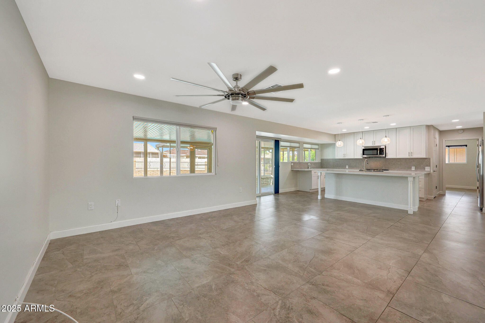 EXACTLY ON POINT! Bright open floor plan with tile flooring throughout and AZ room with mini-split. 2 Bed, 2 Bath with den and sparkling pool. Fully remodeled and move-in ready with extensive upgrades: dual.pane windows (2021), roof (2020), A/C (2017) with new insulated ductwork, water heater & garage door(2021). Kitchen features white shaker soft-close cabinets, 42'' uppers, quartz counters, stainless appliances and large island. Spacious primary suite with dual sinks, walk-in shower, private toilet room and extra large walk-in closet. Close to all amenities and shopping.