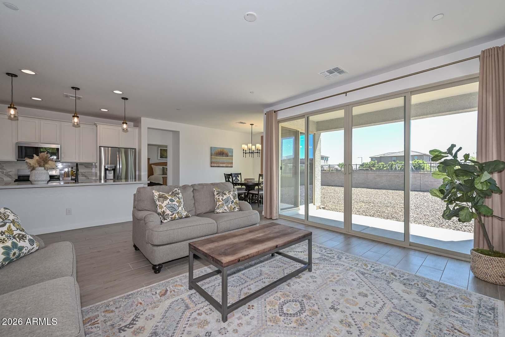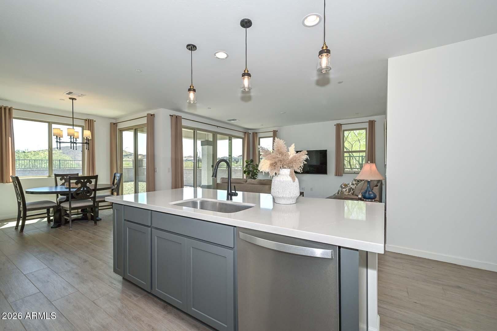 Welcome to Sonoran Place in NW Peoria. Built in 2019, this well-kept 1,781 sq ft home offers a smart, open layout with 3 bedrooms plus a den, ideal for a home office, playroom, or flex space. The kitchen opens to the main living area, creating an easy flow for everyday living and entertaining. The spacious primary suite offers comfort and privacy, while the backyard is a standout with beautiful mountain views and room to relax and enjoy Arizona sunsets. Located in a desirable community near shopping, dining, parks, and freeway access, this home blends newer construction, functional space, and scenic surroundings.