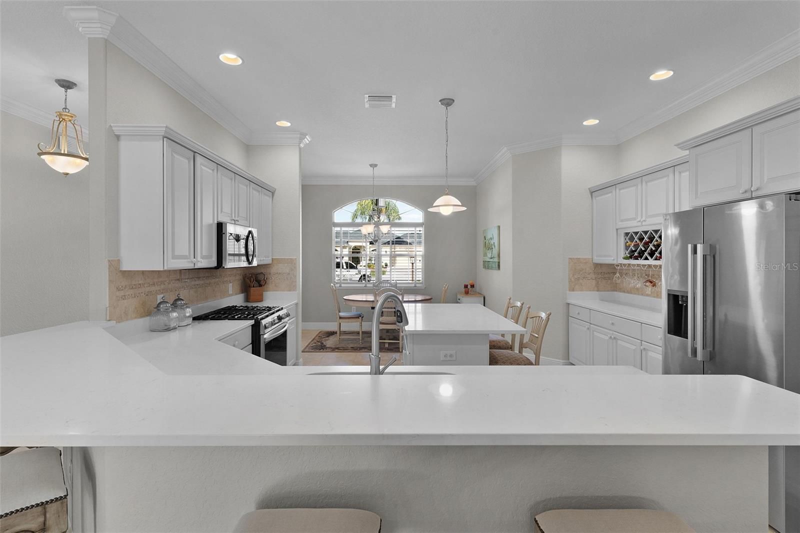 Experience the essence of “Living the Dream” in this meticulously maintained 3-bedroom, 2-bath Williamsburg PREMIER HOME, perfectly situated in the highly sought-after Village of Bridgeport at Lake Sumter. Located in Florida’s most desirable golf community—, this home offers timeless elegance and modern upgrades, including a newer roof (2024), NEWER stainless-steel appliances and QUARTZ Countertops. The thoughtfully designed split floor plan is perfect for entertaining, featuring a kitchen that flows seamlessly into the spacious dining and living areas with soaring 10-foot ceilings. The living space opens onto a tranquil patio area overlooking a well maintained and landscaped yard. The primary suite impresses with tray ceilings, dual walk-in closets, and a spa-inspired en-suite bath offering dual vanities, a Roman shower, and a luxurious garden tub. Additional highlights include a garage designed to accommodate two cars plus 2 golf carts, a driveway with ample parking space, and ROOM FOR A POOL. This home is in a prime location just 3 minutes from Lake Sumter Landing Square and 1 minute from Palmer Country Club & Golf Course & top tier practice facilities and Bridgeport Pool, this property perfectly blends convenience and lifestyle. Schedule your exclusive tour today and make this dream home yours!
