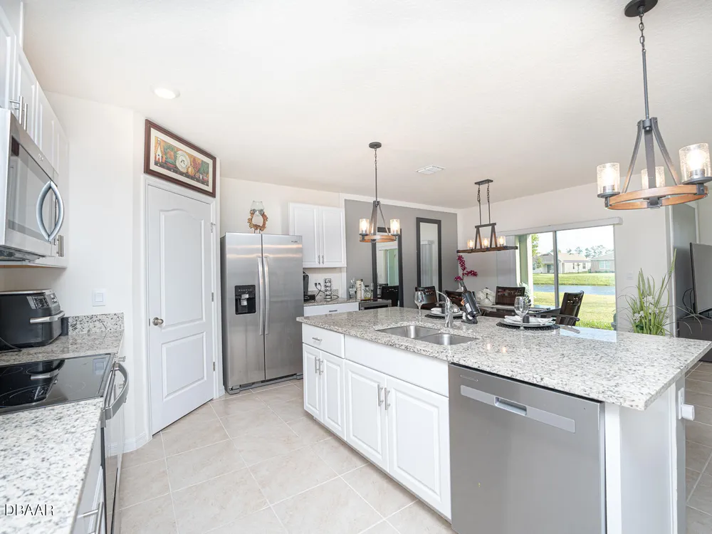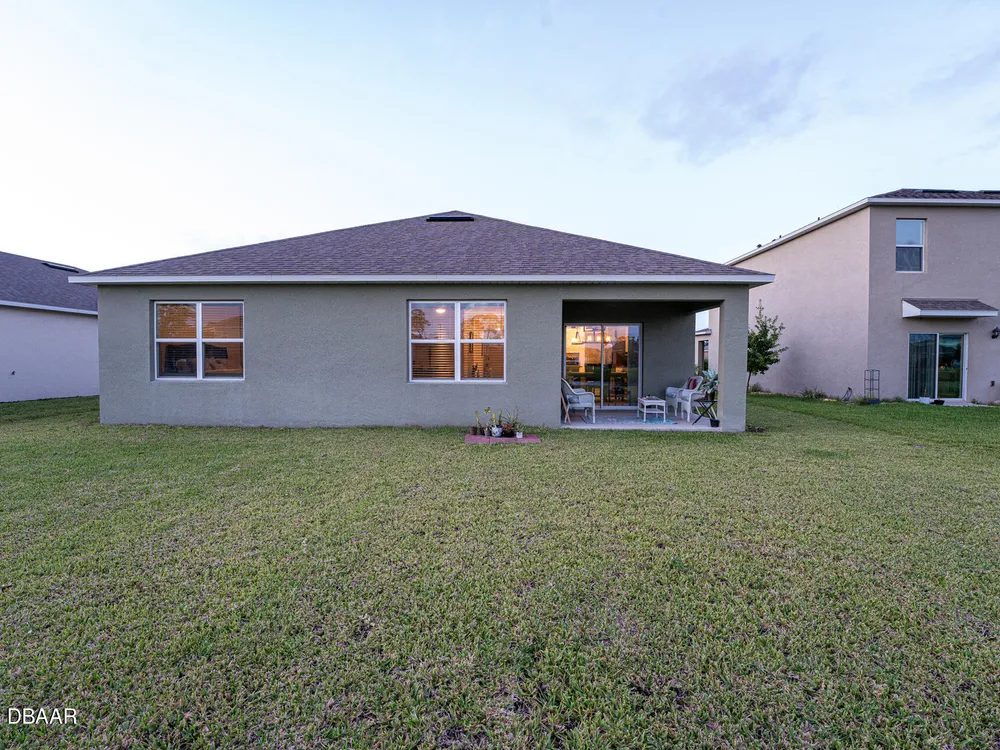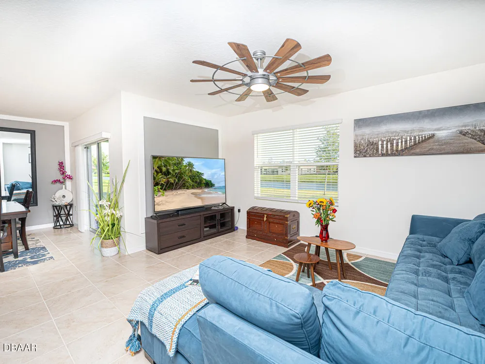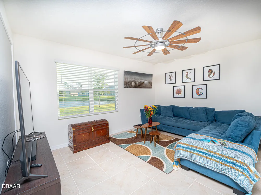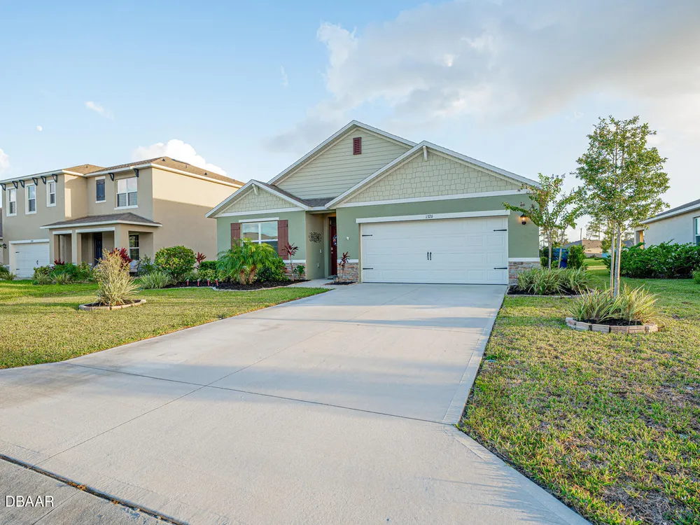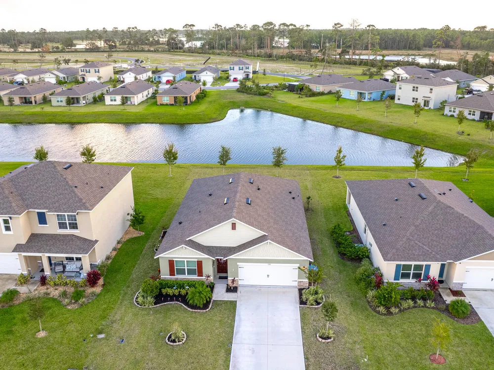 Immaculate 2023 Cali Model in Halifax Plantation. Smart home tech lets you control the video doorbell, garage, lights, locks and thermostat from one app. Nine foot ceilings and an open floor plan welcome you. Four bedrooms offer flexible space for an office, den or guest suite. The kitchen features a large granite island, stainless appliances and a custom made, shelved walk in pantry. Upgraded lighting and a new living room fan adds style. The primary suite has a walk in shower, dual vanity and a large custom shelved closet. Three bedrooms, a laundry room and a two car garage add convenience. Tile floors anchor the main living areas with carpet in bedrooms. Relax on the covered lanai with a peaceful pond view. Front and back sprinklers. Community amenities include an 18 hole golf course with pro shop, clubhouse with two restaurants, pool, tennis courts and fitness center. Minutes to the scenic loop, Tomoka State Park, the beach and I95. Don't miss your chance to make it yours!