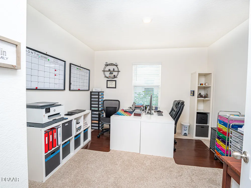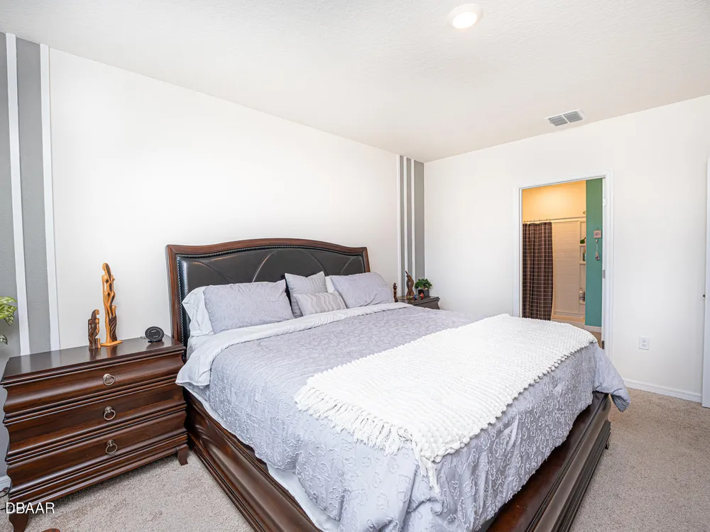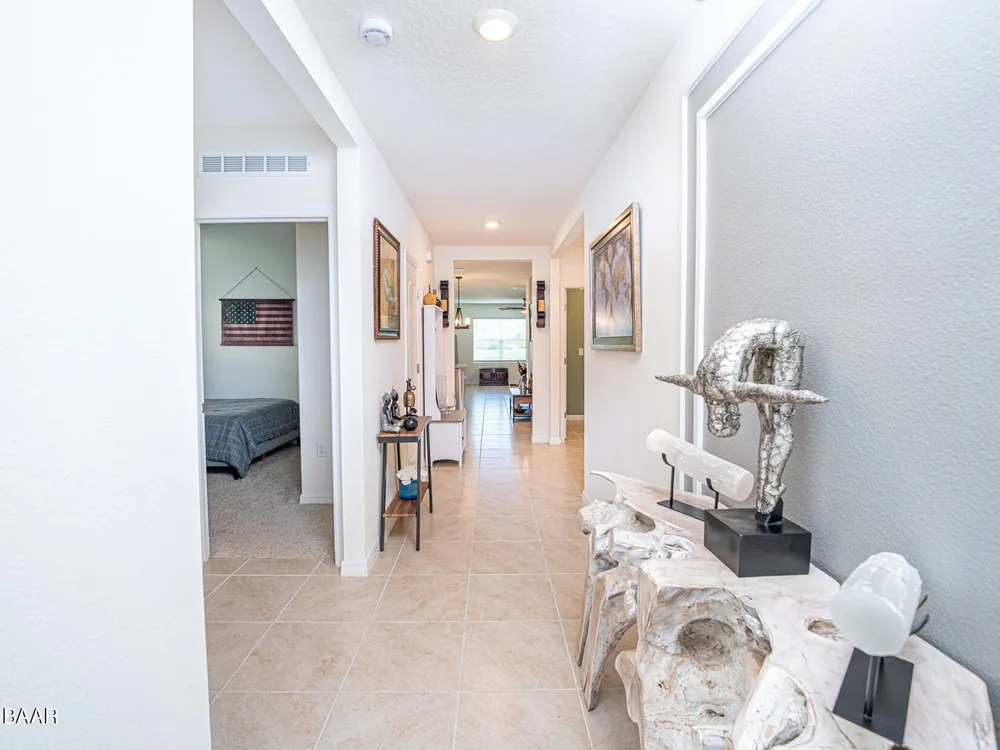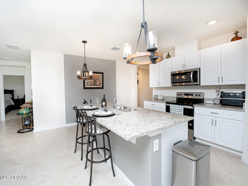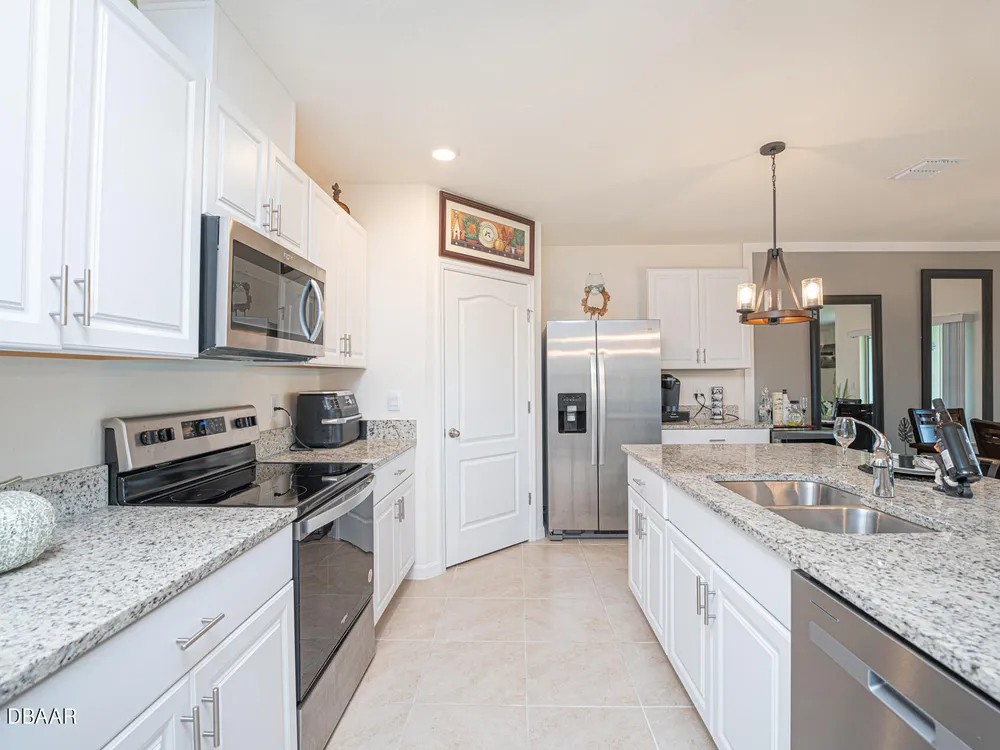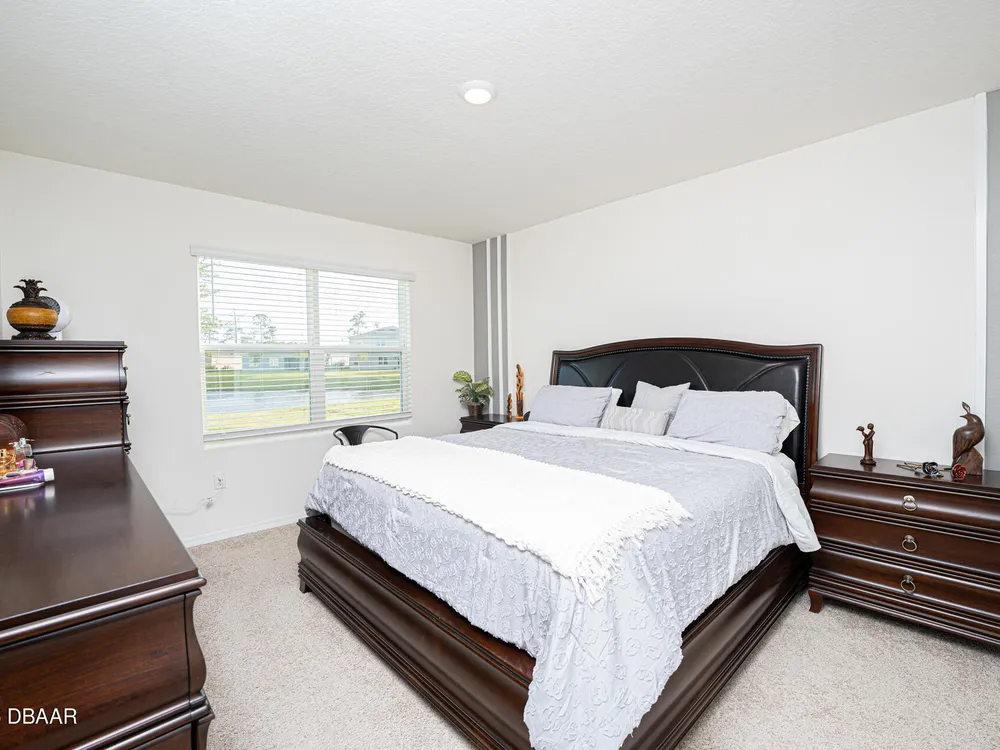 Immaculate 2023 Cali Model in Halifax Plantation. Smart home tech lets you control the video doorbell, garage, lights, locks and thermostat from one app. Nine foot ceilings and an open floor plan welcome you. Four bedrooms offer flexible space for an office, den or guest suite. The kitchen features a large granite island, stainless appliances and a custom made, shelved walk in pantry. Upgraded lighting and a new living room fan adds style. The primary suite has a walk in shower, dual vanity and a large custom shelved closet. Three bedrooms, a laundry room and a two car garage add convenience. Tile floors anchor the main living areas with carpet in bedrooms. Relax on the covered lanai with a peaceful pond view. Front and back sprinklers. Community amenities include an 18 hole golf course with pro shop, clubhouse with two restaurants, pool, tennis courts and fitness center. Minutes to the scenic loop, Tomoka State Park, the beach and I95. Don't miss your chance to make it yours!