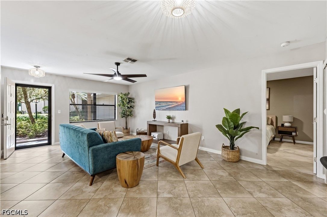 Tucked into lush greenery, this first-floor condo feels more like a private retreat than a typical unit. This beautifully renovated first-floor 2 bedroom plus den, 2 bathroom condo offers 992 square feet of thoughtfully designed space. Enjoy the ease of true first-floor living with no stairs or elevators to worry about. Inside, you’ll find all tile flooring (no carpet anywhere), custom blinds throughout, and a bright, open layout. The updated kitchen features stainless steel appliances, granite countertops, soft-close cabinetry, and a large Kraus sink, along with a convenient side-by-side washer and dryer with additional storage. Both bedrooms offer walk-in closets with custom built-ins, and the versatile den provides the perfect space for a home office or additional guest space. Furnishings are negotiable, offering flexibility to make the space your own. Step out into the enclosed four-season room and you’ll immediately feel the difference—this is not your typical condo view. Featuring plexiglass windows that can be opened to let in a breeze or closed, this space offers incredible versatility. Surrounded by lush, mature landscaping, the setting is private and peaceful, creating the feel of your own garden oasis. It’s the perfect spot to enjoy your morning coffee or unwind in the evening without feeling exposed to neighboring units. Located in Cross Creek Country Club, this condo includes access to both the association pool and the main Cross Creek pool, giving you multiple options to relax and unwind. Residents enjoy a pay-to-play golf course with highly discounted member rates (including cart)—a great perk for golf lovers. The community also features a clubhouse with restaurant and bar, tennis and pickleball courts, bocce ball, a putting green, and an active social calendar. Whether you're looking for a seasonal getaway or a full-time home, this is a great opportunity to enjoy the Cross Creek lifestyle in a move-in ready, first-floor unit.