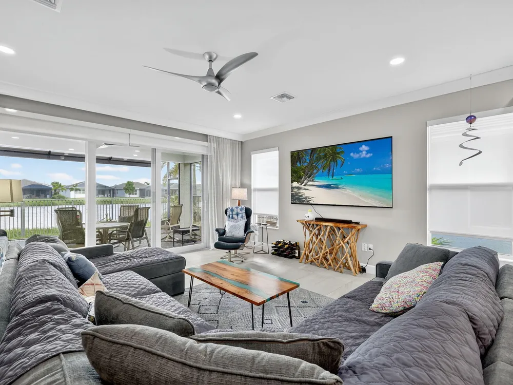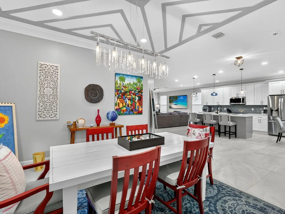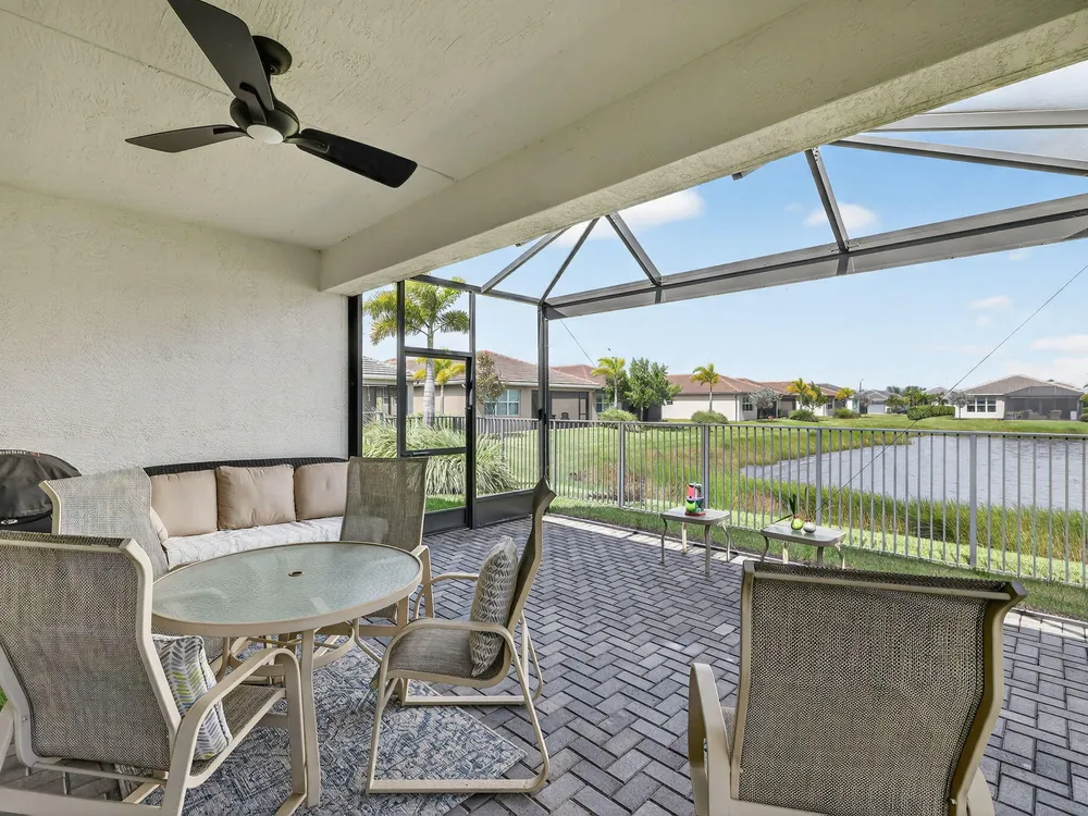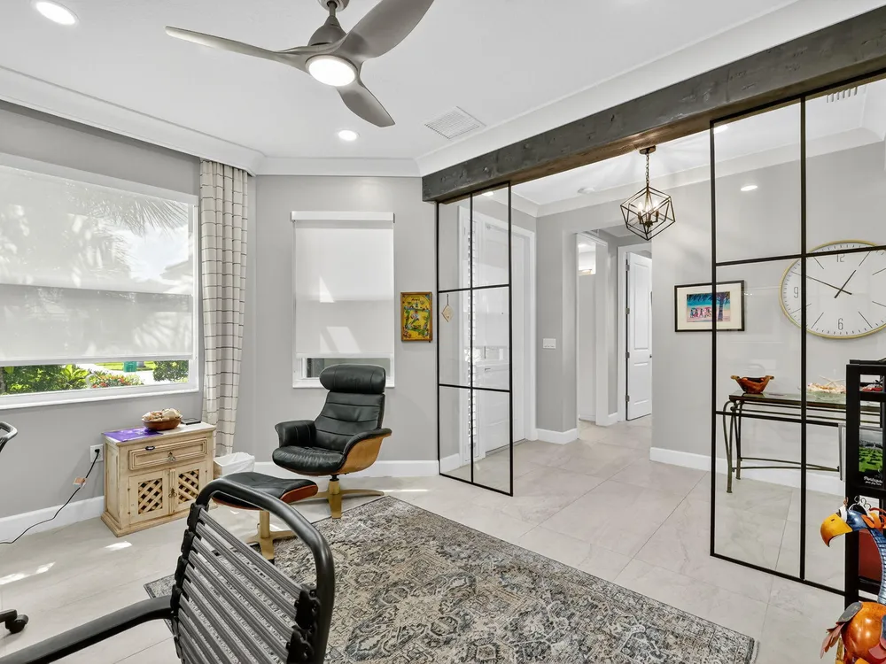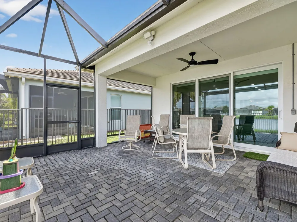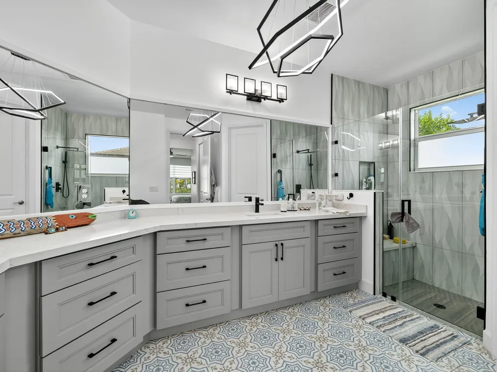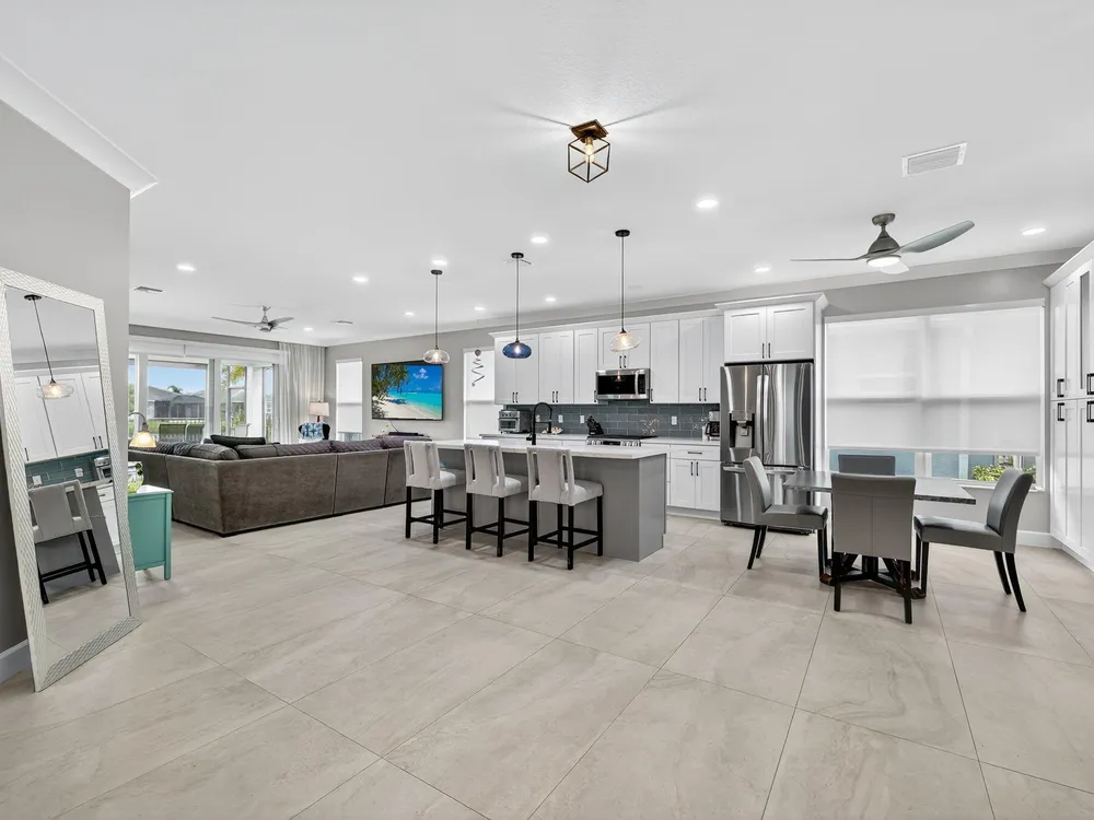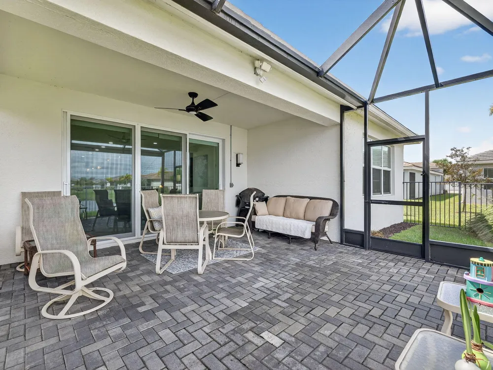 Welcome to GL's premier 55+ community of Valencia Grove at Riverland--where sophistication meets thoughtful design. Originally a Marsala model, this exceptional home has been custom reimagined and reconfigured by an architect to create a truly one-of-a-kind residence offering luxury, comfort, and functionality throughout its 2,127 square feet under air. From the moment you arrive, the widened driveway, sealed pavers, and refreshed landscaping make a striking first impression. Inside, every detail has been meticulously curated, featuring 24'' x 36'' porcelain tile flooring, crown molding, designer lighting, premium paint, and solar shades throughout. The chef's kitchen is a showpiece with custom cabinetry, a full pantry, pull-out shelving, a farmhouse-style island sink, high-end backsplash,