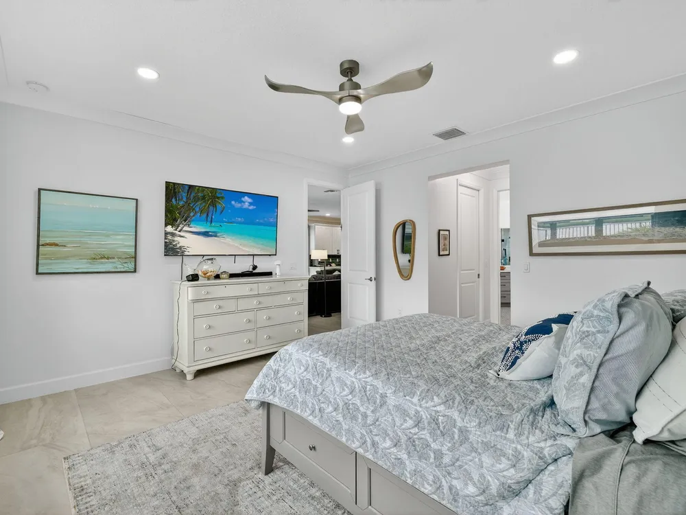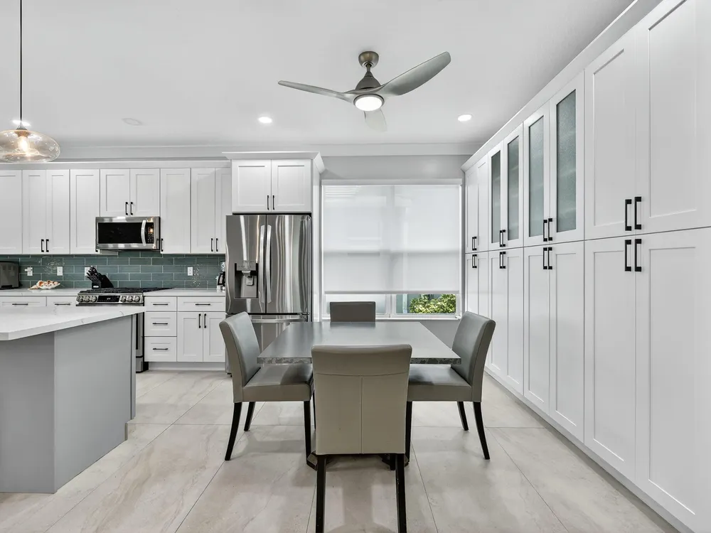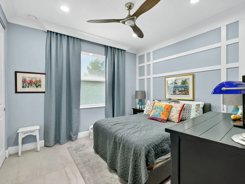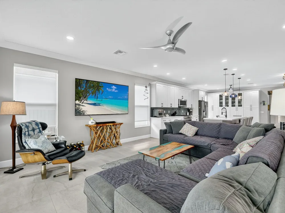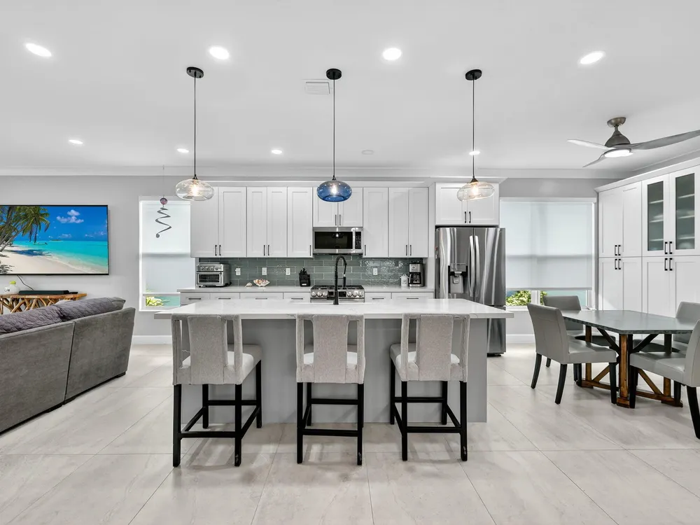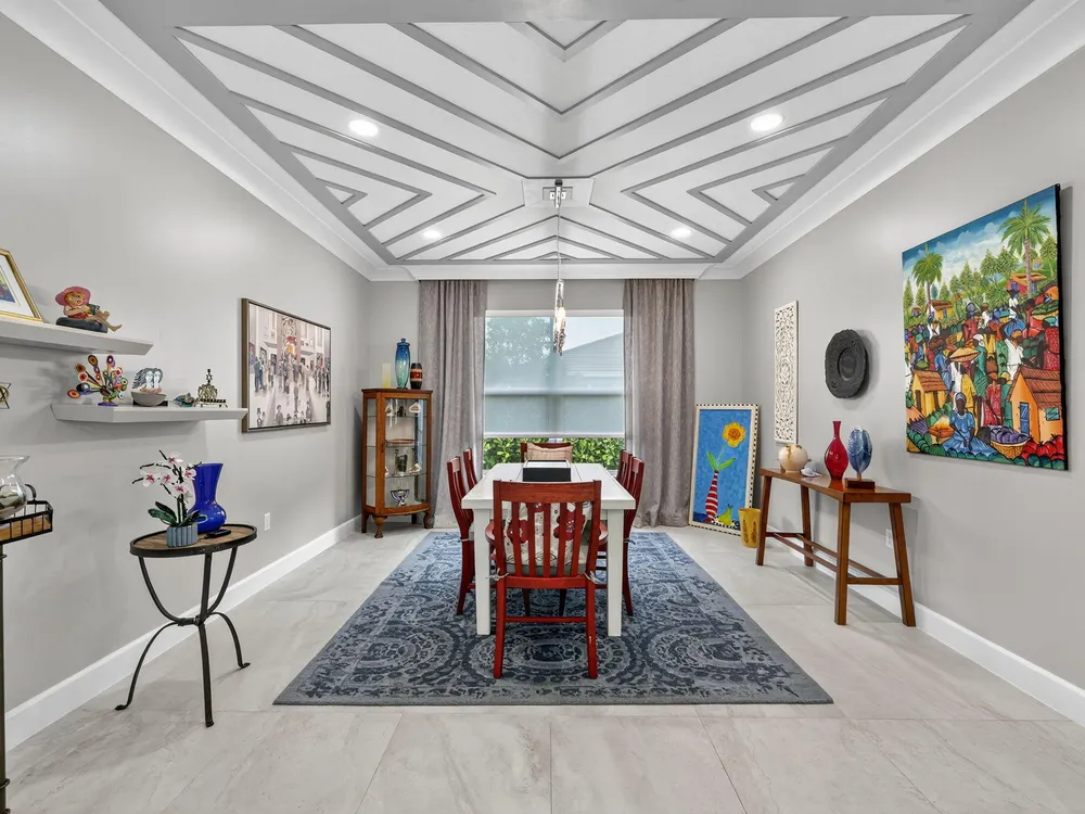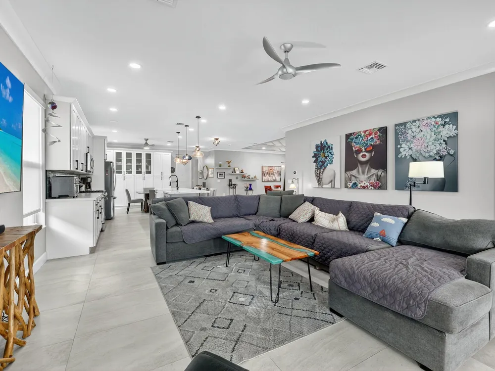 Welcome to GL's premier 55+ community of Valencia Grove at Riverland--where sophistication meets thoughtful design. Originally a Marsala model, this exceptional home has been custom reimagined and reconfigured by an architect to create a truly one-of-a-kind residence offering luxury, comfort, and functionality throughout its 2,127 square feet under air. From the moment you arrive, the widened driveway, sealed pavers, and refreshed landscaping make a striking first impression. Inside, every detail has been meticulously curated, featuring 24'' x 36'' porcelain tile flooring, crown molding, designer lighting, premium paint, and solar shades throughout. The chef's kitchen is a showpiece with custom cabinetry, a full pantry, pull-out shelving, a farmhouse-style island sink, high-end backsplash,