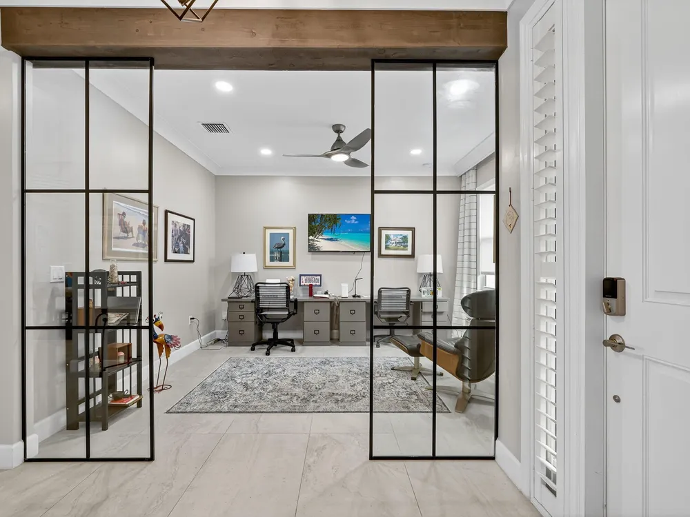 - Closet Cabinetry, Entrance Foyer, French Door(s)/Atrium Door(s), Kitchen Island, Pantry, Walk-In Closet(s), Home Office, Family Room, Kitchen/Dining Combo, Separate/Formal Dining Room, Blinds, Window Vertical(s), Dual Sinks, Separate Shower