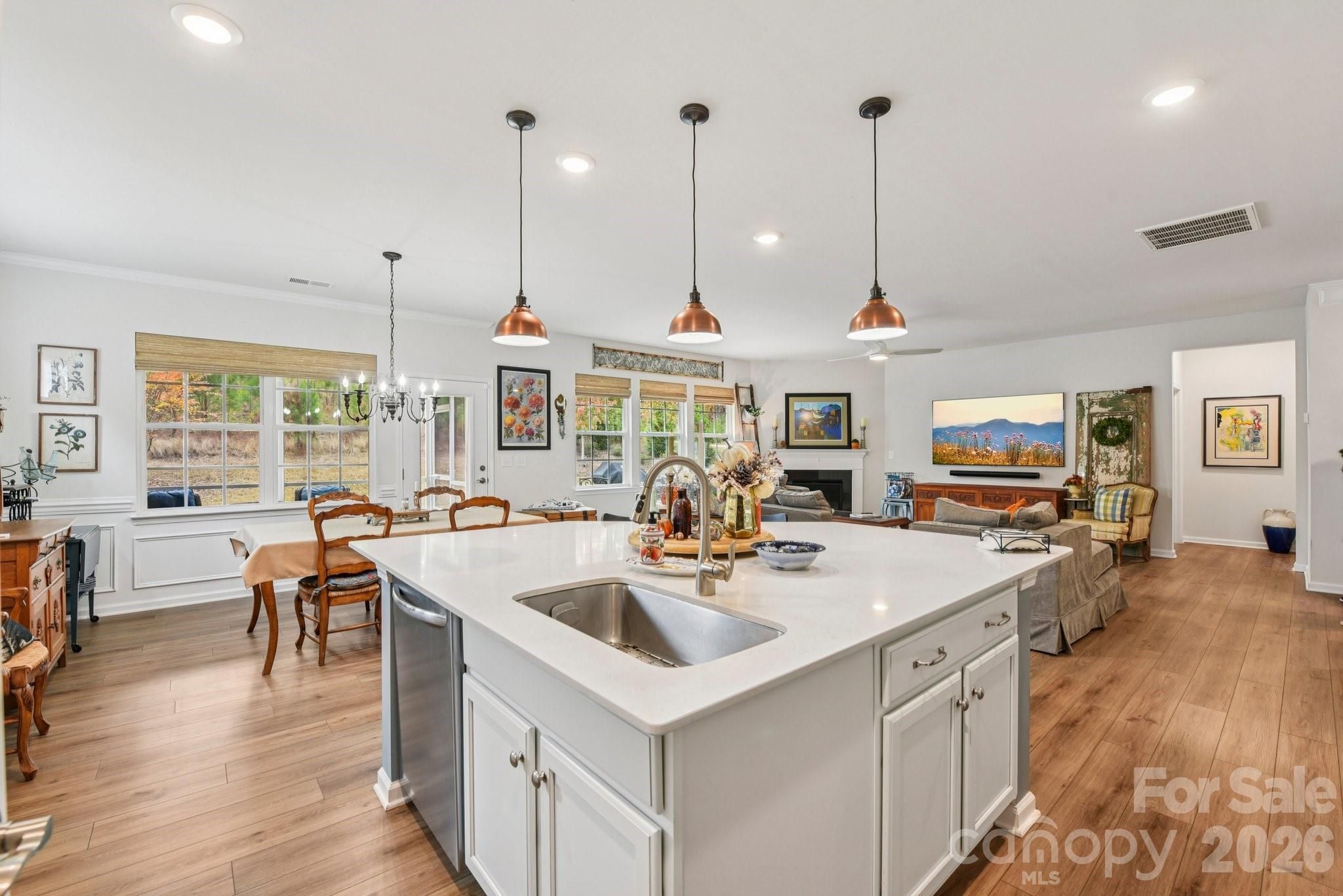 Welcome to this beautifully updated 3BR, 2.5-bath home in vibrant “Imagery on Mt Island Lake” – an active adult community! With seasonal water views from the rocking chair front porch and just steps away from the future marina, this one level Elmont model will truly become your forever home. Thoughtful upgrades create a turnkey living experience. The entire house features upgraded luxury vinyl plank flooring providing a cohesive, low-maintenance foundation throughout. Designer window treatments adorn every room, and remote shades add convenience and privacy in the guest room and dining area. The heart of the home shows exceptional attention to storage and style: a custom kitchen storage system and designer lighting in both the kitchen and dining area make daily living and entertaining effortless. Features include upgraded double wall ovens and a sizeable, pristine quartz countertop. The primary ensuite includes a custom closet organizer with built-in drawers to keep belongings neat and accessible. Two additional spaces can flex as guest rooms or serve as an office. The spacious laundry room features a utility sink. Instant hot water at every sink! The screened-in porch includes a ceiling fan plus privacy sunshades for relaxing outdoors while taking in the beautifully landscaped yard - an entertainer’s dream with a large paver patio, built-in planters, and a sitting wall surrounded by thoughtful landscaping that enhances privacy. The remote-controlled awning stretches out over the patio for ease and comfort. Imagery residents enjoy front and back lawn maintenance and the use of outstanding amenities cabins featuring a well-appointed library, textile/art studio, pottery studio and dog park. Care to be a little more active? Take a dip in the heated resort style pool open from May through October! Try your hand at pickle-ball/tennis on lighted courts! The fitness center offers free weights, exercise equipment and a separate studio for yoga, Pilates and even Zumba! Walk the wooded trails to enjoy nature lake-side! There are also DOZENS of interest clubs in this vibrant community! Please take a brochure to learn more! Are you an active adult under age 55? That’s cool, too!