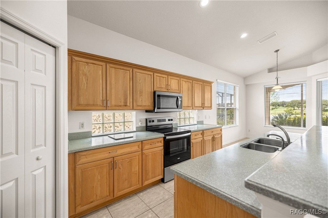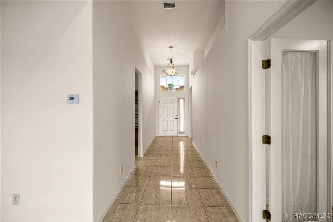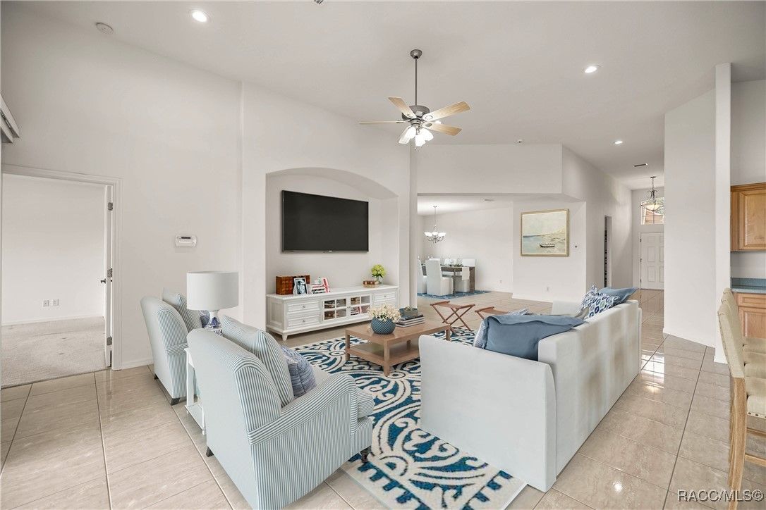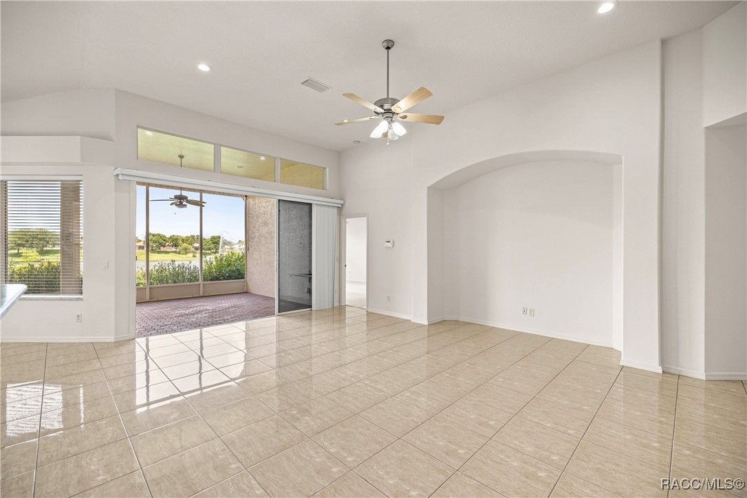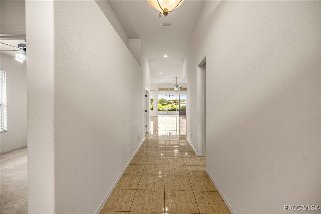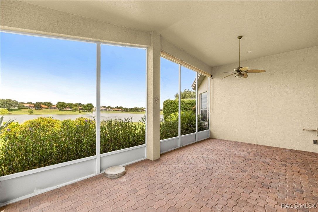 Imagine Waking up every day to the serene sound of a fountain on Sam Tamposi’s Lake, with panoramic views of the #2 Hole at the prestigious Skyview Golf Course, YOU CAN. THIS HOME IS PRICED TO SELL! This home is one of fewer than 38 homes that enjoy this exceptional waterfront setting—making it truly rare and highly desirable. Step inside this bright and beautifully maintained Windward-style home, ideally positioned with SOUTHERN EXPOSURE to maximize natural light and highlight the stunning water views framed by seasonal wildflowers. All located in the amenity rich Resort Style Gated Community of Terra Vista in Citrus Hills. Boasting 3 spacious Bedrooms, One additional Bedroom/Office with French Doors, 2.5 bathrooms, and a rare, oversized pantry/utility room, this home delivers both comfort and convenience. The tile flooring glistens under the sun, while the fresh paint, 2022 HVAC system, and a recently inspected/repaired roof ensure peace of mind from the moment you move in. A private glass-paneled Office/Bedroom with French doors provides the perfect space to work or unwind, just across from a versatile formal dining area—also ideal as a game room or second lounge. The 23' master retreat is a true haven with room to spare, offering privacy and tranquility thanks to the well-designed split floor plan. The heart of the home—a chef-inspired kitchen with solid surface countertops and stainless-steel appliances—flows effortlessly into the open living area, featuring an alcove perfect for your entertainment setup. Everywhere you turn, you're drawn to the incredible water and golf course views. Step outside to the expansive 24' x 14'9" screened lanai, ideal for morning coffee, evening cocktails, or future plans for a custom pool. There's even plenty of room in the oversized garage (22’11” x 19’8”) for both your vehicles and a golf cart! Some photos are virtually staged. Life in Citrus Hills is wonderful making friends and dancing at the Tiki Bar, enjoying the three restaurants, playing pickleball, golf and tennis. Need a workout, the Fitness Center and Spa is truly a delight. Or maybe a lounging at the pool, or cycling in the community, walking your dog at the dog park. It here! Want to join clubs, there are many - What a wonderful way to make new friends and enjoy life with your Citrus Hills Social Membership!