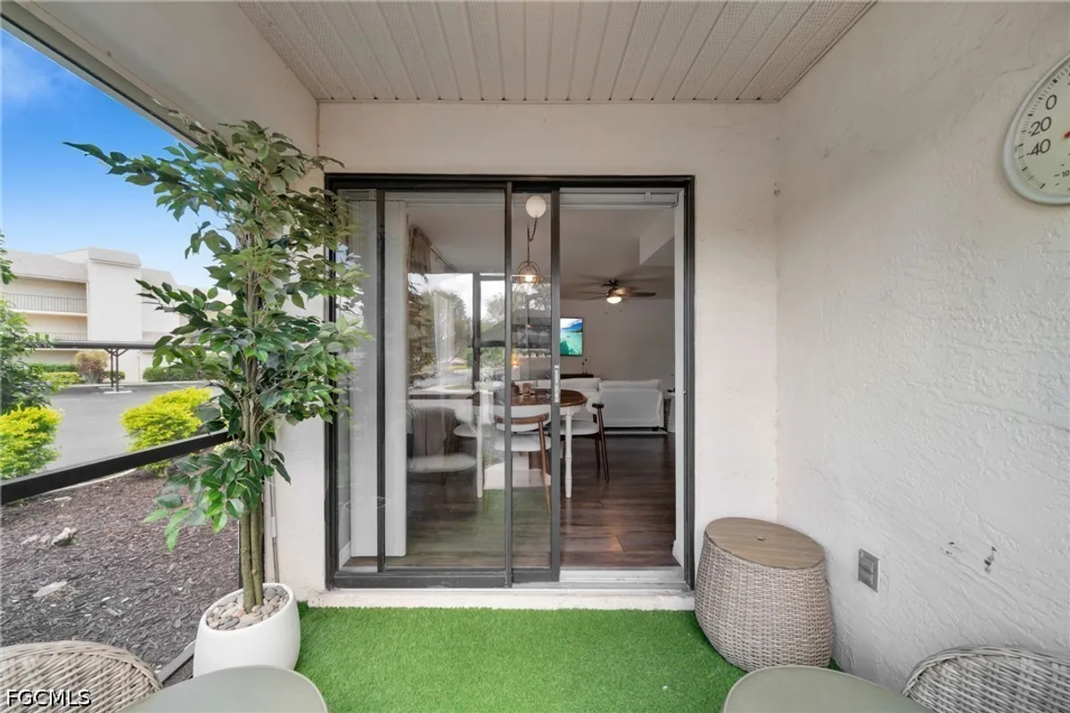 RARE FIRST-FLOOR CORNER OPPORTUNITY in Cross Creek Country Club — BUNDLED GOLF, GOLF COURSE VIEWS, and MAJOR UPDATES already done! SPECIAL ASSESSMENT PAID! 2BR / 2 bath condo offers 960 sq ft of easy, single-level living just steps from the building entrance. Carports right in front of the Unit to protect your car from the Sun. Dual ensuite bedrooms, a flexible den, NEW FLOORING throughout, NEW 2024 A/C, CUSTOM WALK-IN CLOSET in the primary, and a FRESHLY RE-SCREENED LANAI overlooking the course. Furniture negotiable - move in and start living. Enjoy reduced-fee bundled golf with reciprocity at 40+ courses, plus resort amenities: clubhouse restaurant & bar (no minimums), pools, hot tub, tennis, pickleball, bocce, and exclusive Terrace Village amenities. HOA covers water, sewer, trash, cable, internet, exterior insurance, and pest control. NOT in a flood zone, NO CDD, pet friendly, LOW HOA for what you get. Minutes to I-75, RSW, Spring Training parks, beaches, dining, and shopping. A true best-value buy in SWFL. Schedule your showing today!