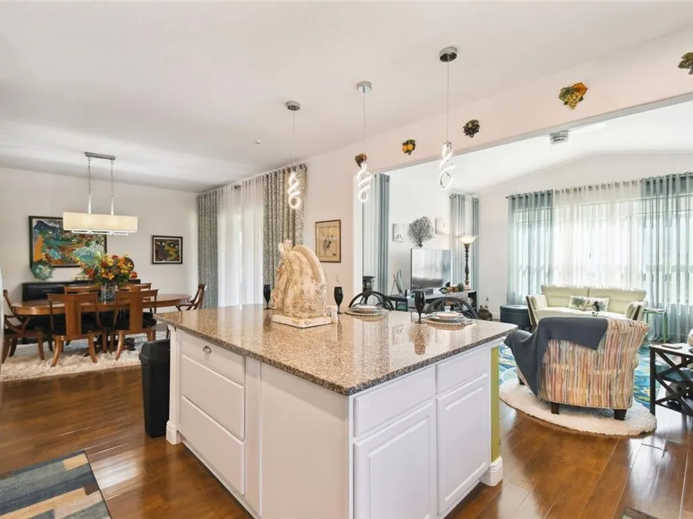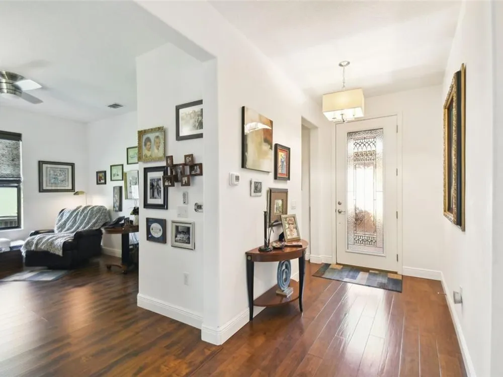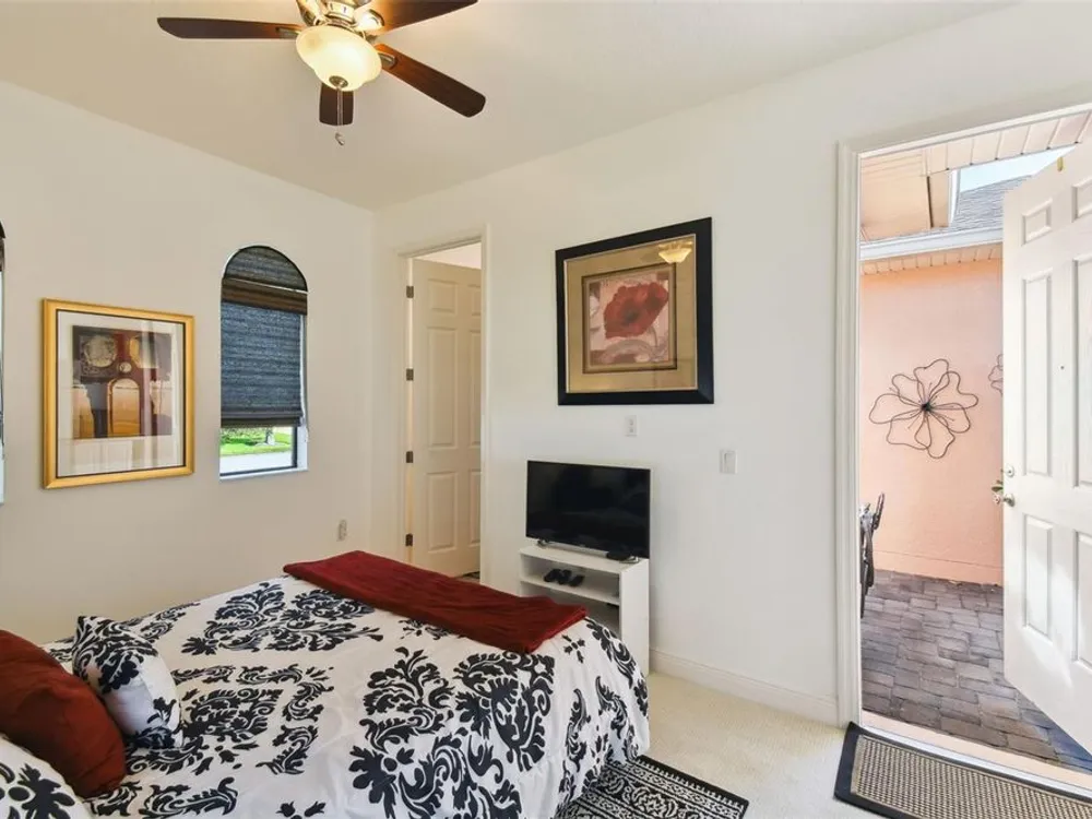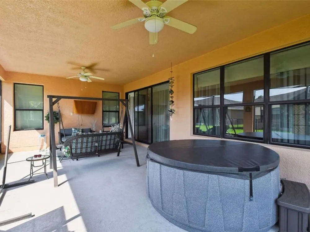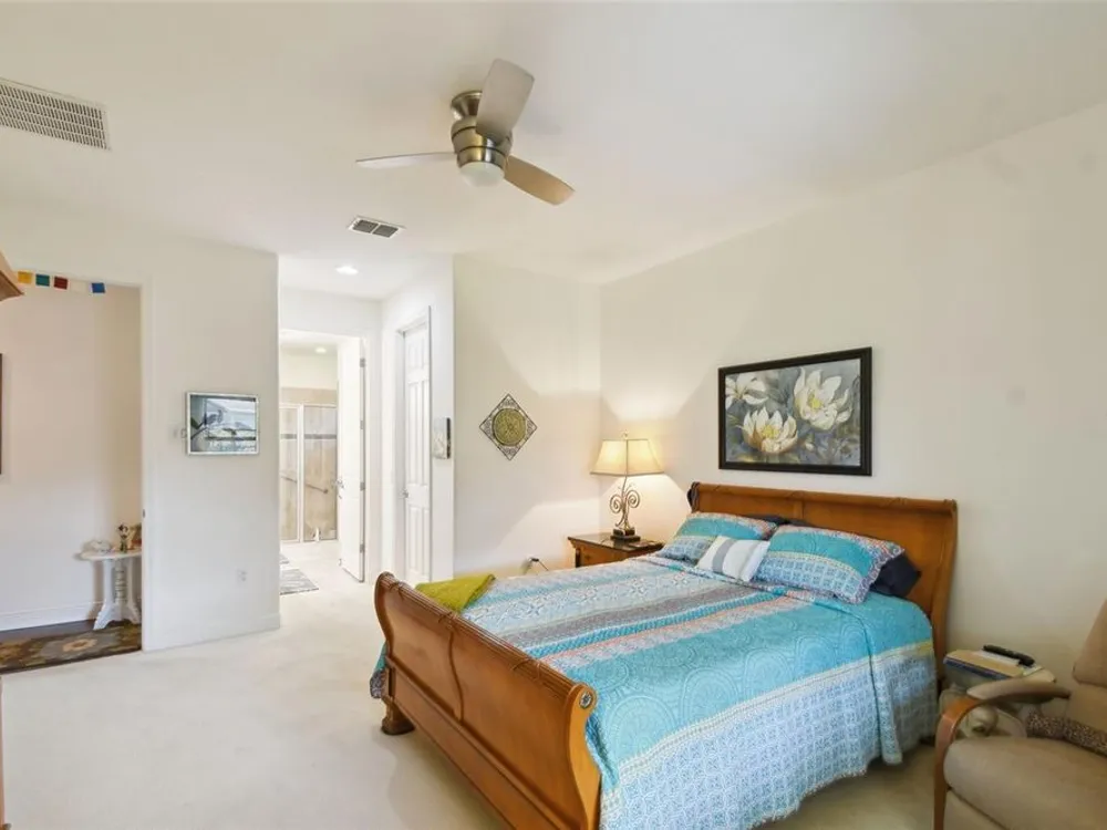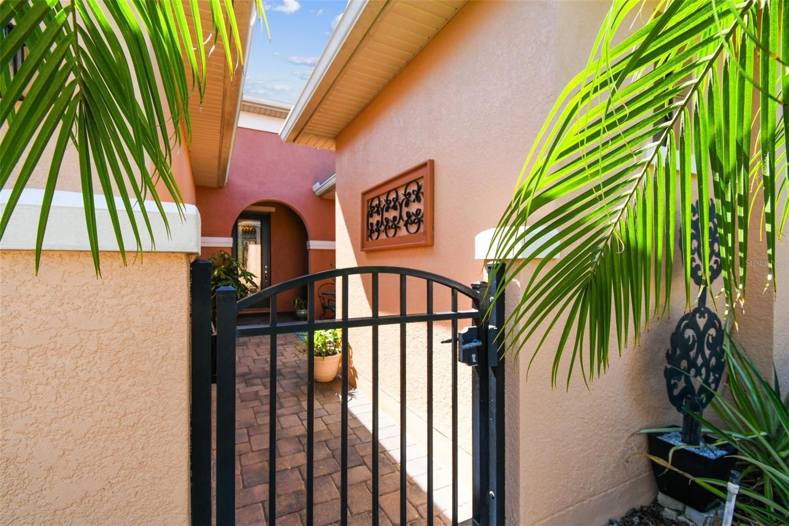 Welcome to this sought-after 2013 St. Augustine model, featuring 3 bedrooms, 3 bathrooms, a den/study, and a private casita/in-law suite—perfect for multi-generational living or hosting guests in style. Nestled on an extra-wide, custom-landscaped lot close to the Palms Resort Amenities Center, this home offers the perfect blend of privacy, comfort, and resort-style living. Enter through a charming gated courtyard and step inside through a leaded glass front door into spacious open-concept living areas. The chef’s kitchen features granite countertops, an eat-at bar, and abundant cabinet and counter space—ideal for cooking and entertaining. The large primary suite boasts a generous walk-in closet and a luxurious en-suite bath with granite counters and a walk-in shower with built-in seat. A second bedroom is tucked away on the opposite side of the home for privacy, adjacent to a full guest bathroom. The separate casita offers its own private entrance from the courtyard and includes a kitchenette, full bathroom with walk-in shower, and plenty of space—making it an ideal guest suite or private home office. Enjoy the flexibility of a dedicated den/study, and unwind in the screened, covered lanai complete with an included hot tub—the perfect spot to relax after a long day. Additional features include: 2-car garage with dedicated golf cart charging. Whole-house water filtration system and New HVAC system (2019). This thoughtfully designed home offers both luxury and practicality in one of the area's most desirable quiet neighborhoods. This beautiful home combines comfort, functionality, and a premier location. Solivita is renowned for its vibrant 55+ community, offering an array of activities and amenities tailored to active adults. Whether you’re enjoying a round of golf, engaging in fitness classes, or simply strolling along scenic walking paths, this neighborhood promotes an active and fulfilling lifestyle with over 230 clubs, sports, and activities to choose from. Enjoy the community’s clubhouse, softball field, 14 swimming pools, an indoor walking track and indoor pool, and much more. Every day offers something new to explore and enjoy! This home also features easy access to nearby shops, dining, and health care, offering the perfect balance of privacy and lifestyle.Don't miss out! Schedule your private showing today!