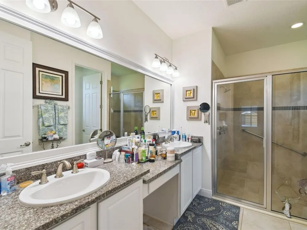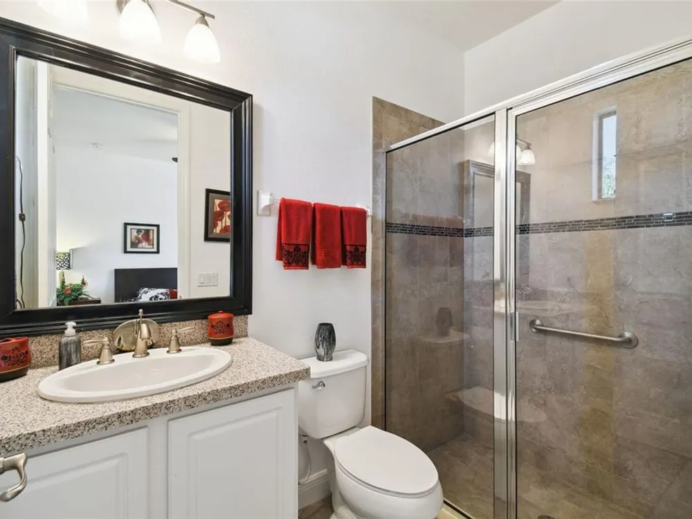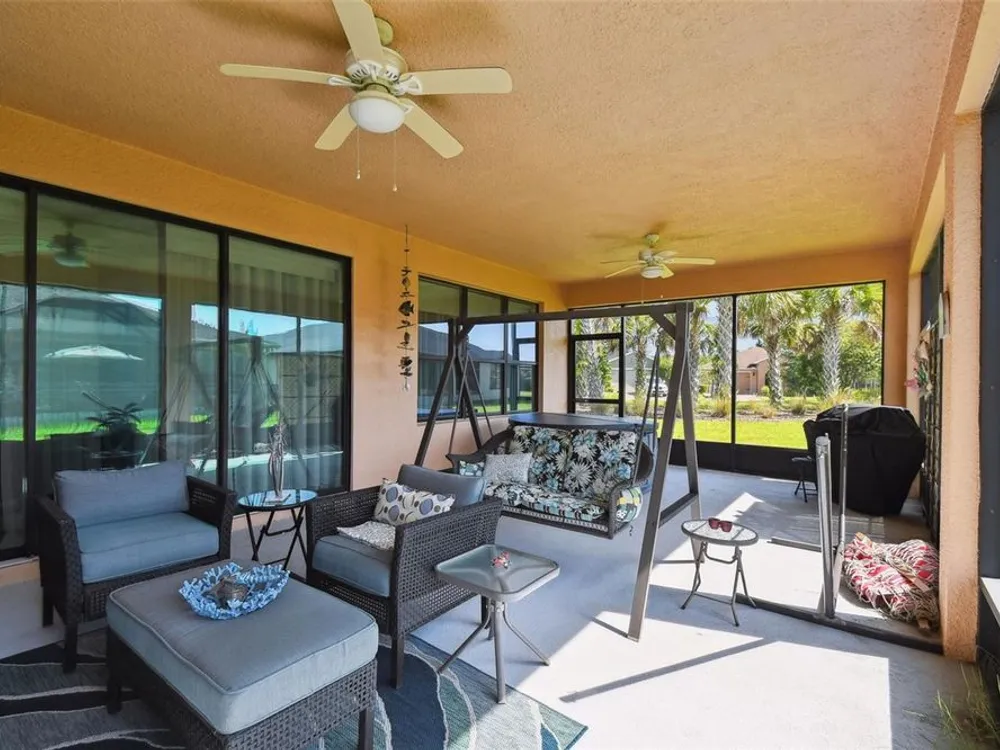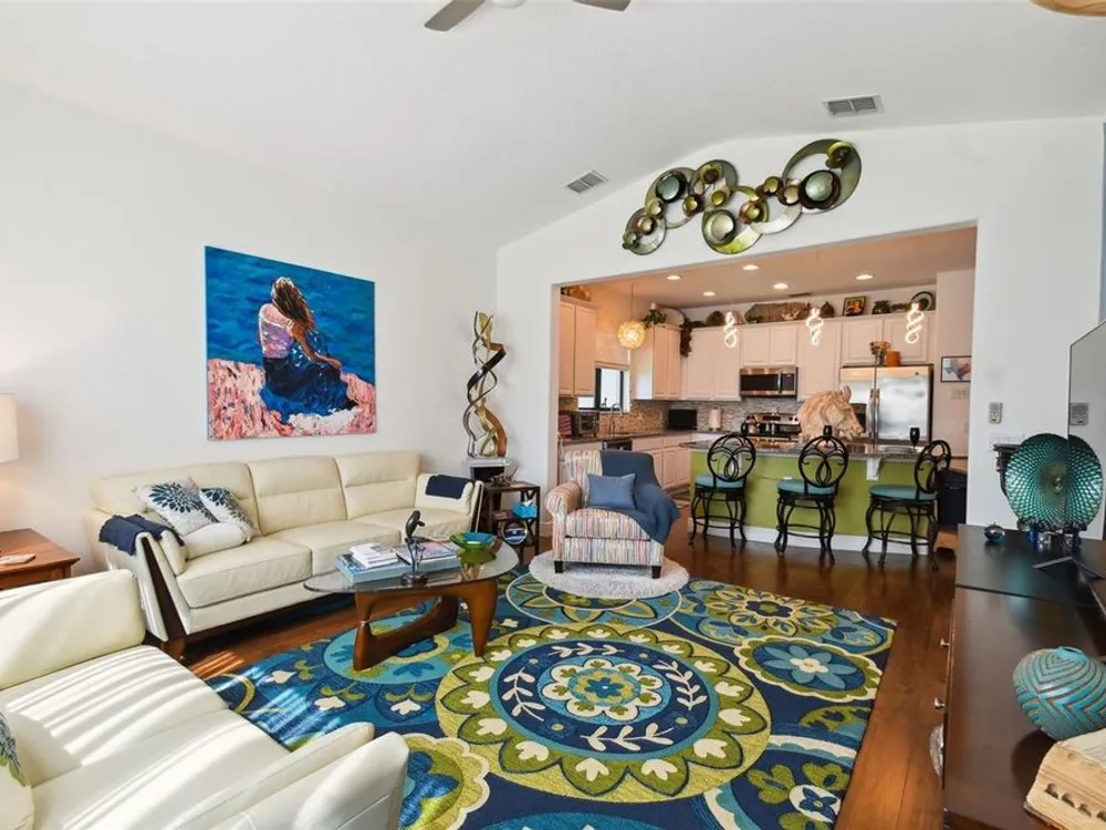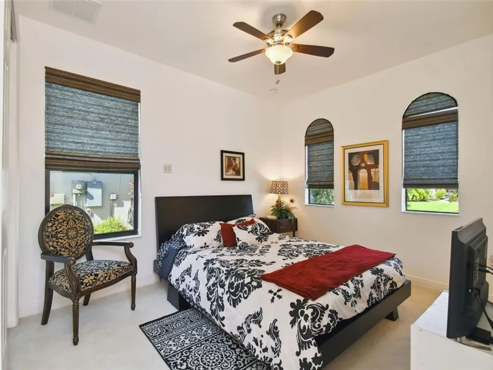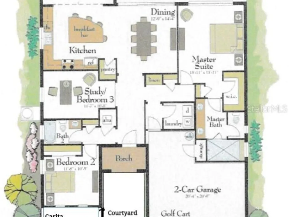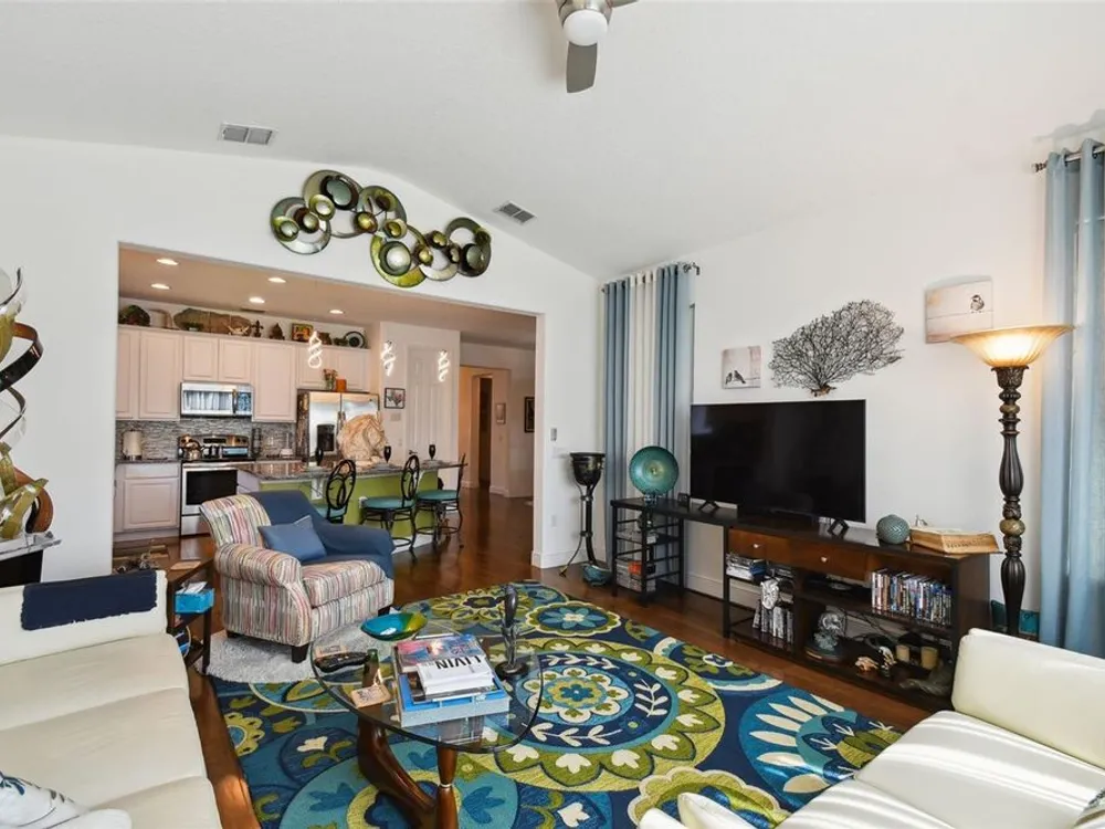 Welcome to this sought-after 2013 St. Augustine model, featuring 3 bedrooms, 3 bathrooms, a den/study, and a private casita/in-law suite—perfect for multi-generational living or hosting guests in style. Nestled on an extra-wide, custom-landscaped lot close to the Palms Resort Amenities Center, this home offers the perfect blend of privacy, comfort, and resort-style living. Enter through a charming gated courtyard and step inside through a leaded glass front door into spacious open-concept living areas. The chef’s kitchen features granite countertops, an eat-at bar, and abundant cabinet and counter space—ideal for cooking and entertaining. The large primary suite boasts a generous walk-in closet and a luxurious en-suite bath with granite counters and a walk-in shower with built-in seat. A second bedroom is tucked away on the opposite side of the home for privacy, adjacent to a full guest bathroom. The separate casita offers its own private entrance from the courtyard and includes a kitchenette, full bathroom with walk-in shower, and plenty of space—making it an ideal guest suite or private home office. Enjoy the flexibility of a dedicated den/study, and unwind in the screened, covered lanai complete with an included hot tub—the perfect spot to relax after a long day. Additional features include: 2-car garage with dedicated golf cart charging. Whole-house water filtration system and New HVAC system (2019). This thoughtfully designed home offers both luxury and practicality in one of the area's most desirable quiet neighborhoods. This beautiful home combines comfort, functionality, and a premier location. Solivita is renowned for its vibrant 55+ community, offering an array of activities and amenities tailored to active adults. Whether you’re enjoying a round of golf, engaging in fitness classes, or simply strolling along scenic walking paths, this neighborhood promotes an active and fulfilling lifestyle with over 230 clubs, sports, and activities to choose from. Enjoy the community’s clubhouse, softball field, 14 swimming pools, an indoor walking track and indoor pool, and much more. Every day offers something new to explore and enjoy! This home also features easy access to nearby shops, dining, and health care, offering the perfect balance of privacy and lifestyle.Don't miss out! Schedule your private showing today!