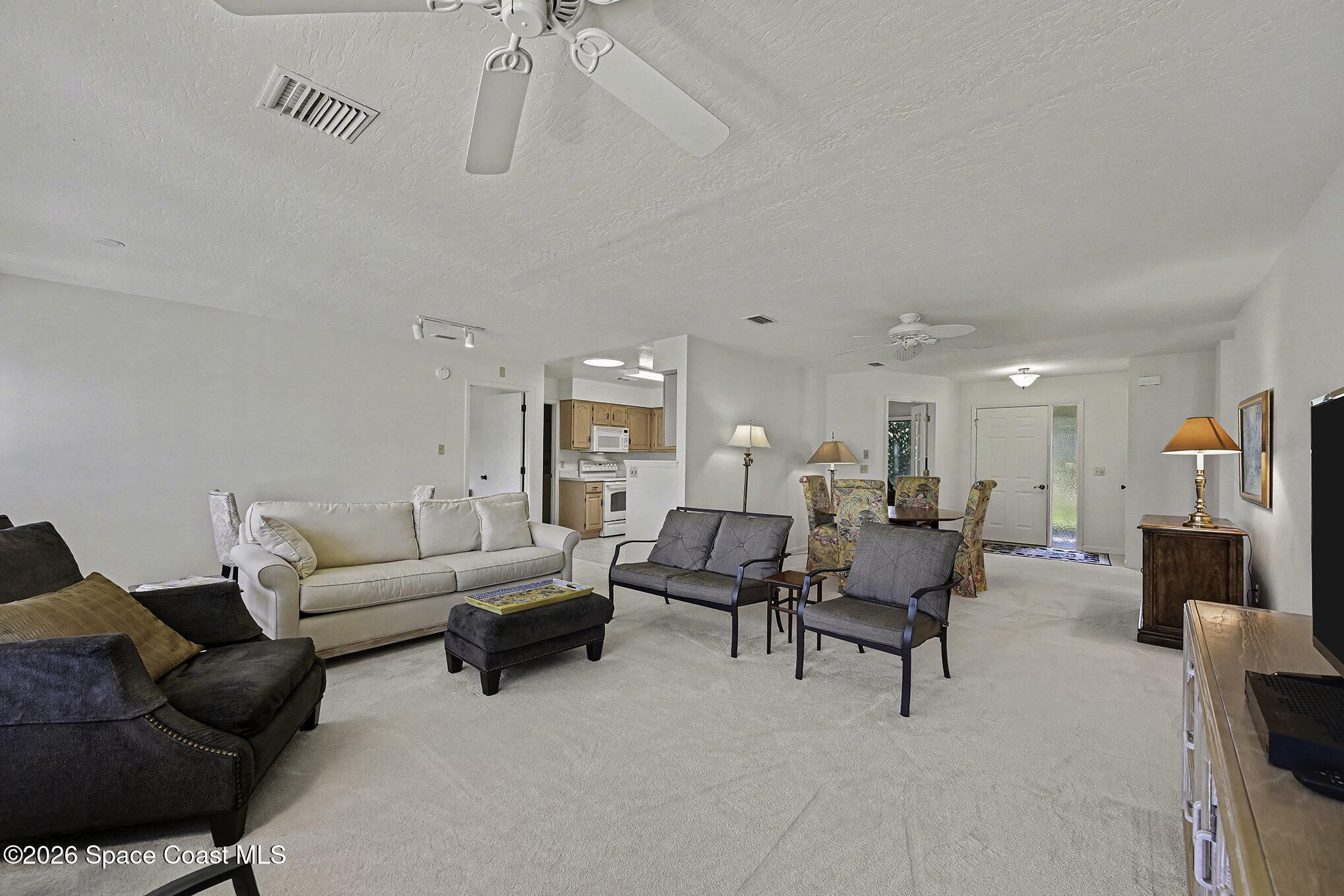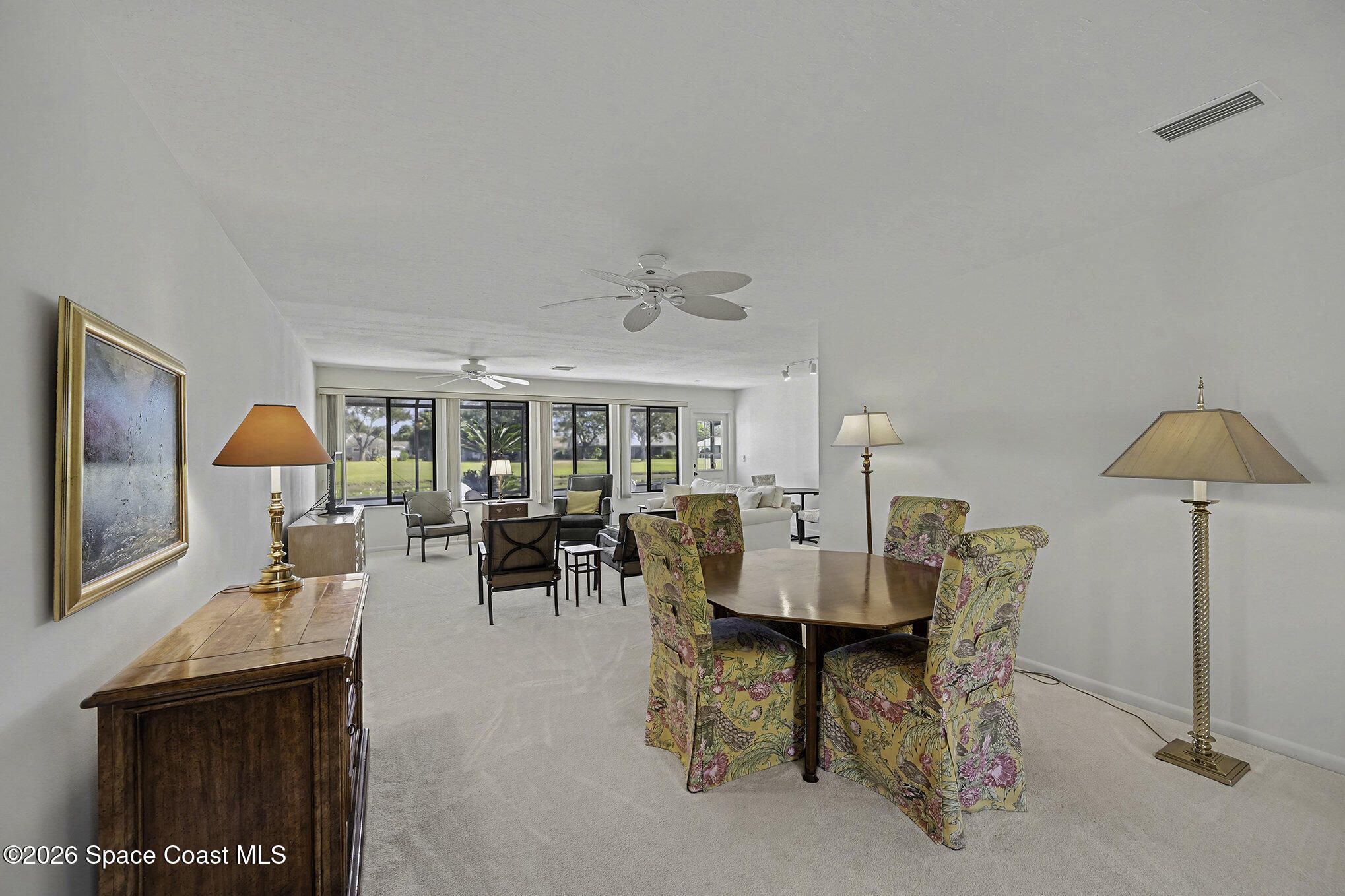 Located in a resort-style country club community, offering top-notch amenities for an exceptional Florida lifestyle. Popular Bangor model featuring 2 bedrooms and 2 bathrooms, plus a third space for an office or flex space—perfect for extra room to fit your lifestyle. This well-maintained home is neat, clean, and you could just move in. Enjoy a bright, open floor plan with a beautiful view, nicely sized bedrooms, indoor laundry, and bonus garage space for a golf cart with finished flooring. Located conveniently close to the club for easy access. The home may be sold furnished for a simple move-in, or it's priced well for you to make it your own. This one won't last long. Home to over 600 military veterans, Indian River Colony Club is a private 55+ country club community offering a unique blend of camaraderie, comfort, and care. Residents enjoy an extensive home maintenance program and access to exceptional amenities, including an 18-hole golf course, fine dining with an executive chef, the casual 19th Hole restaurant and bar, fitness center, heated pool, tennis, croquet, bocce ball, shuffleboard, and more. This pet-friendly, gated community boasts over 60 social and activity groupsmaking every day feel like a vacation.