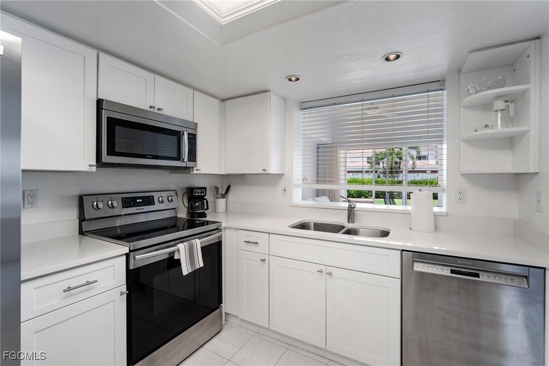 Desirable first floor Golf Villa with a garage!! This condo is very well maintained with a comfortable spacious-open living area with tons of natural light. Two Bedroom 2 Bathroom. Kitchen has been updated with Stainless Steel Appliances and shaker cabinets and new countertops. The large lanai that you can enter from the main living room and the master bedroom where you can relax and enjoy the evening breeze. Hot Water Heater is 2023. Seven Lakes is an active 55+ community with lots of amenities. 6 heated pools throughout the community, golf course with no trial fees or green fee, tons of clubs, auditorium which host dinners and dances. A bus to take residents to other activities outside the community. Hobby and craft rooms, billiards, shuffleboard, bocce ball, 6 tennis courts and pickle ball too. Exercise Room, Lapidary, Awesome Library! Full Time Recreation Department Puts Out Calendar of Events in our monthly Newsletter. Private Restaurant & Bar Has Weekly Events like Karaoke and Trivia, Theme Dinners & Happy Hours. Start Living the Seven Lakes Lifestyle