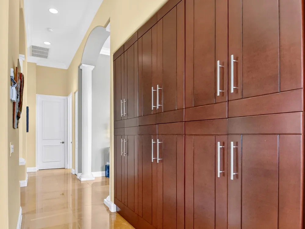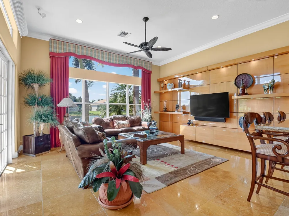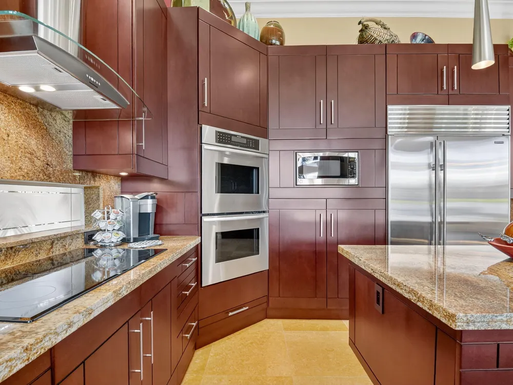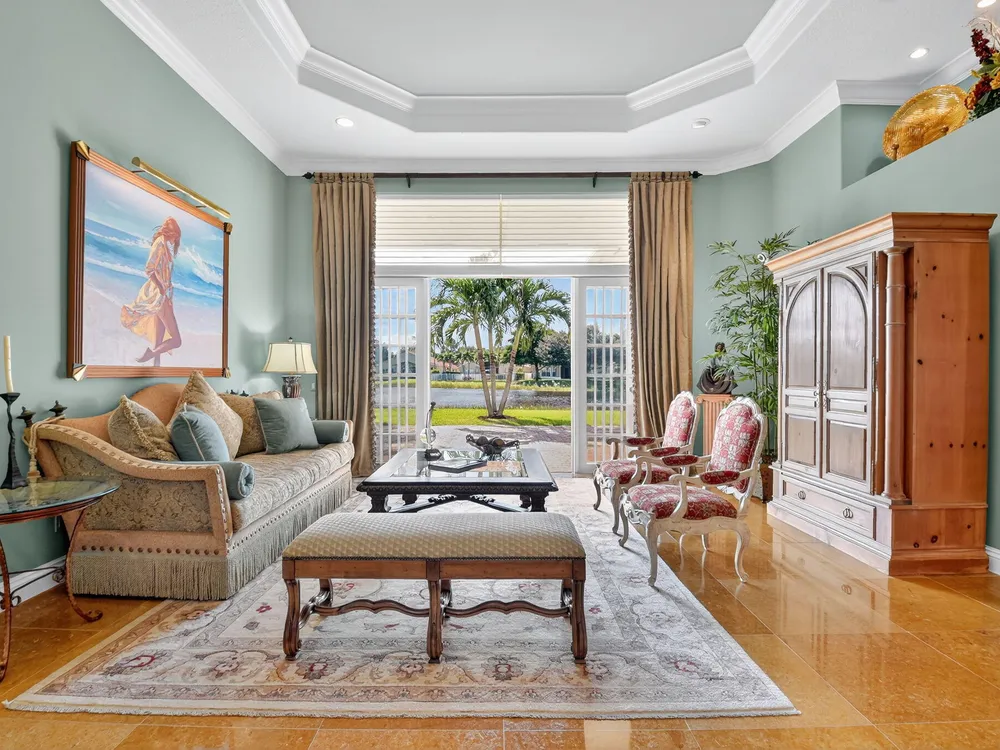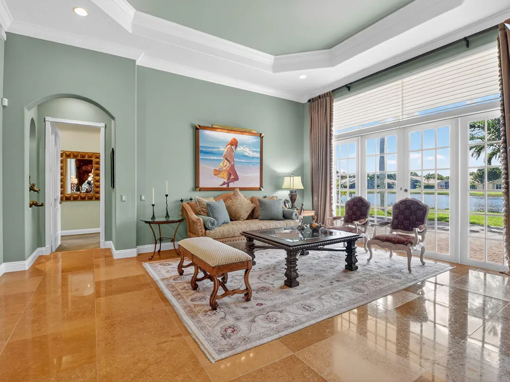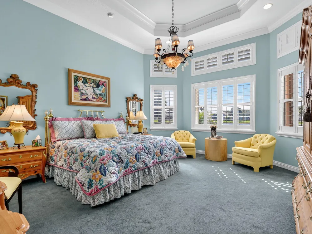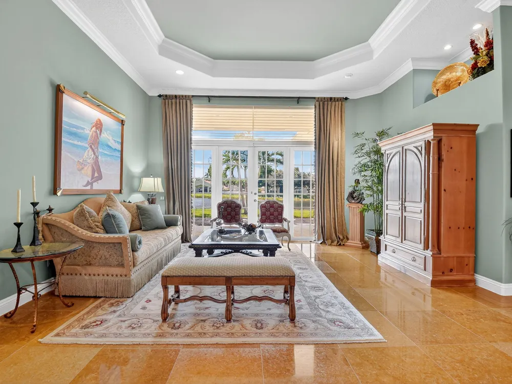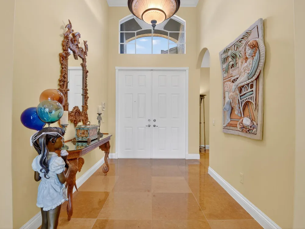 Stunning & Oversized Lakefront 4BR/4BA/3Garage home. This sprawling 3206 liv sqft ranch triple split home has impressive upgrades including rich 24'' marble floors in main living areas, wood cabinets & stone counters throughout & solid core doors. One-of-a-kind Columbian Mahogany Kitchen with 54'' cabinets, soft-close drawers, Thermador double oven, Sub Zero frig, Dacor Stove. Primary oversized bedroom has built-out walk-in closets, Elegant light fixtures throughout.-French doors lead to oversized patio on the lake. Excellent for Entertaining. Magnificent Wall Unit in Family Rm. Walk to Multi-Million Clubhouse. Maintenance includes: Internet, lawn, exterior paint, SHO, HBO & alarm. 1X cap fee $5,090.00. 4th bedrm used as den. Buyer/Buyers agent to verify all information.