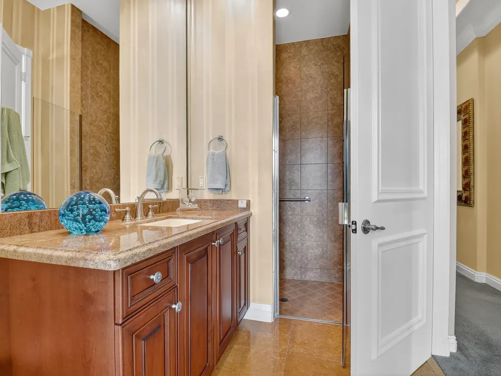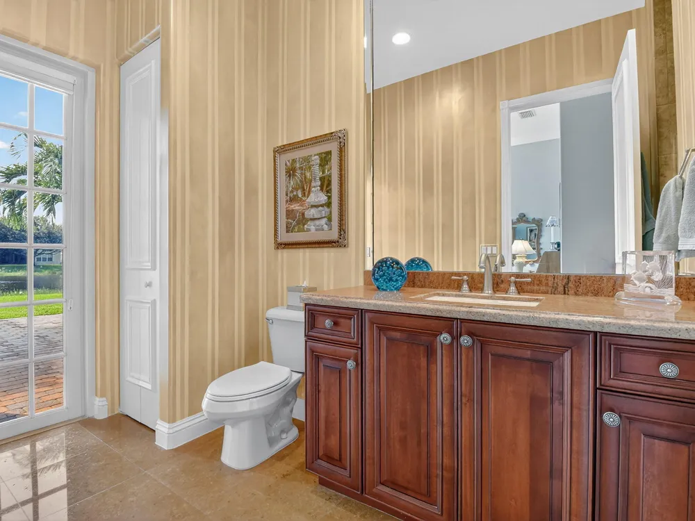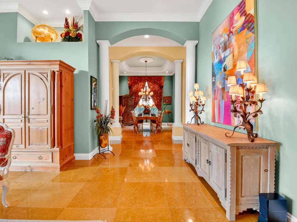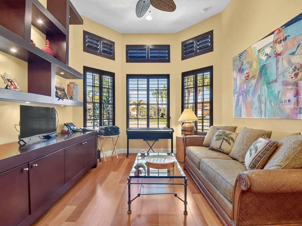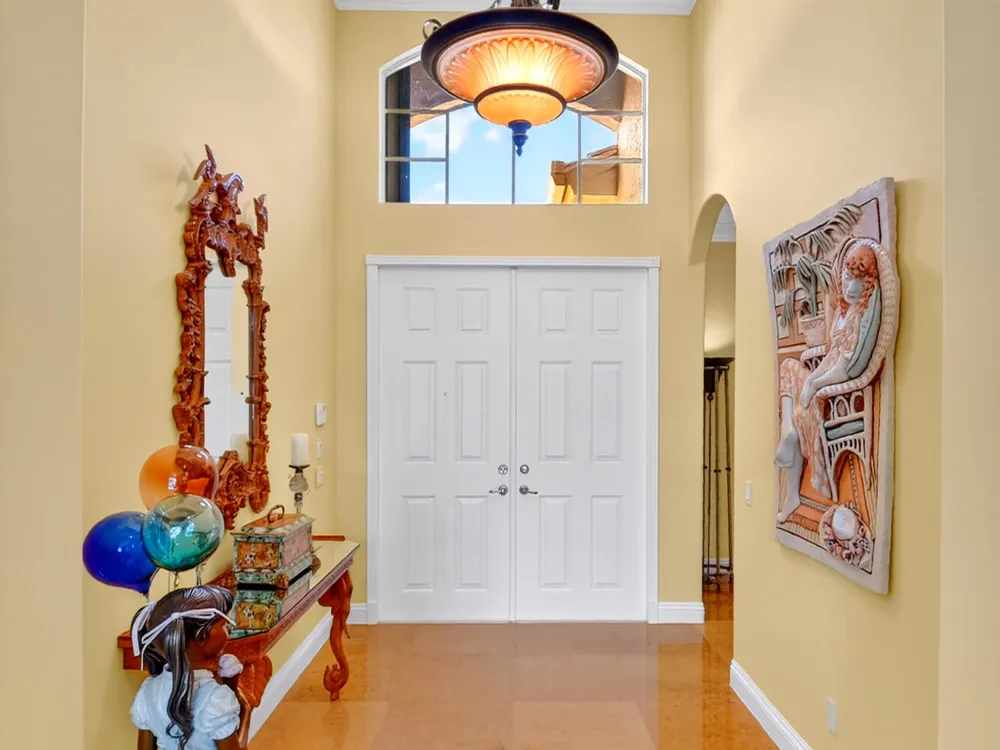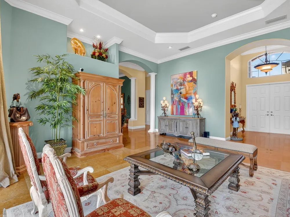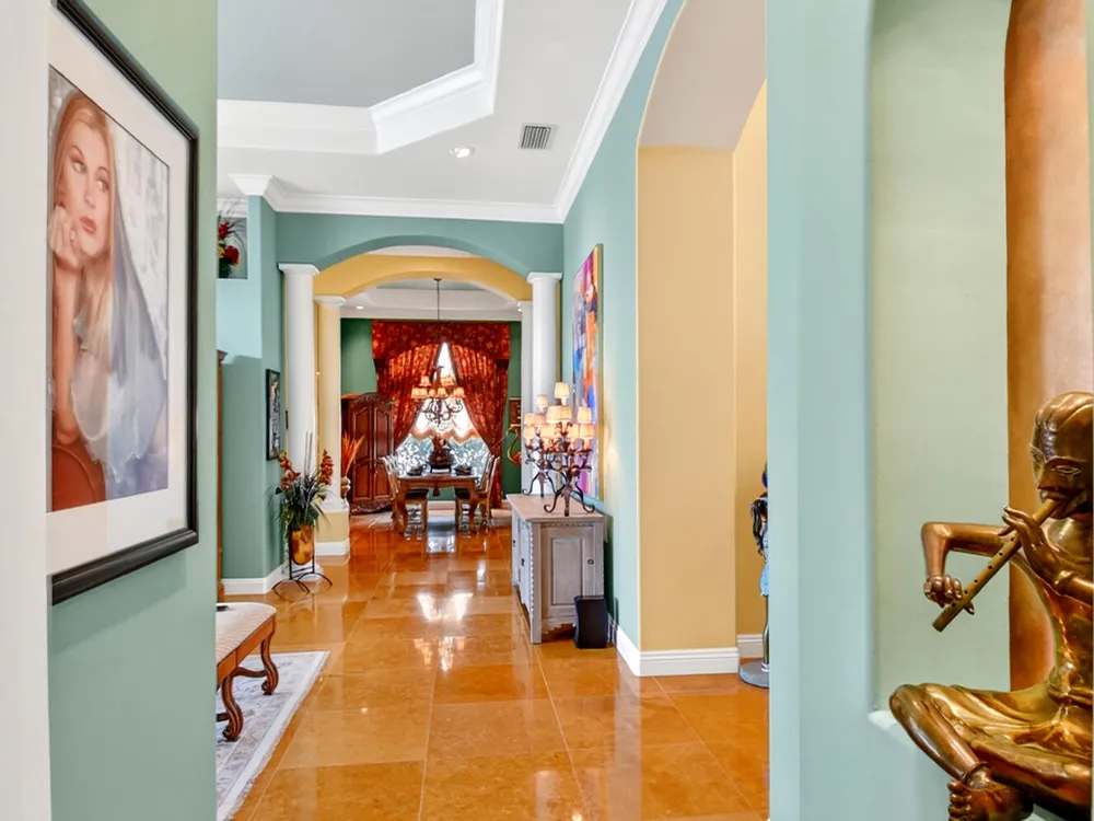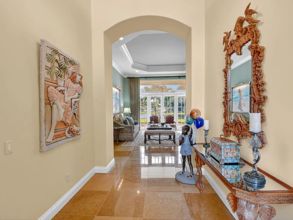 Stunning & Oversized Lakefront 4BR/4BA/3Garage home. This sprawling 3206 liv sqft ranch triple split home has impressive upgrades including rich 24'' marble floors in main living areas, wood cabinets & stone counters throughout & solid core doors. One-of-a-kind Columbian Mahogany Kitchen with 54'' cabinets, soft-close drawers, Thermador double oven, Sub Zero frig, Dacor Stove. Primary oversized bedroom has built-out walk-in closets, Elegant light fixtures throughout.-French doors lead to oversized patio on the lake. Excellent for Entertaining. Magnificent Wall Unit in Family Rm. Walk to Multi-Million Clubhouse. Maintenance includes: Internet, lawn, exterior paint, SHO, HBO & alarm. 1X cap fee $5,090.00. 4th bedrm used as den. Buyer/Buyers agent to verify all information.