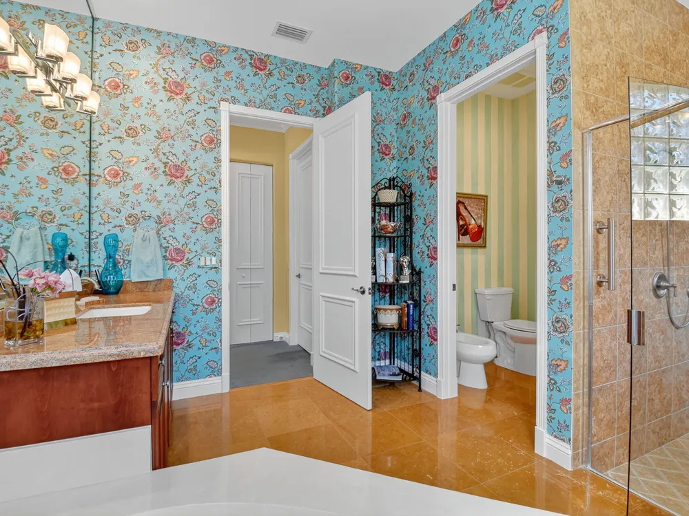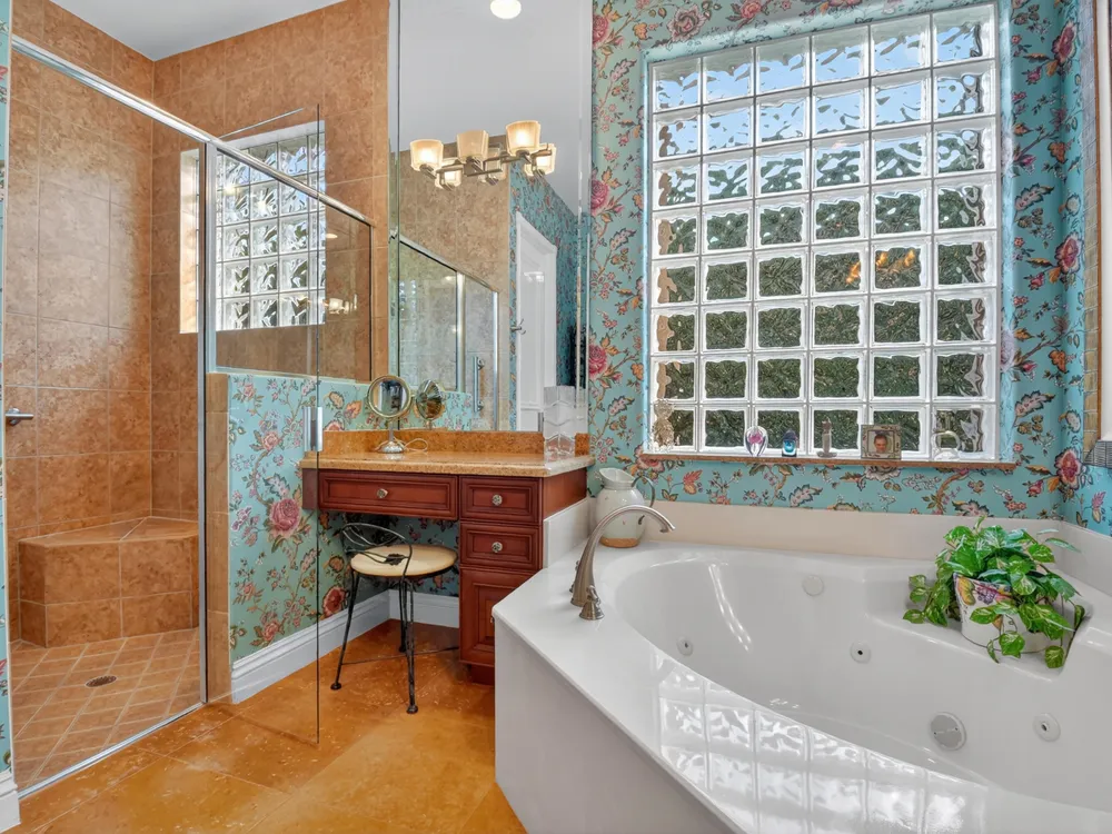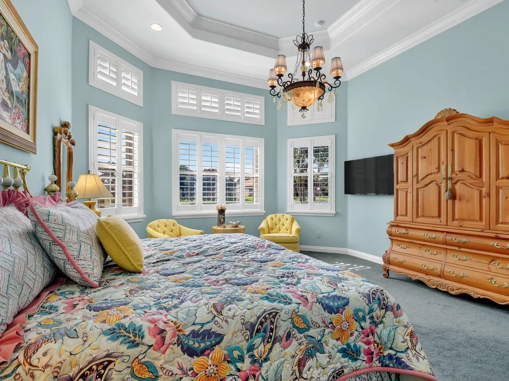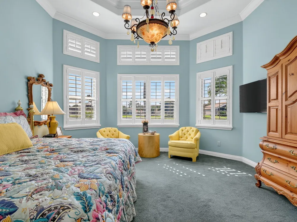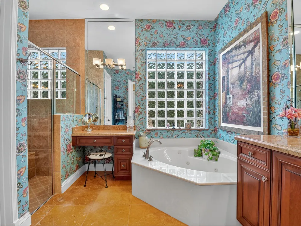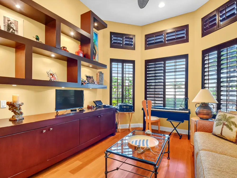 - Bar, Built-in Shelving, Cathedral Ceiling(s), Entry Level Living Area, Entrance Foyer, French Door(s)/Atrium Door(s), Kitchen Island, Pantry, Split Bedrooms, High Ceilings, Walk-In Closet(s), Attic, Converted Bedroom, Home Office, Family Room, Great Room, Breakfast Area, Eat-in Kitchen, Separate/Formal Dining Room, Snack Bar, Bay Window, Plantation Shutters, Single Hung Metal Window(s), Sliding Window(s), Bidet, Dual Sinks, Primary Downstairs, Sitting Area In Primary Bedroom, Separate Shower, Bathtub, Storm Shutters