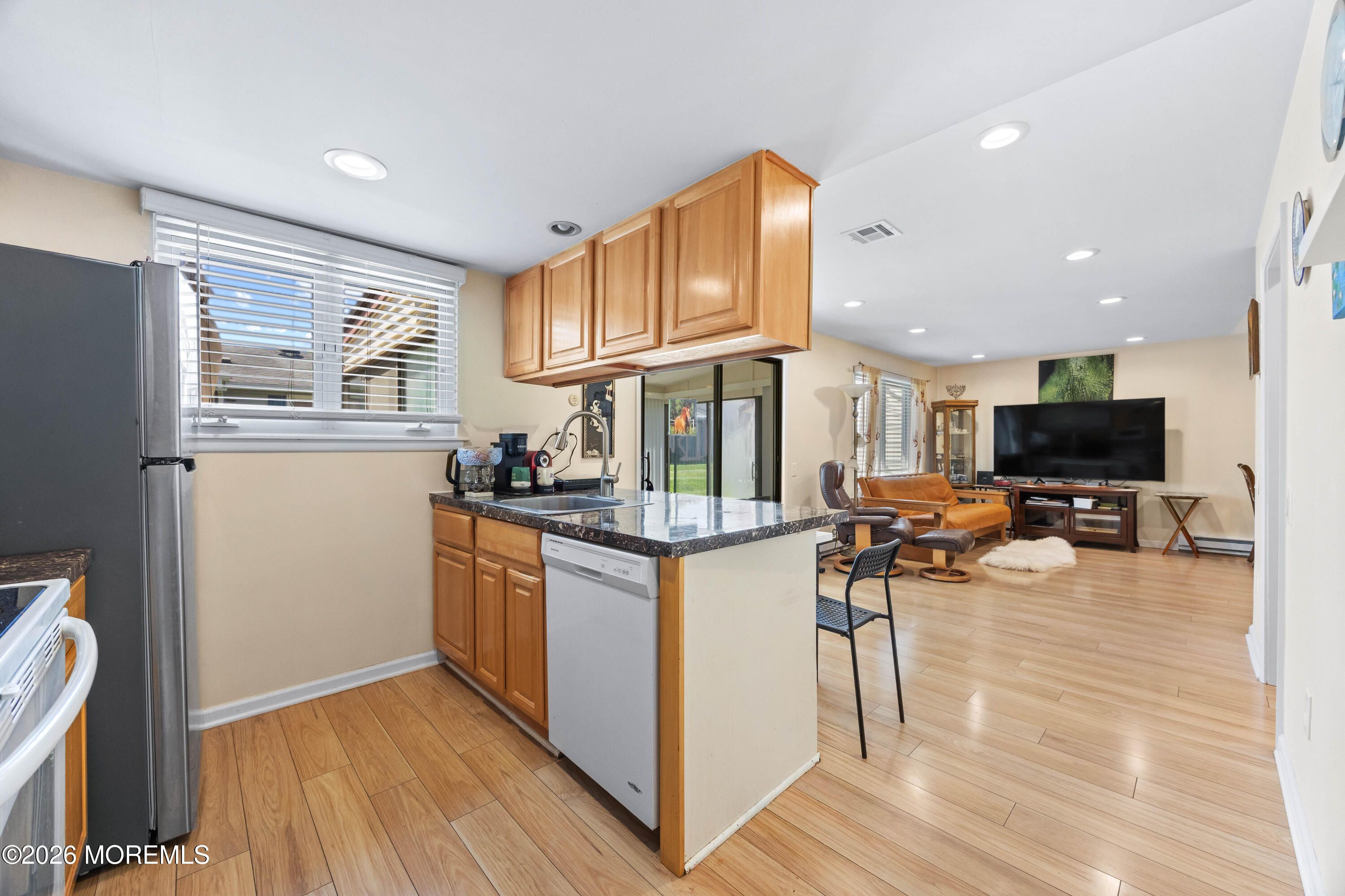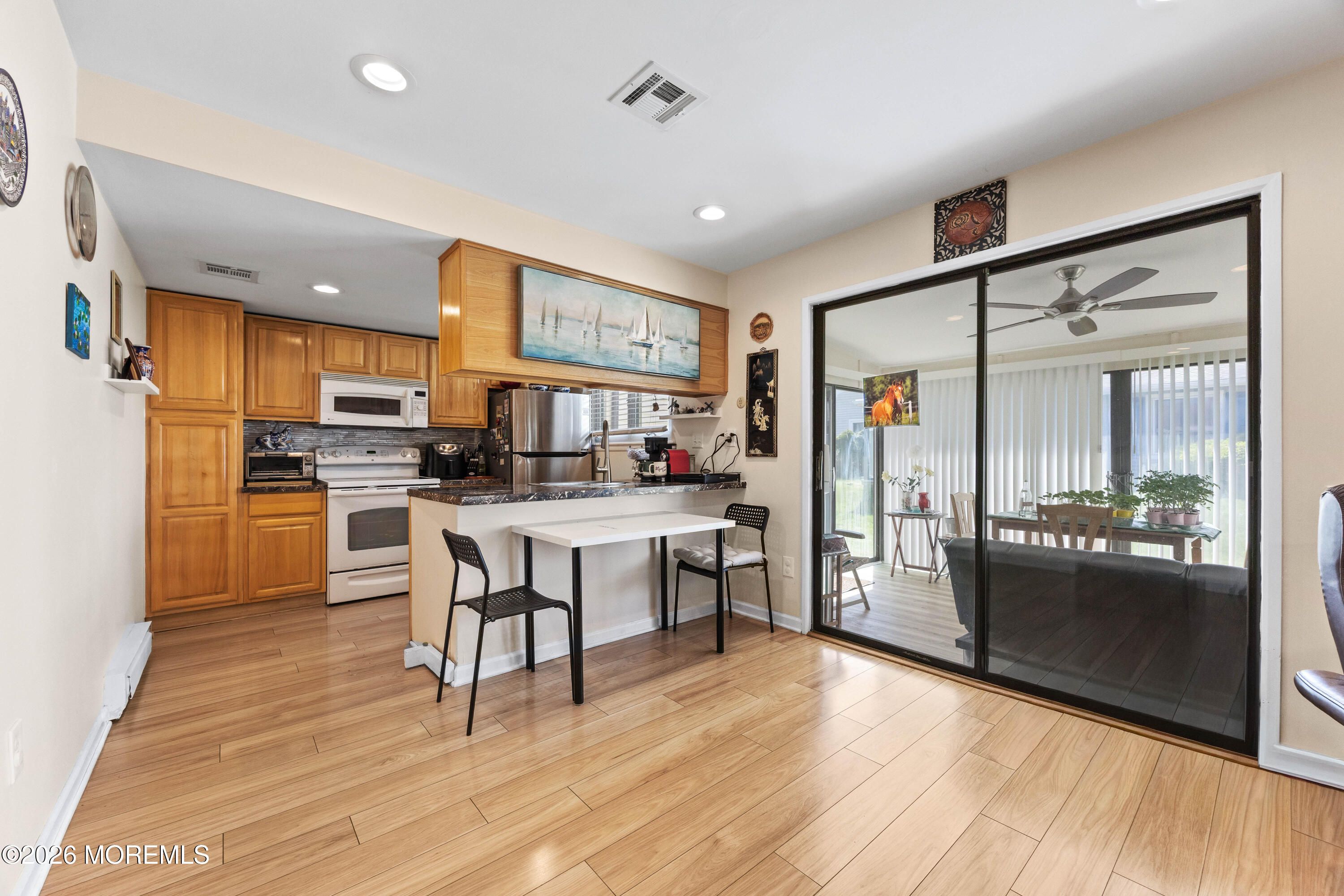 Welcome to Clearbrook, a premier 55+ community in Monroe Township. This well-maintained 2-bedroom, 2 full bath ranch offers approximately 1,078 sq ft of comfortable, one floor living. A bright, open layout features spacious living and dining areas, enhanced by updated flooring and modern lighting throughout. The primary suite includes a private bath, while a second full bath adds convenience. A Florida room provides additional space for relaxing or entertaining year-round. Additional highlights include an attached one-car garage and low-maintenance living. Enjoy resort-style amenities including clubhouse, pool, fitness center, golf, and more, all within a gated, professionally managed community. Conveniently located near shopping, dining, and major roadways.