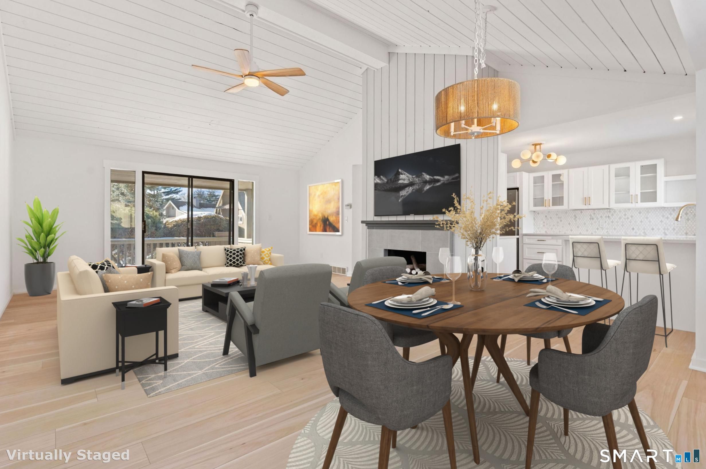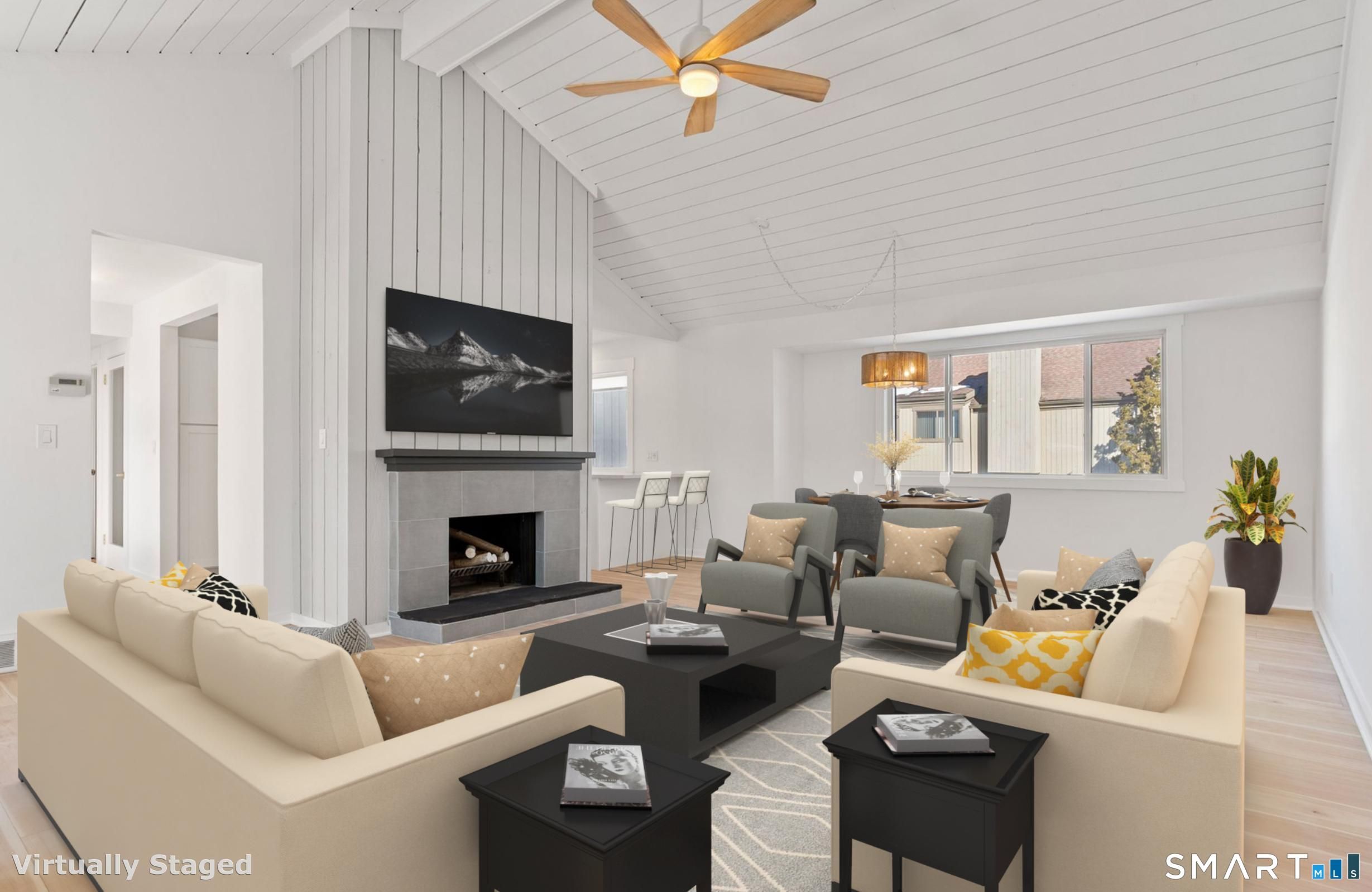 Welcome to Oronoque Village one of Fairfield Counties Premier Adult Communities. This exquisitely renovated Walcott home is Oronoque Village's most desirable design. It features cathedral ceiling in the main living space with a beautiful wood burning fireplace. There is a slider to an expansive deck highlighting a home loaded with natural light and you'll love showing off the new wood laminate flooring throughout this home. There is new white shaker kitchen with quartz countertops, a cozy breakfast bar and all new appliances.The primary bedroom feature a large custom walk in closet and the en-suite features double sinks and a large walk in shower that is beautifully detailed with soft gold accents. The 2nd bedroom offer 2 closets and makes a perfect den of office. Gorgeous hall bath features a shower stall and modern cabinetry boasting black accents.The lower level greets you with a beautiful stairwell to completely renovated living space, with laminate floors and sheetrock ceilings. There is a cozy family room, large office, half bath, laundry room and an oversized storage area round out this level. Oronoque Village is surrounded by Blackhawk Golf Club offering an optional membership. Included in the HOA are 2 club houses, 3 swimming pools, tennis and trials to walk. This is a wonderful 55+ community. Conveniently located off the Merritt parkway.