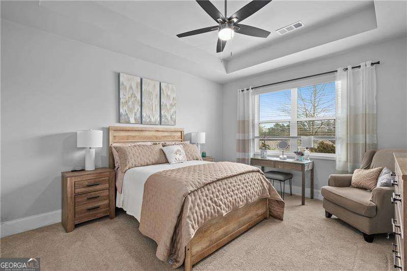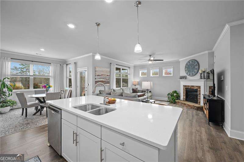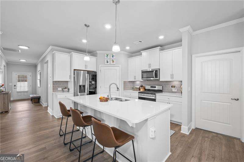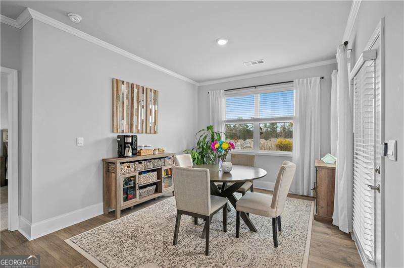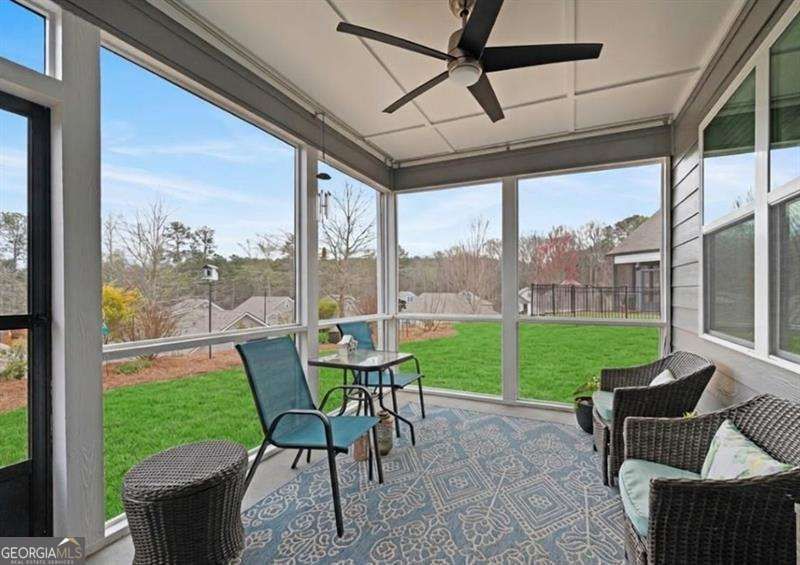 Welcome to 133 Cranberry Blossom Way, Dallas, GA 30132 - a move-in ready ranch home in a 55+ active adult community in Paulding County. If you've been searching for low-maintenance living with upscale finishes, a no-stairs floor plan, and a true sense of community, this is the one worth seeing. Situated on a quiet cul-de-sac - a gentle curve in the road that naturally limits through traffic - this beautifully maintained 3-bedroom, 2-bathroom home delivers comfort, style, and convenience without compromise. The HOA handles lawn maintenance, so your weekends are yours to enjoy rather than spend behind a mower. Pull up and you'll notice the manicured landscaping, charming curb appeal, and covered front entry that sets the tone for what's inside. Step through the front door and you're greeted by an open-concept layout with wood flooring, crown molding, and natural light throughout. The details feel intentional and elevated - not builder-basic. The living room anchors the main space with a cozy fireplace and natural flow into the kitchen and dining areas. Whether hosting family or enjoying a quiet evening in, the layout works beautifully for both - no awkward traffic flow, just a floor plan that makes daily life feel effortless. The kitchen is where this home really shines. A large center island with seating is the focal point, surrounded by quartz countertops, stainless steel appliances, a tile backsplash, and abundant cabinet storage. Function and style coexist in all the right ways. The adjacent dining area is wrapped in windows and opens directly onto a screened patio - one of the most livable features of the home. Morning coffee, al fresco meals, and relaxed evenings outside are easy to enjoy here, protected from the elements in every season. The primary suite is tucked away for real privacy, with a tray ceiling and generous dimensions. The en-suite bath features dual vanities, a large tiled walk-in shower with built-in bench, and a walk-in closet with excellent storage. No downsizing sacrifices here. The two secondary bedrooms offer genuine flexibility - overnight guests, a home office, hobby room, or home gym. Single-level living means everything you need is on one floor with no stairs anywhere in the home. Outside, the yard is manageable and low-maintenance by design, and the cul-de-sac setting keeps the street calm and quiet - a detail active adult buyers consistently say matters more than they expected. As a resident of this welcoming 55+ community, you'll enjoy access to a pool and clubhouse where neighbors connect and socialize. Communities like this in the Dallas-Hiram corridor continue to draw buyers from across Georgia for good reason: value, lifestyle, and location in one place. Everyday conveniences are minutes away - groceries, dining, pharmacies, and retail are all close at hand. A hospital and medical centers are nearby for peace of mind. Highway 92 and Highway 41 provide easy metro access, and Hartsfield-Jackson Atlanta International Airport is well within reach - perfect for the traveler who finally has the time and freedom to use it. 133 Cranberry Blossom Way photographs beautifully but lives even better. Single-story, move-in ready, 55+ community, screened patio, Dallas GA, Paulding County - if those are the words guiding your search, this is the home. Schedule your private showing today.