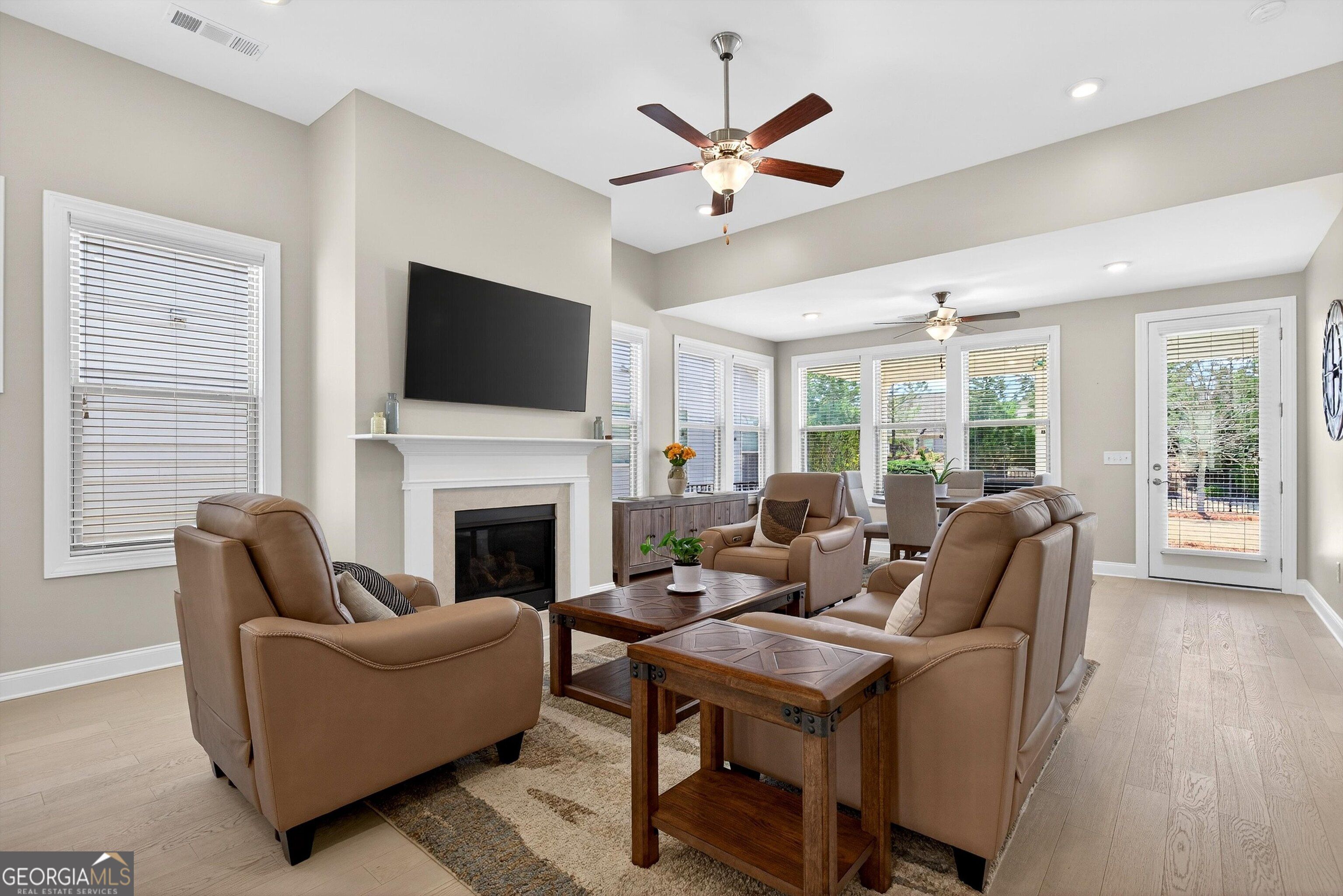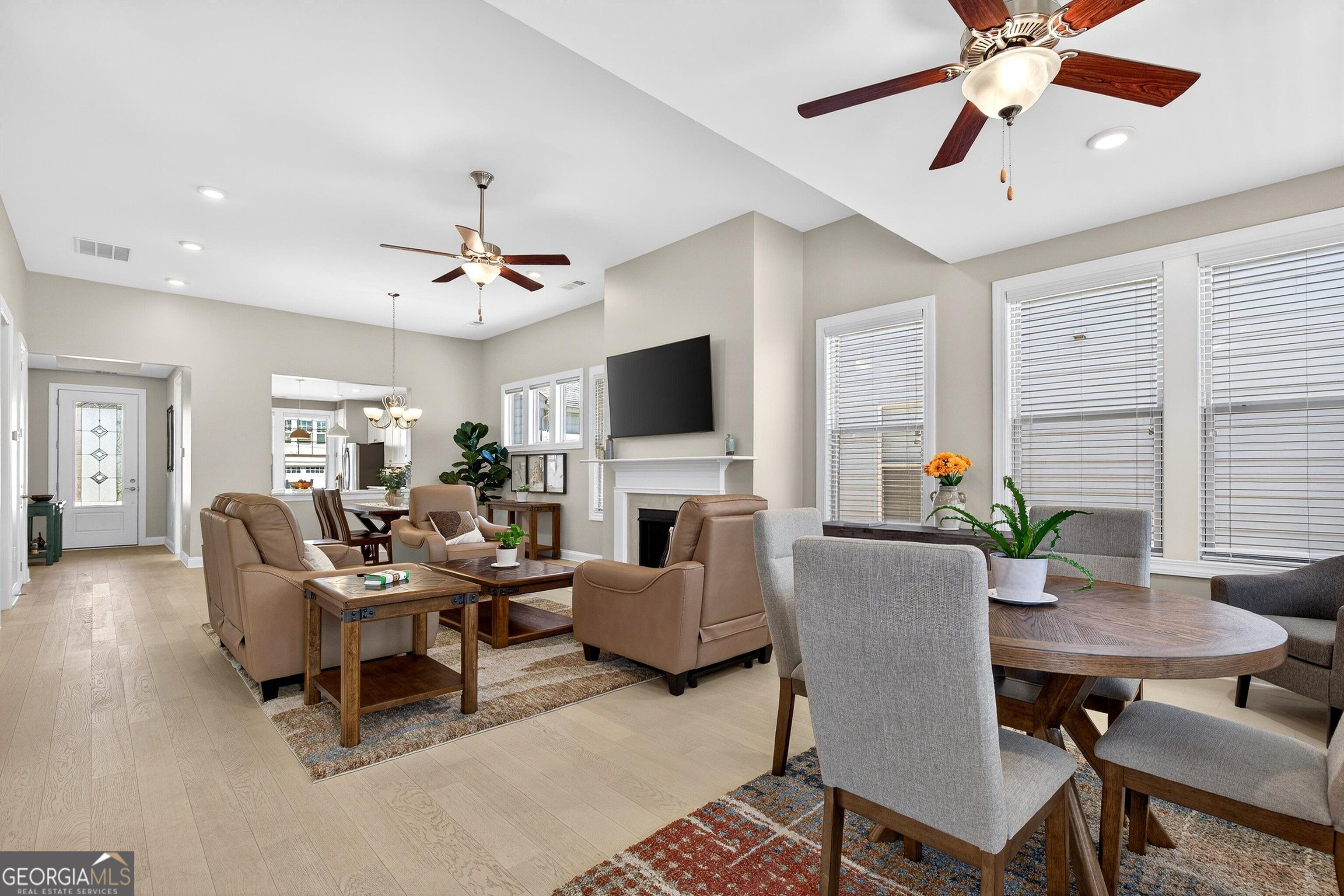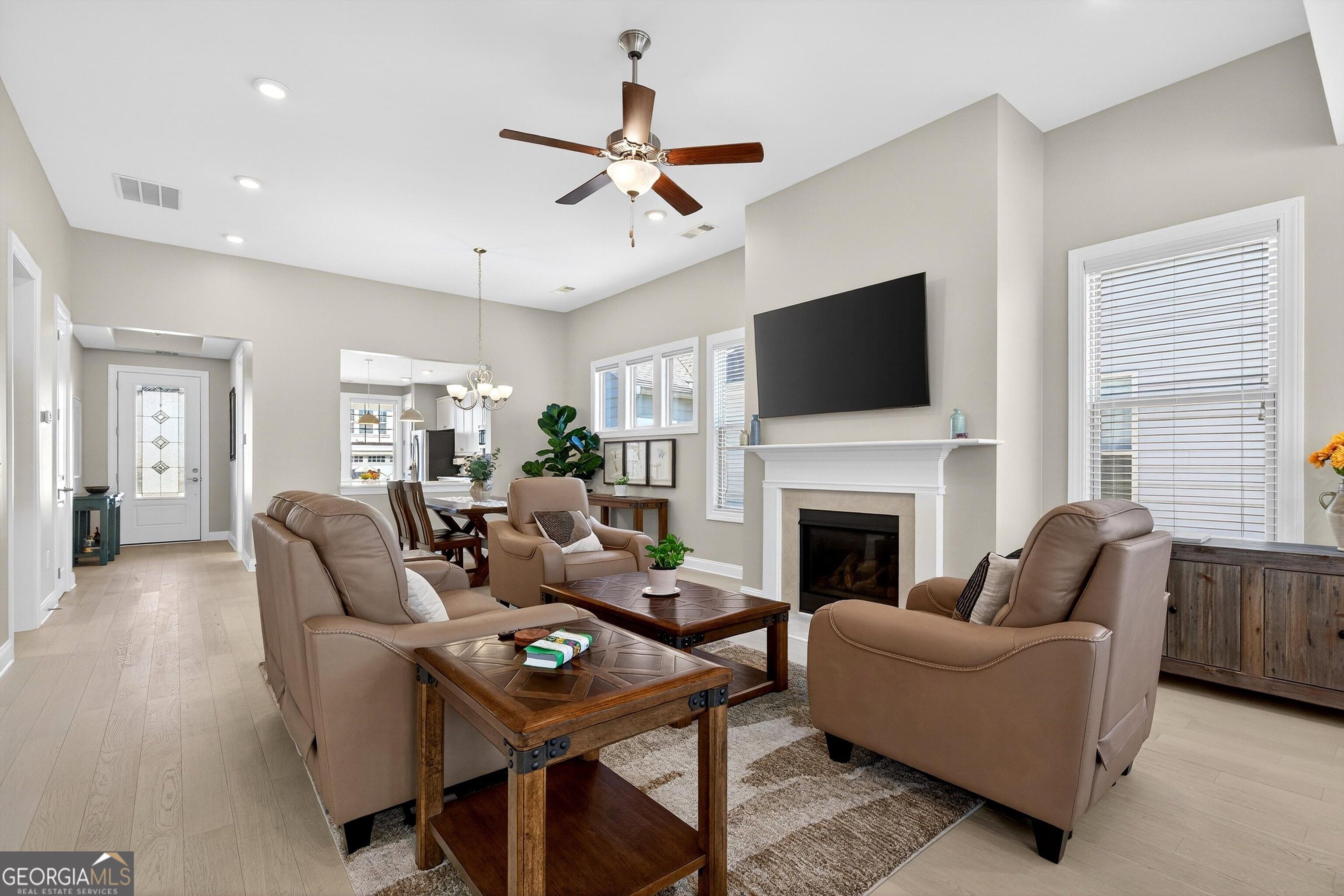 Welcome to Cresswind-Peachtree City's premier active adult community! This beautifully-designed Ashford Plan offers a charming covered front porch and an inviting color palette that draws you in from the street. Step through the decorative glass door into a foyer that flows seamlessly into the heart of the home. The bright, airy kitchen features a convenient central island, tasteful white cabinetry with solid-surface countertops, stainless-steel appliances, and an expansive view that overlooks the great room-perfect for entertaining and everyday living. The open living, dining, and gathering area includes an extra 8 feet of space, a cozy fireplace, and abundant natural light from numerous windows (and don't miss the remote controlled blinds!). The convenient owner's suite offers a tray ceiling, generous walk-in closet, double vanities, and large, tiled shower. A well-placed secondary hallway provides easy access to a comfortable secondary bedroom, full bath, and laundry room-creating ideal flexibility for visiting guests, a home office, and daily convenience. Step outside to a covered back porch overlooking a level, fenced backyard. Other home features include a sprinkler system and luxury vinyl plank flooring throughout - yard maintenance is provided as well! Cresswind is an active adult community with top-notch amenities including fitness center, indoor and outdoor swimming pools, and pickleball/tennis courts. Residents enjoy a WIDE array of classes, clubs, and activities!