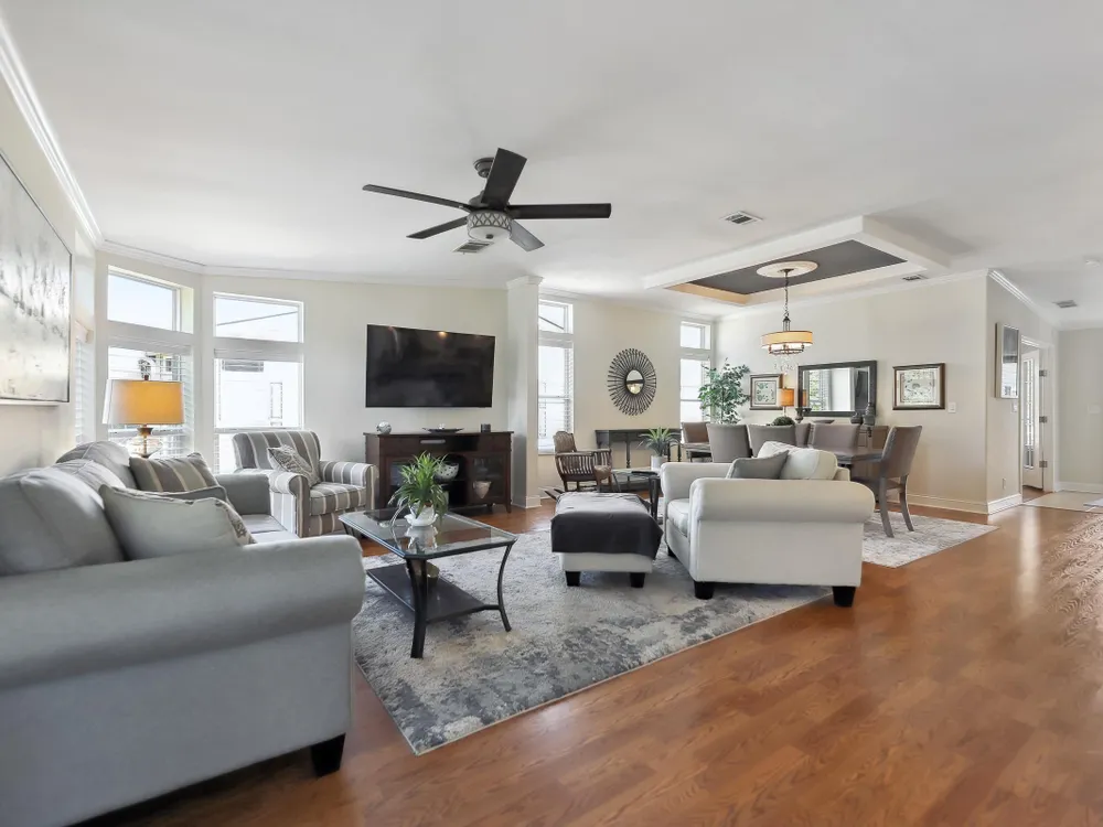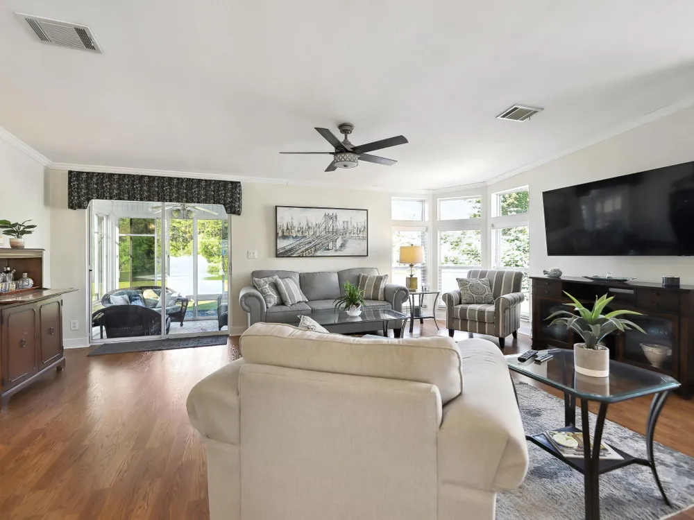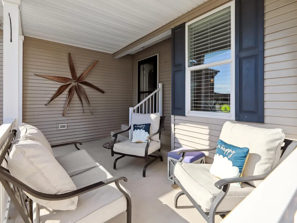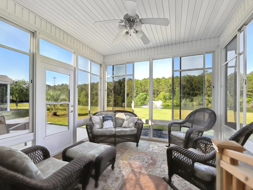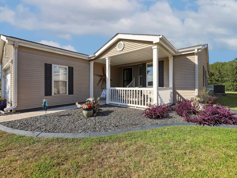 Back on the market due to no fault of the sellers!!! Welcome to this meticulously maintained Palm Harbor Augusta model, perfectly situated on an oversized homesite with breathtaking water views—just a short stroll from the award-winning Lakeside Crossing clubhouse and spa. As you arrive, you’ll be greeted by mature landscaping and a welcoming front porch—setting the tone for the comfort and quality found throughout this home. Step inside to discover a bright, open floor plan designed with both everyday living and entertaining in mind. The chef’s island kitchen is a true standout, featuring upgraded stainless steel appliances, classic white cabinetry, a walk-in pantry, desk area, and a stylish dropped soffit. Flowing seamlessly from the kitchen, the living and dining areas are ideal for gatherings, boasting rich laminate wood flooring, a tray ceiling in the dining room, transom windows, and upgraded lighting and ceiling fans. Retreat to the spacious primary bedroom, where a bay window offers serene water views, complemented by laminate flooring, a large walk-in closet, and a luxurious ensuite bath with a garden tub and walk-in shower. Enjoy peaceful Carolina evenings in the 12x15 sunroom, perfectly positioned to capture sweeping views of the water—an ideal spot for morning coffee or winding down at sunset. Additional features include: 20x20 two-car garage Ceramic tile in kitchen and baths Laminate wood flooring throughout New roof (2019) French doors leading to a versatile den or 3rd bedroom This home truly offers the perfect blend of style, function, and location. Don’t miss your chance to experience the Lakeside lifestyle—this is a must-see!