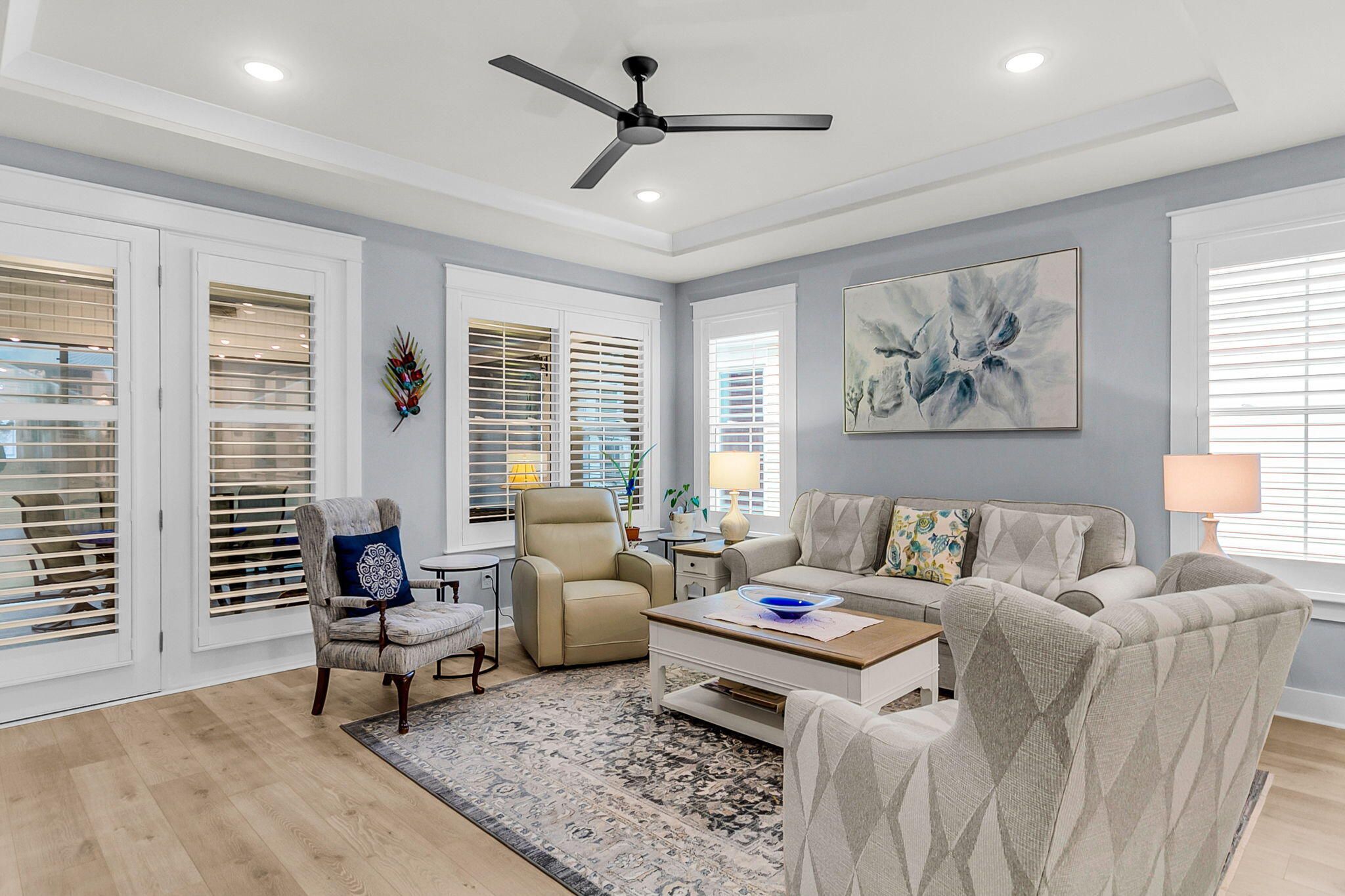 Welcome to this beautifully upgraded residence in the sought-after 55+ Four Seasons community. Resort style living at its best!The home features two spacious bedrooms plus a dedicated office that can easily serve as a third bedroom, hobby room, or guest space all on one floor for easy living. The gourmet kitchen opens seamlessly to the spacious living area and features high end appliances, storage galore, and a large island perfect for everyday living and entertaining. Unique to this home is the fully enclosed sunroom, professionally added so it stays cool in the summer and warm in the winter, creating another year-round living space perfect for relaxing, entertaining, or morning coffee.Soaring ceilings, upgraded lighting fixtures, crown molding, eight-foot molded doors, and plantation shutters add to the home's luxurious appeal. Upstairs, don't miss the huge second-floor storage area with easy access - an incredible bonus space that offers the potential to be finished out for an additional living area. Check out all the amenities Four Seasons has to offer, like a lakefront clubhouse, pools, fitness and social activities, courts (tennis/pickleball/bocce), and walking trails.