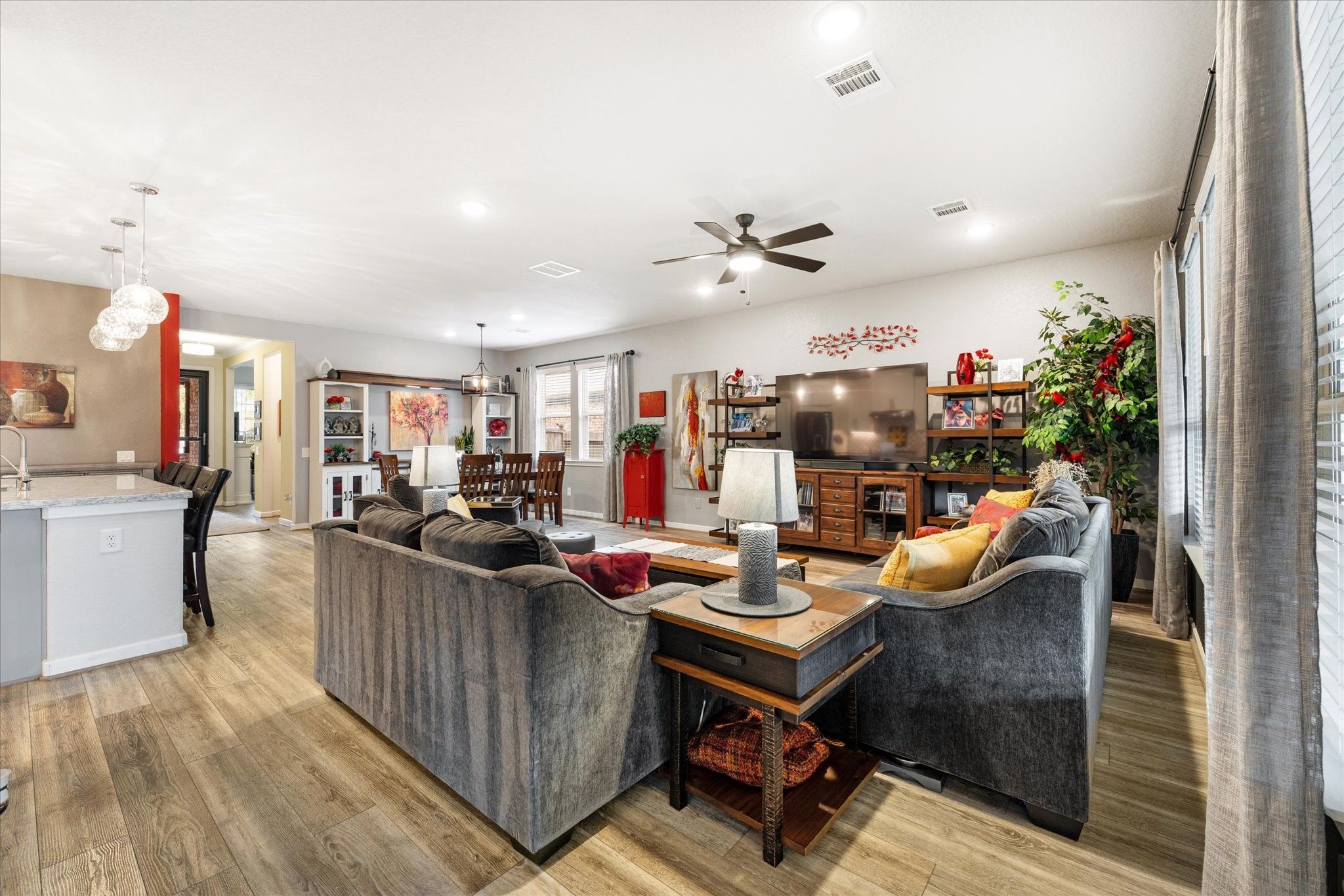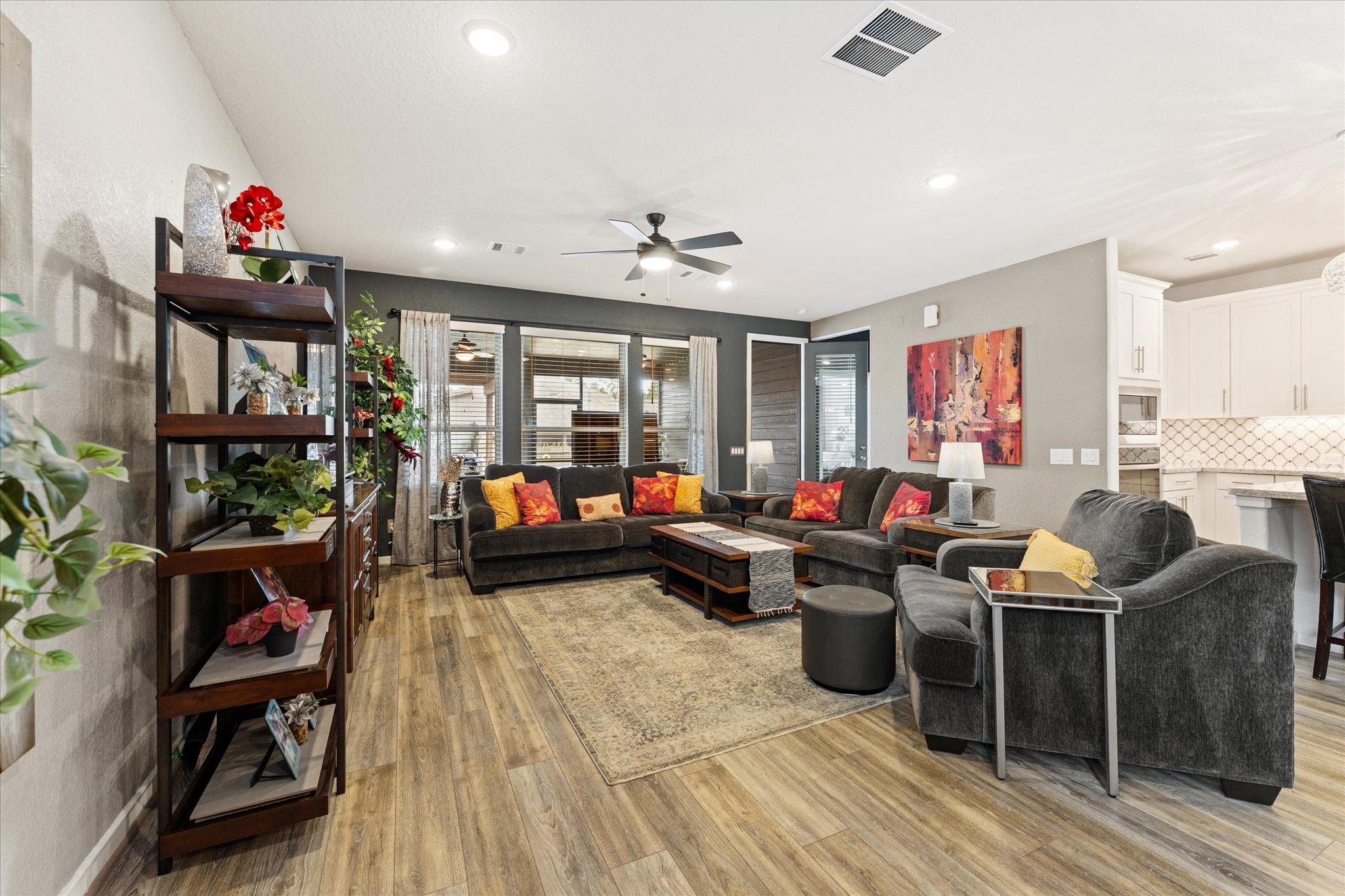 - Breakfast Bar, Double Vanity, Entrance Foyer, High Ceilings, Hot Tub/Spa, Kitchen/Family Room Combo, Pantry, Tub Shower, Walk-In Pantry, Ceiling Fan(s), Living/Dining Room, Programmable Thermostat