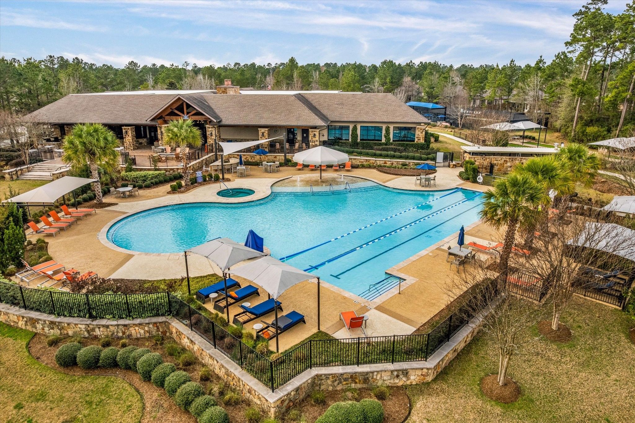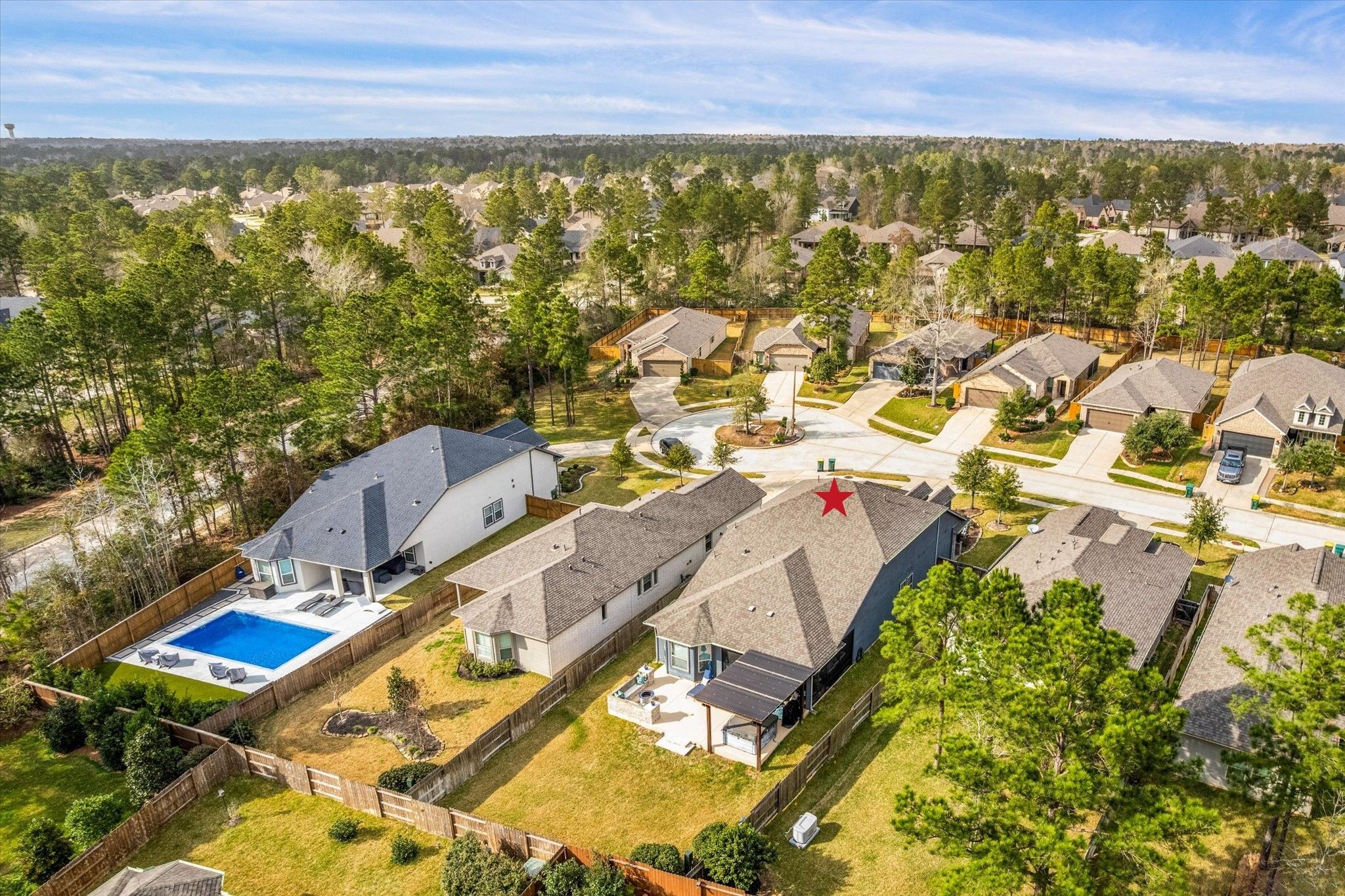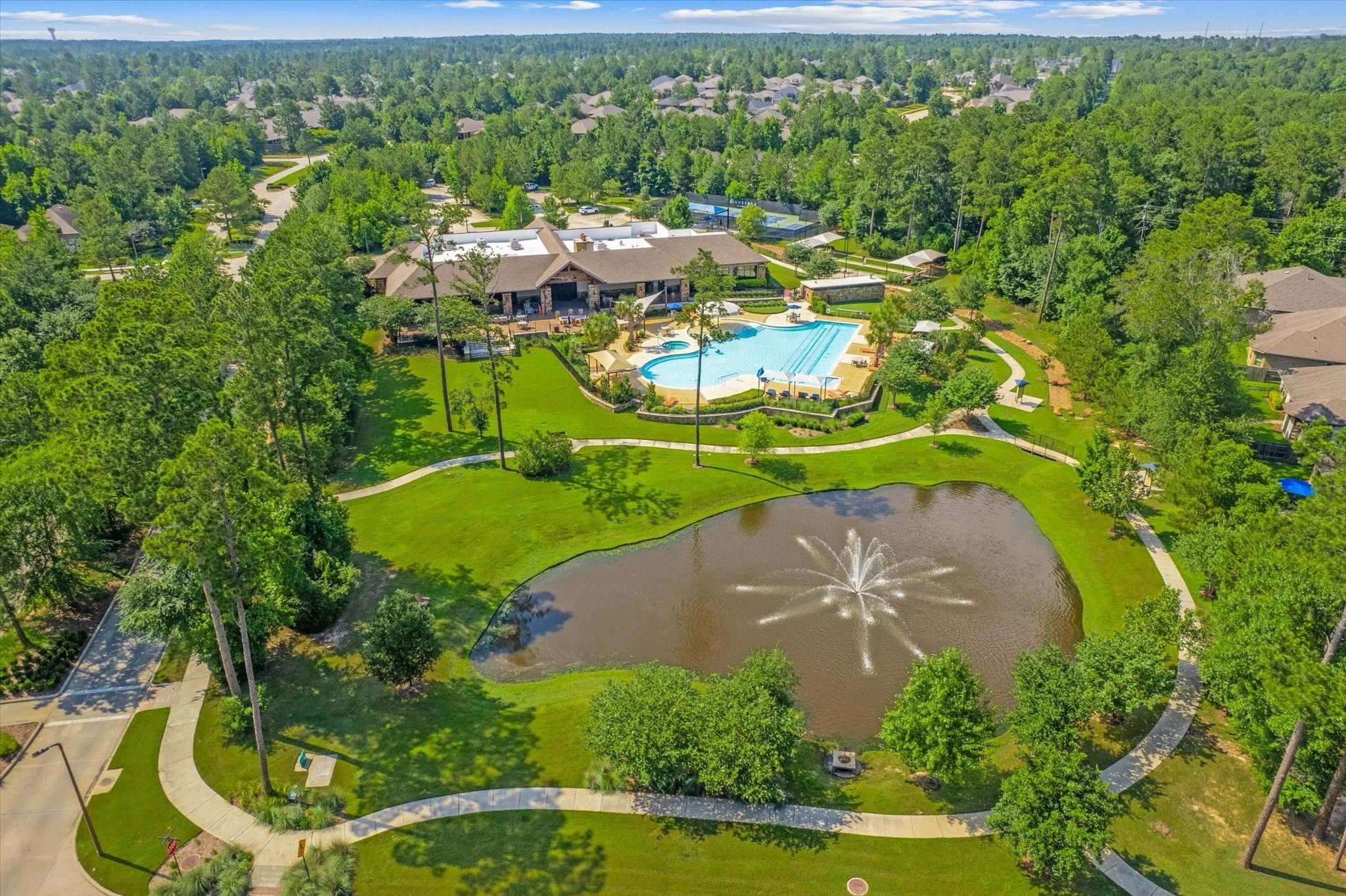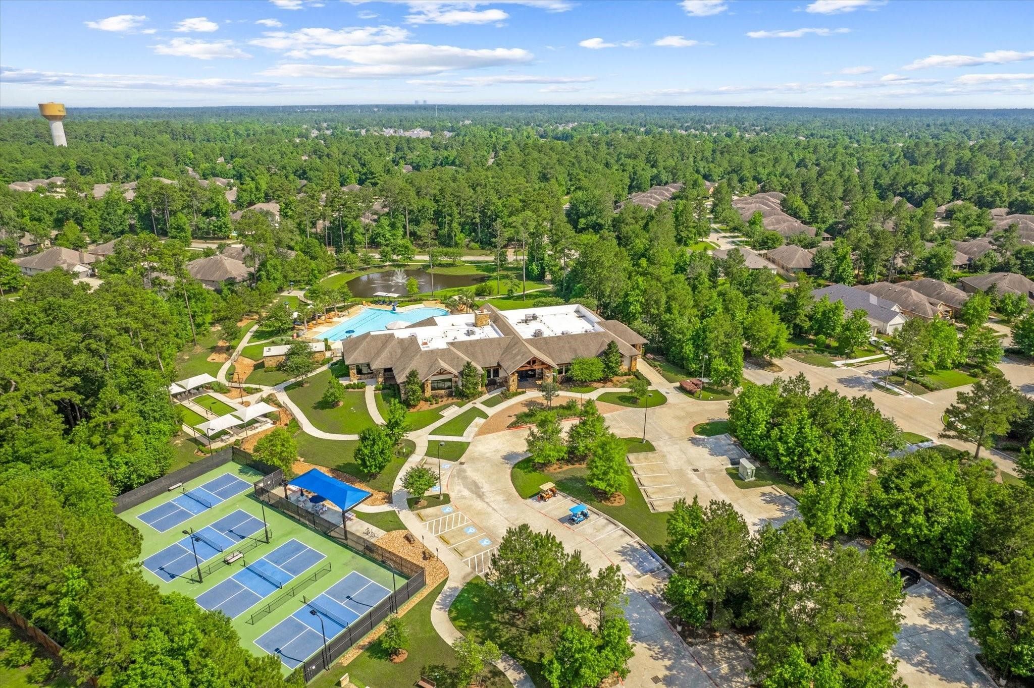 Nestled within the forest landscape of the highly sought-after Woodforest master-planned golf course community, this charming one-story home offers the perfect blend of elegance, efficiency, and vibrant 55+ living in Bonterra. Situated on an oversized premium lot, this home is truly an entertainer’s dream. Open concept living! Enjoy evenings under your custom pergola-covered patio, relax in the hot tub, or gather around the firepit with friends and neighbors.Bonterra offers state-of-the-art amenities and an active adult lifestyle. Just minutes from your doorstep, enjoy the beautiful clubhouse with patio gathering areas, pickleball and bocce courts, horseshoes, and a resort-style pool. As a resident, you also have full access to Woodforest’s incredible amenities, including tennis courts, a fitness center, miles of scenic trails, parks, basketball courts, and more — all surrounded by the beauty of nature and a premier golf course setting.