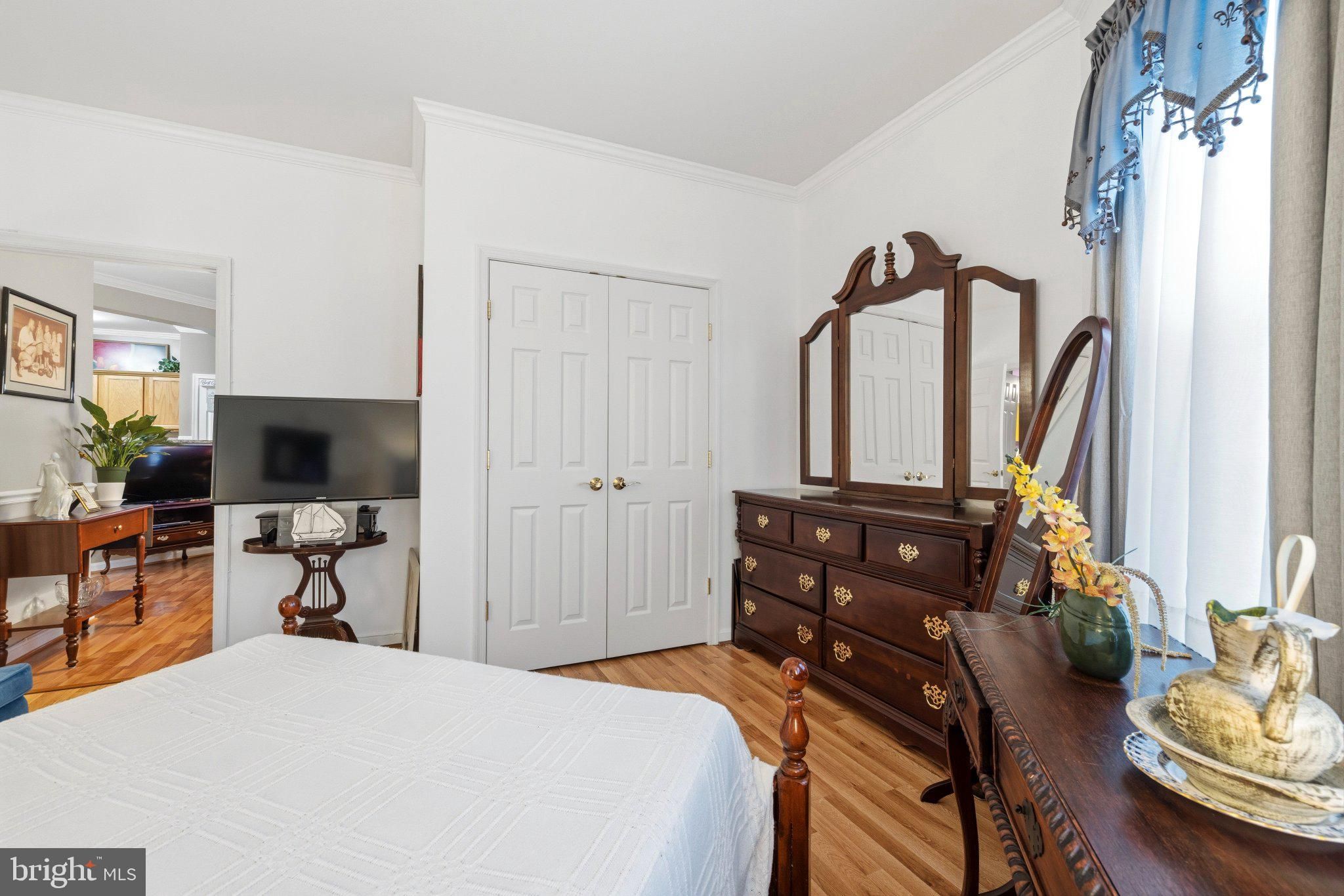 - Breakfast Area, Crown Moldings, Dining Area, Entry Level Bedroom, Floor Plan - Open, Primary Bath(s), Window Treatments, Wood Floors