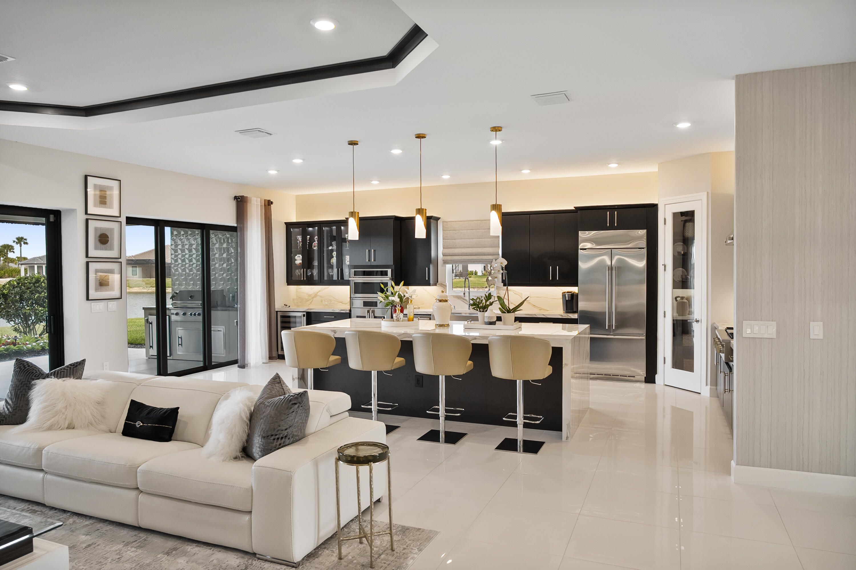 This Pallazio floor plan features extensive post-construction upgrades that go far beyond builder offerings. Offering 3 bedrooms, 3 bathrooms, plus a study/flex space, this exceptional home is situated on a quiet cul-de-sac on an oversized .36-acre pie-shaped lot that widens at the rear and overlooks a serene lake. Structural enhancements include an extended covered lanai, extended gourmet kitchen, outdoor kitchen gas and plumbing rough-ins, and extended bay windows in the primary suite. All impact windows and doors, paired with a brand-new barrel tile roof (2023), provide peace of mind and contribute to lower homeowners insurance rates. Inside, oversized porcelain tile flooring throughout (no carpet) creates a light, airy, and cohesive aesthetic. Professionally designed interiors take