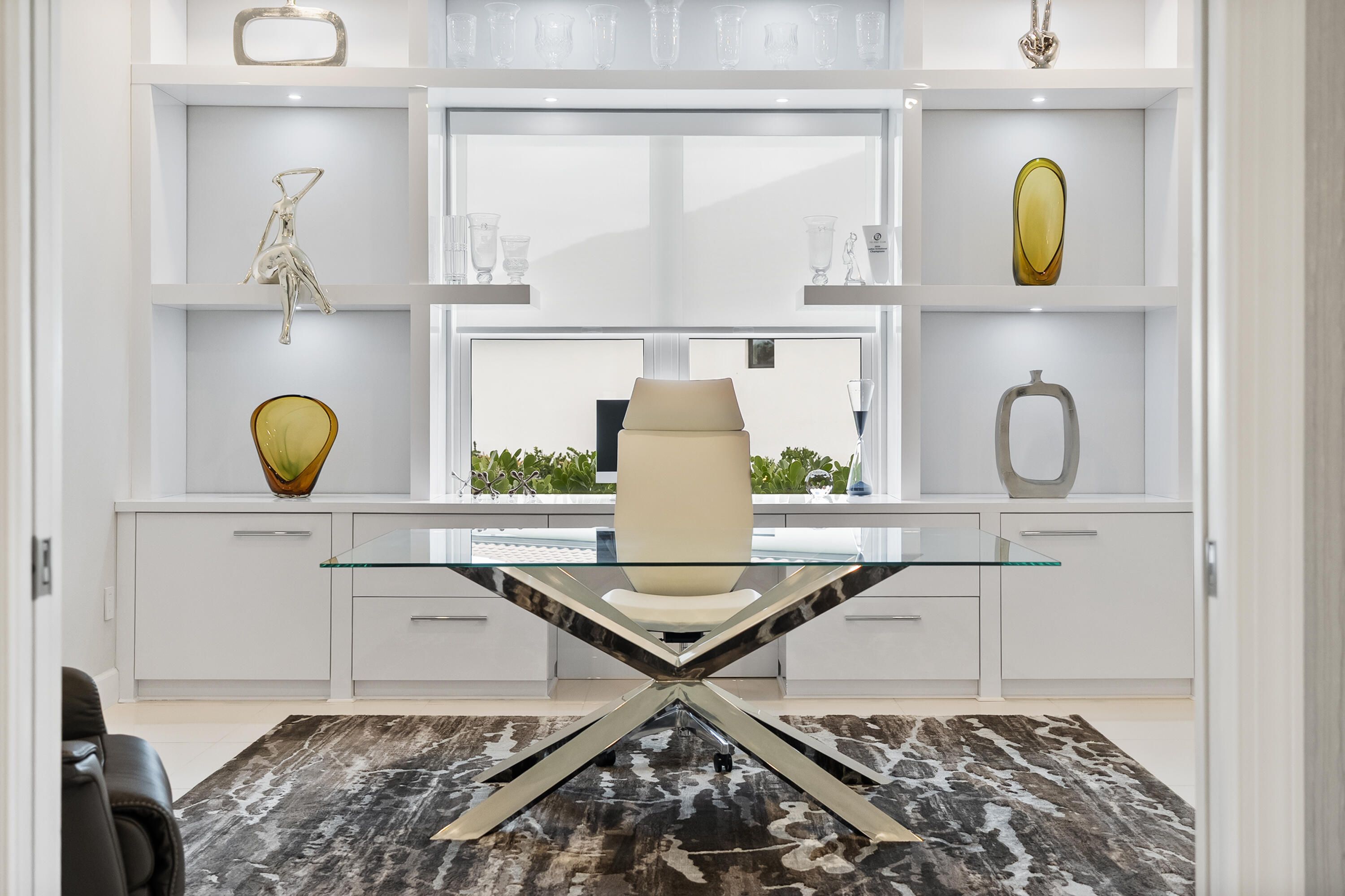 - Built-in Features, Entrance Foyer, Pantry, Walk-In Closet(s), Closet Cabinetry, Custom Mirrors, Impact Glass, Dual Sinks, Main Level Primary, Sitting Area In Primary Bedroom, Separate Shower