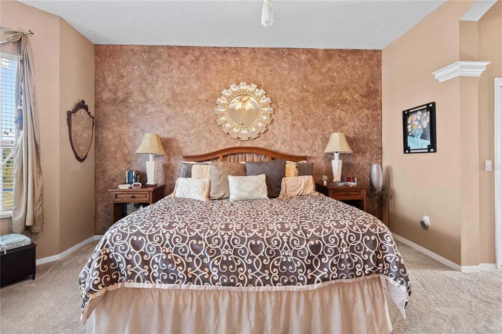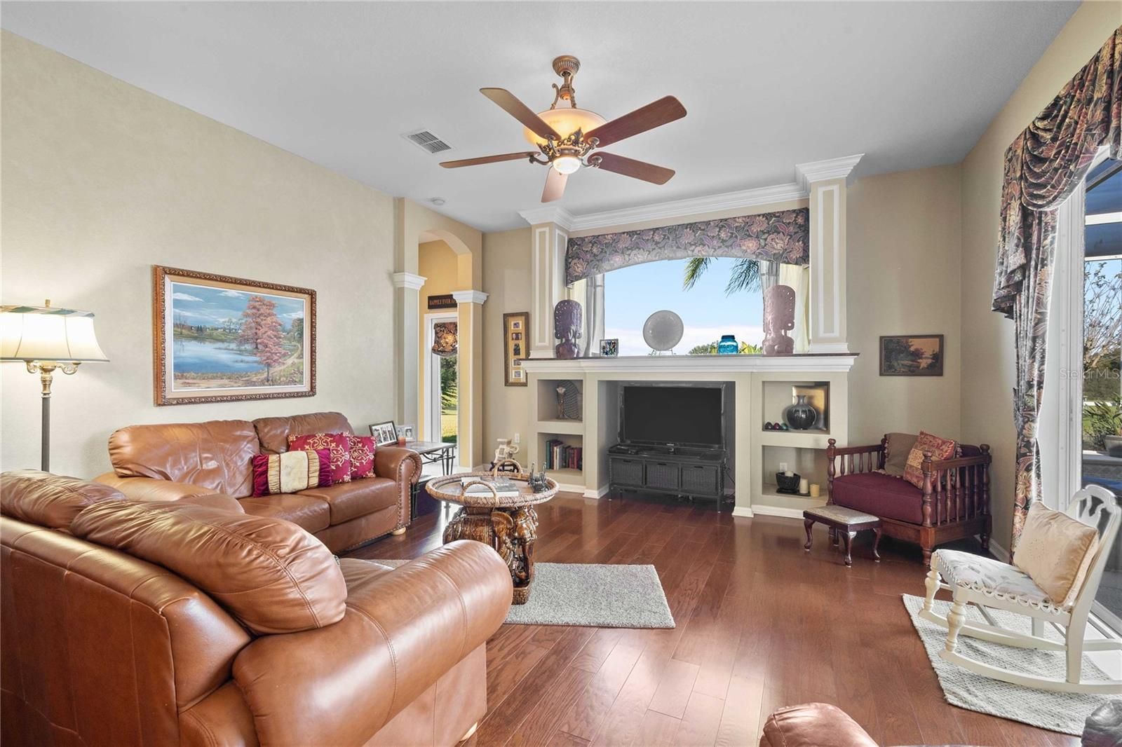 - Ceiling Fan(s), Crown Molding, High Ceilings, Open Floorplan, Walk-In Closet(s)