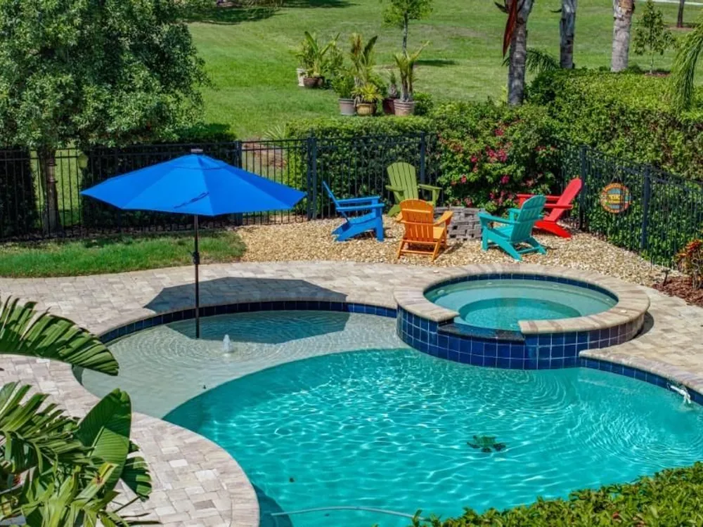 Pride of ownership shines throughout this beautifully maintained 4-bedroom, 3-bath pool home with a dedicated office and spacious 3-car garage, nestled on a private corner lot in the gated community of Lake Jovita. Step inside and feel instantly welcomed by warm earth-tone colors, elevated ceilings, and a thoughtfully designed great room layout that balances relaxation and functionality. Just off the foyer, you’ll find a private office and formal living area—ideal for focused work or intimate gatherings. At the heart of the home, the chef’s kitchen features granite countertops, an accented tile backsplash, built-in range and dual ovens, 42-inch wood cabinetry, a beverage refrigerator, and an oversized center island—blending style and function seamlessly. Inland Homes designed this open-concept floor plan with flexibility in mind, offering multiple living and dining areas to suit your lifestyle and entertaining needs. This home is not about golf course views—it’s about privacy, and it delivers. The premium corner lot is beautifully landscaped with mature greenery that wraps around the fully fenced backyard and pool area. The lighted pool, surrounded by a covered lanai, creates a tranquil oasis perfect for morning coffee or weekend gatherings. The split-bedroom layout offers balance and comfort, with three generously sized bedrooms and two full baths on one side of the home. On the other side, the expansive primary suite is a true retreat, complete with a garden tub, separate shower, dual vanities with a makeup counter, and a spacious walk-in closet. Additional highlights include a well-equipped laundry room, an oversized driveway for guest parking, inground well for irrigation and pool, and a whole-home Generac generator—providing peace of mind and comfort year-round. Meticulously cared for, this home is considered pre-certified and truly move-in ready. If you're seeking privacy, comfort, and the Florida lifestyle in one of Pasco County’s most desirable gated communities, this home checks every box—and is an absolute must-see.