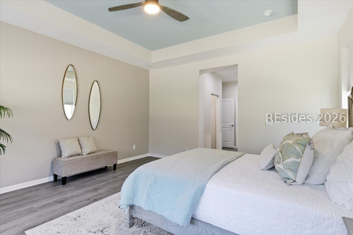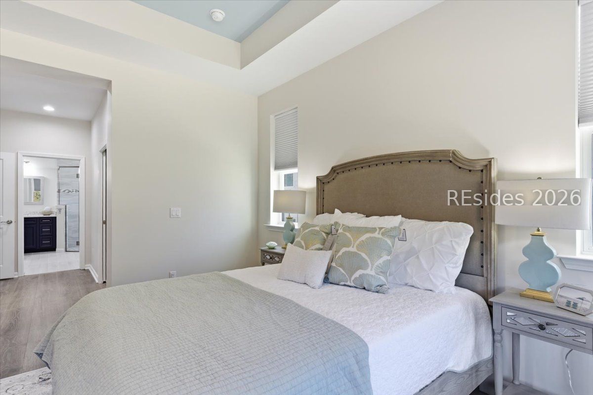 - Tray Ceiling(s), Main Level Primary, Multiple Primary Bathrooms, Smooth Ceilings, Pantry