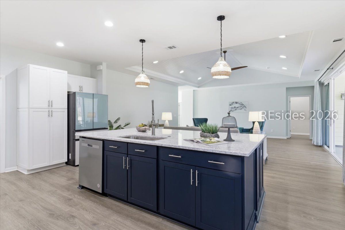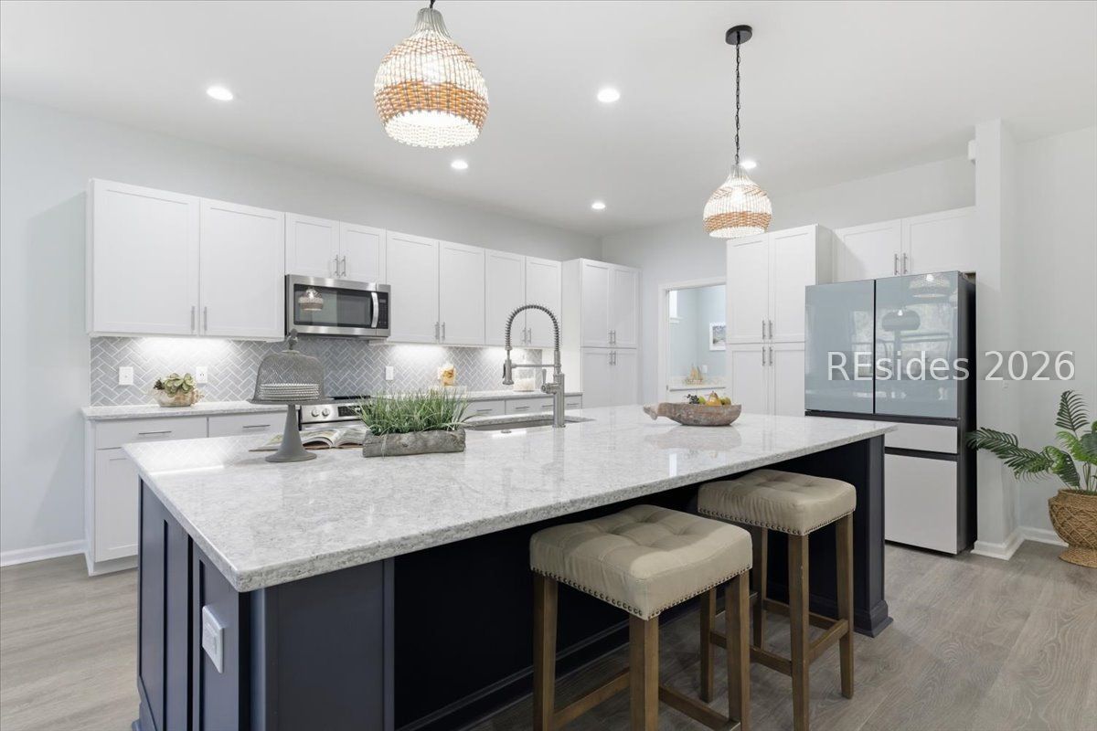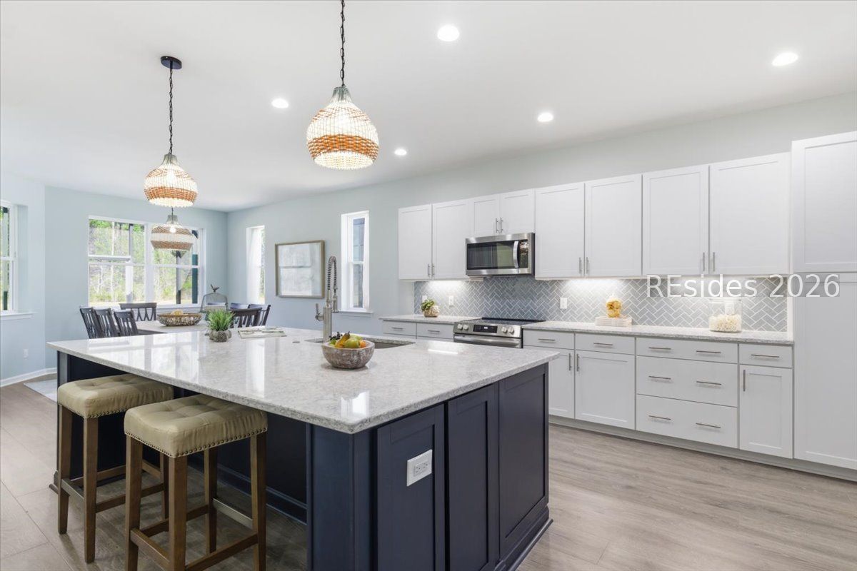 This stunning Aruba model sits on a rare wooded and lagoon lot, offering the perfect blend of privacy, peaceful views, and resort-style living-all complete with a highly sought-after 3-car garage.From the moment you arrive, the island-inspired curb appeal sets the tone for a relaxed, elevated lifestyle. Step inside to an open, airy floor plan designed for both everyday comfort and effortless entertaining. Natural light pours through expansive windows, drawing your eye straight to the tranquil lagoon and lush wooded backdrop-no rear neighbors, just nature and calm.The heart of the home is the spacious kitchen, featuring a large center island, modern finishes, ample cabinetry, and seamless flow into the dining and living areas. Whether you're hosting sunset cocktails, weekend brunch, or a casual gathering after pickleball, this space was made for connection and ease. The living area opens beautifully to the outdoors, making it easy to enjoy the coastal breezes and scenic views.The primary suite is a true retreat, thoughtfully positioned for privacy and relaxation. Wake up to peaceful water views and unwind in a spa-like ensuite with dual vanities, a large walk-in shower, and generous closet space. Additional bedrooms and flex spaces offer versatility-perfect for guests, a home office, or hobby room.Outside, the backyard is your personal escape. With a wooded buffer and lagoon view, there's plenty of room to relax, entertain, or simply enjoy the sights and sounds of nature. Imagine morning coffee with birdsong, evening wine at sunset, and starry nights without the glow of homes behind you.Living in Latitude Margaritaville means access to world-class amenities including resort-style pools, a private beach club, fitness and wellness centers, live music, dining, and endless social activities-all designed to keep life fun, active, and stress-free.1331 Parrot Avenue isn't just a home-it's a lifestyle. Come see why this Aruba model on a premium lot is the perfect place to kick back, relax, and live your best Margaritaville life.