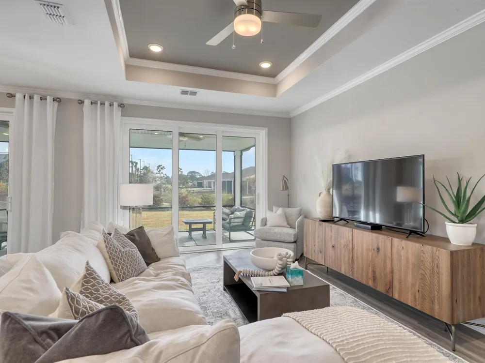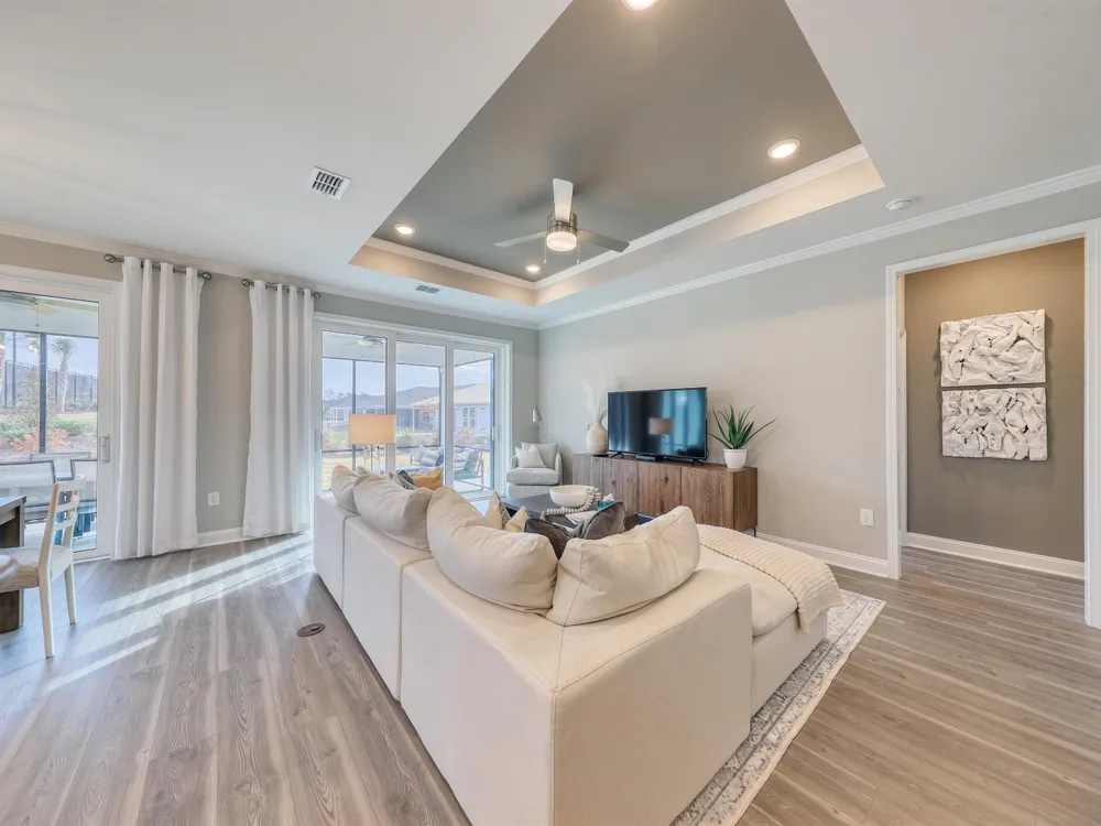 Builder Model Home for Sale in 55+ Community! All Appliances Convey. Phase 1, just a minute walk to the Club House and Amenities. MOVE IN READY NOW - Ask about Builder Special Financing Options and Closing Cost Incentives. Prosperity Plan with Extended Screened Lanai and Double Sliders to Patio. Deluxe Kitchen with Stone Gray Soft-close Cabinetry and roll-out trays. Kitchen-Aid Gas Range and Stainless Steel Appliances. Calcatta Gold Quartz Countertops, White Modern Backsplash, Kitchen Faucet Upgrade and Under Cabinet Lighting. Kitchen Island, Walk-in Pantry and Cafe Space. Bonus Flex Room/Office Space with Glass French Doors. Luxurious Owners & Guest Bath with Frameless Shower doors, Handheld Shower Head and Grab Bar in Owners Bath. Owners Suite with Walk-in Closet. Laminate Flooring throughout Main Living Areas and Bedrooms and White Water 12x24 Tile in Baths/Laundry Room. Laundry Room Sink and White Cabinets with Whirlpool Washer and Dryer. Upgraded Paint package, upgraded Traditional Trim Package with Crown Molding, Wainscoting and Drop Zone at Owners Entry. Upgraded 8 Ft. Front Door. Decorative Lighting, Ceiling Fans, Brushed Nickel Finishes and Blinds Included. Tray Ceilings in Gathering Room, Owners Suite and Flex Room. Finished Garage with Walk-up Stairs to Attic Storage above Garage. Irrigation System, Pest Control System and Bronze Gutters included. Furniture may be purchased as separate Bill of Sale. Remaining Structural 10-year Builder Warranty and Remaining 5-year Leak Protection Warranty. Just a Golf Cart ride to the Beach! 55+ Active Adult/Lifestyle Community – Age Restricted, Central North Myrtle Beach, only 1.5 miles from the ocean. Golf Cart friendly, pets/fences allowed, on-site Amenity Center/Clubhouse, Yard Care, High-Speed Internet and Cable included in Monthly HOA. <500 Homes upon completion in 2026, we will be SOLD OUT. Build to suit, choice of 11 Customizable Floor Plans. 2-5 Bedroom homes with 2-3 car garage options. Monthly Events/Activity Calendar provided by full-time Lifestyle Director. Amenity Center/Clubhouse includes; Indoor Lap Pool, Outdoor Salt Water Pool/2 Hot Tubs, 8 Pickleball Courts, Fitness Center, Bocce Courts, Putting Green & 5’ Sidewalks both sides of the street throughout the community! <5 minutes to City Community Center, Sports Complex, Aquatics & Fitness Center and Crescent Beach Public Beach Access. Dog Park, Marinas, RV Parks/Storage, Golf Courses, Dining, Grocery, Medical Facilities and more within 15 minutes. Myrtle Beach International Airport <30 minutes away! You cannot beat this location!