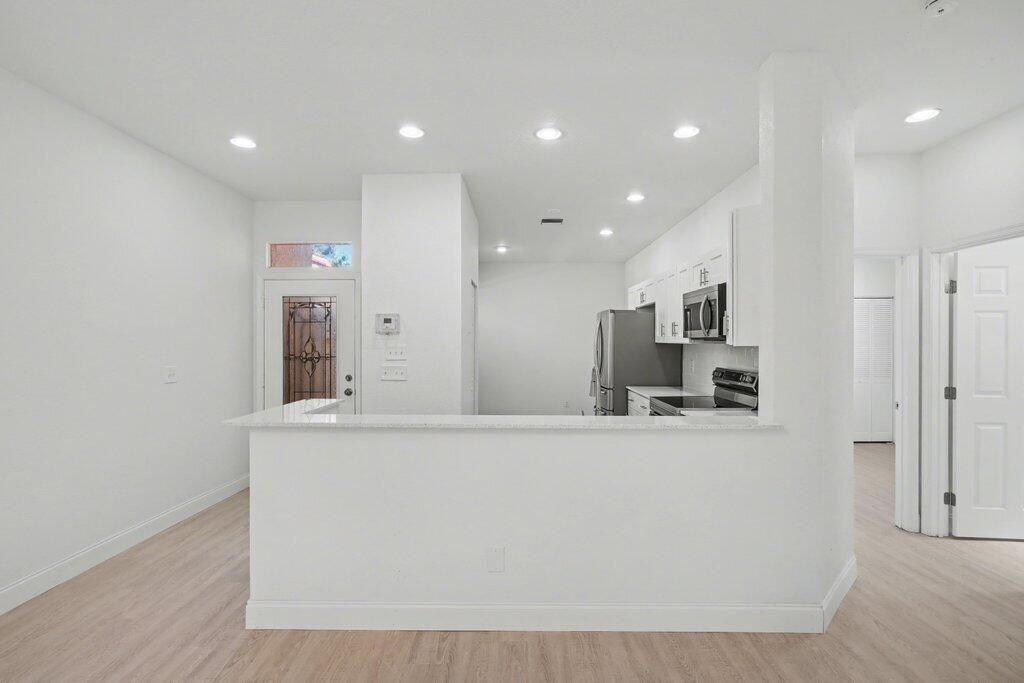 Beautifully renovated 3-bedroom, 2-bath villa offering comfort, style, and privacy. The updated kitchen features new white cabinets, granite countertops, and stainless steel appliances--perfect for everyday living and entertaining. Both bathrooms have been tastefully upgraded with new tile, vanities, and modern fixtures. Enjoy relaxing on the screened patio overlooking a private preserve view with no rear neighbors. Additional highlights include a spacious 2-car garage and a peaceful setting that blends indoor and outdoor living. NEW ROOF AC 2020
