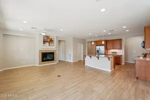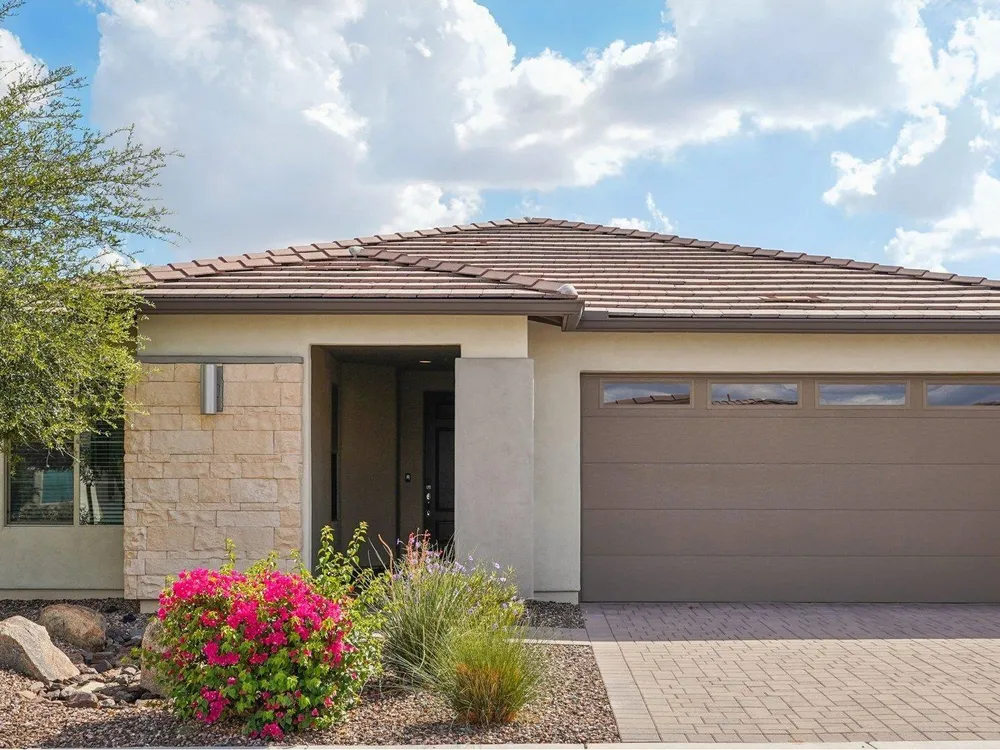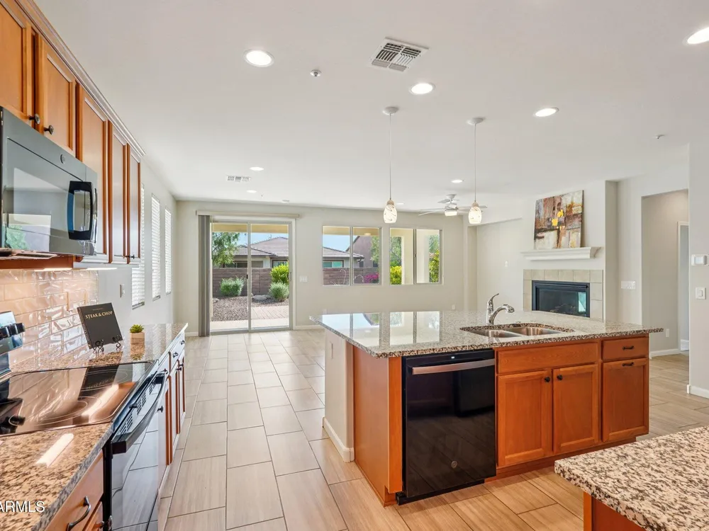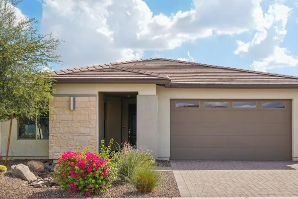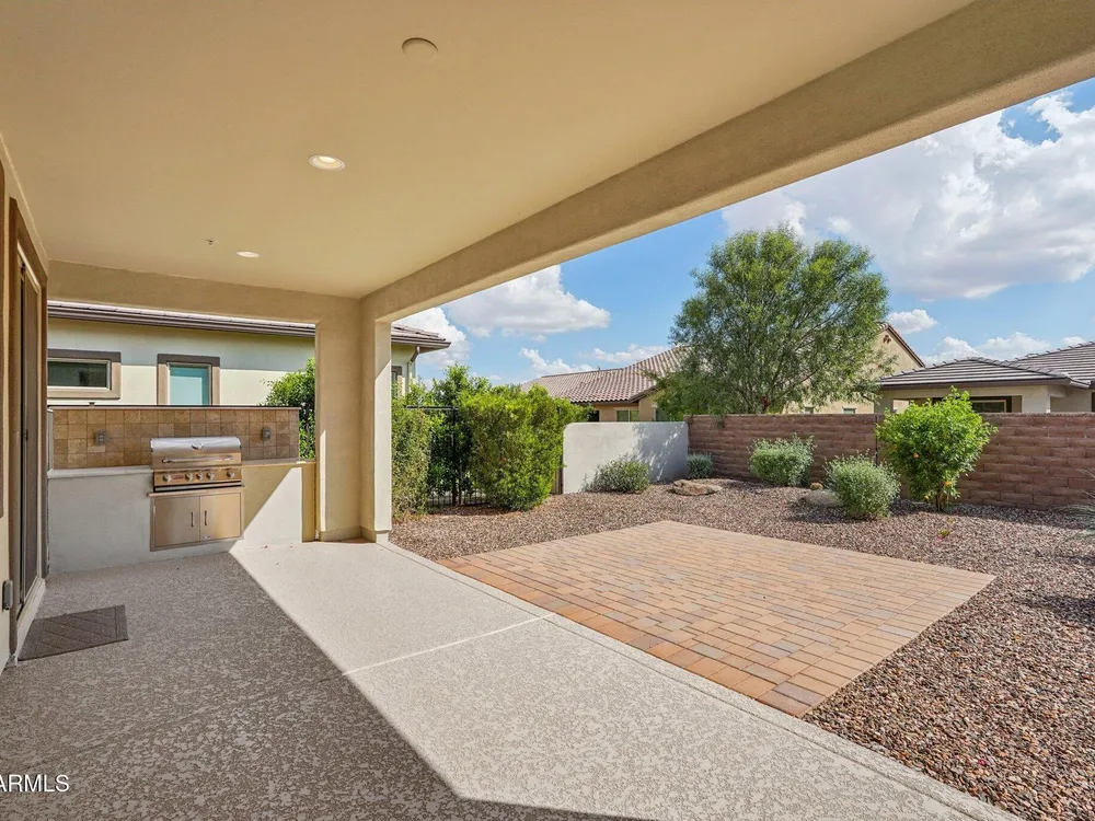 Light & Bright 2021 built Allure floorplan in the award-winning Active Adult community of Trilogy at Vistancia. This GORGEOUS home has 2 large bedrooms & 2 baths nestled on a N/S lot close to the Mita Club. Light stone on the entry, BEAUTIFUL LANDSCAPING & PAVER walkways/porch/driveway creates excellent curb appeal. Inside you will find up-to-date tile flooring in all the right areas, carpet in the bedrooms, GAS FIREPLACE in great room & freshly painted throughout. Kitchen features upgraded cabinetry, roll-outs, recycling center, DESIGNER BACKSPLASH, pendant/under cabinet lighting, large walk-in pantry & BUILT-IN DESK! Primary suite includes two sinks, TILE SHOWER & large closet w/linen cabinet. Backyard features a SPACIOUS covered patio w/cool decking, EXTENDED paver patio, BUILT-IN BBQ & PRIVATE backyard. The garage with a 4 ft extension has plenty of room for toys & storage. Additional upgrades: smart features, floor outlet in great room, elevated toilet in primary suite, water softener, lights/fans, towel bars, utility sink & trash enclosure. Home is located in the award-winning gated community of Trilogy at Vistancia w/5-star-resort style amenities: Kiva Club - 35,000 s.f. w/indoor & outdoor pools, fitness center, day spa, cafe, billiards, meeting rooms, library, tennis courts, pickleball courts, bocce ball, events & many activities to choose from. Outstanding Gary Panks-designed golf course is woven t/o the original neighborhood. V's Taproom restaurant is located within the community. Mita Club has additional outstanding community amenities: pool, tennis courts, café, artisan studio, culinary kitchen, fitness center, bocce ball, cornhole, etc... Easy access from Trilogy to the 303, shopping, restaurants & entertainment.