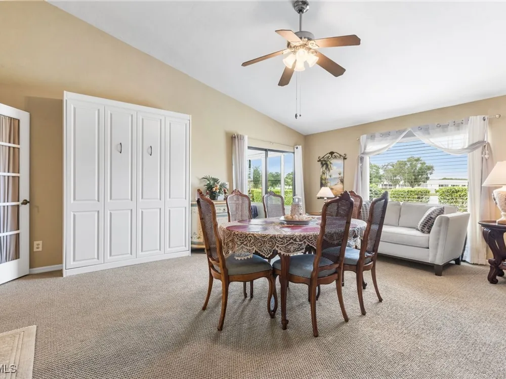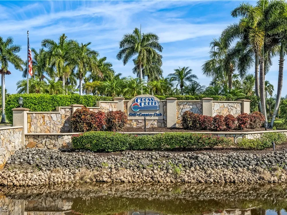 Take a swing at living your SWFL life today with this "condo-home" in the BUNDLED GOLF community of Cross Creek Country Club! The SHERBET SUNSETS OVER A BREATHTAKING LAKE & COURSE VIEWS is just what you need, and exactly what you will find from the IMPACT-RATED SUNROOM in this WARM & INVITING 2,000 sqft home with VAULTED CEILINGS. Two beautifully appointed and spacious bedrooms, a MASSIVE DEN with a murphy bed and views of the shimmering lake, and the 2.5 baths ensure plenty of space for entertaining family & friends. At the end of the PAVER DRIVEWAY lies the 2-CAR GARAGE with EPOXY floors, STORAGE, and a GARAGE SCREEN that is sure to impress any buyer. You'll love the combination of carpet and tile flooring throughout the home, while the STAINLESS STEEL appliances in the UPDATED KITCHEN make cooking a breeze. With a BRAND-NEW WATER HEATER, a METAL ROOF COVERED BY THE ASSOCIATION, HURRICANE SHUTTERS, and a 6" REINSULATED ATTIC, this home is not only beautiful but also offers you peace of mind and is more energy-efficient. Need a move-in-ready experience? FURNISHINGS ARE NEGOTIABLE with a few exceptions! When you're not on the golf course, you can take advantage of the two community pools, perfect for relaxing and soaking up the Florida sun. Or, you could enjoy another one of the many amenities Cross Creek offers: tennis, pickleball, bocce, restaurant, hot tub, and more! Located off Daniels Parkway, this home is just minutes away from a variety of dining, shopping, and entertainment options. It is also perfectly positioned between two Spring training facilities (for the Twins and the Red Sox!), RSW International Airport, and the pristine beaches of SWFL! With its prime location, updates, view, amenities, cable/internet and more included, and low HOA fees & taxes, this home certainly qualifies as a “BEST VALUE BUY!” Don't miss the opportunity to make this slice of paradise your own.