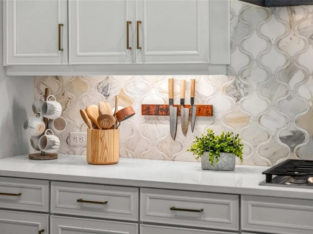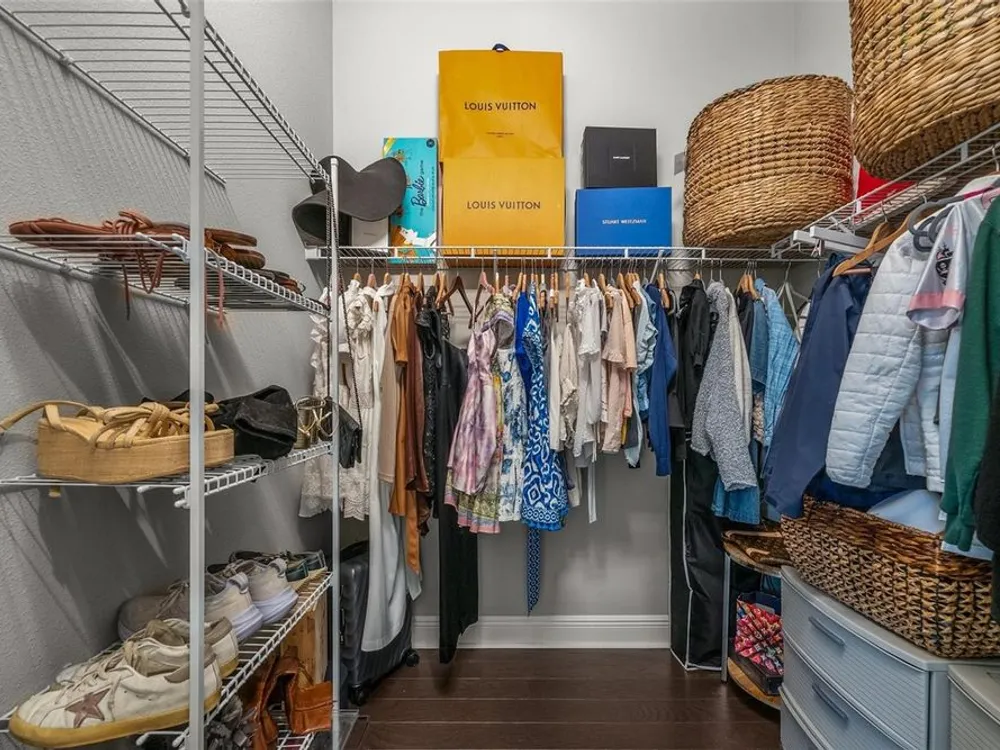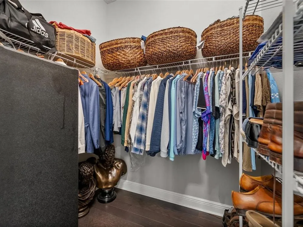 - Built-in Features, Ceiling Fan(s), Eat-in Kitchen, High Ceilings, Solid-Wood Cabinets, Stone Counters, Tray Ceiling(s), Walk-In Closet(s)