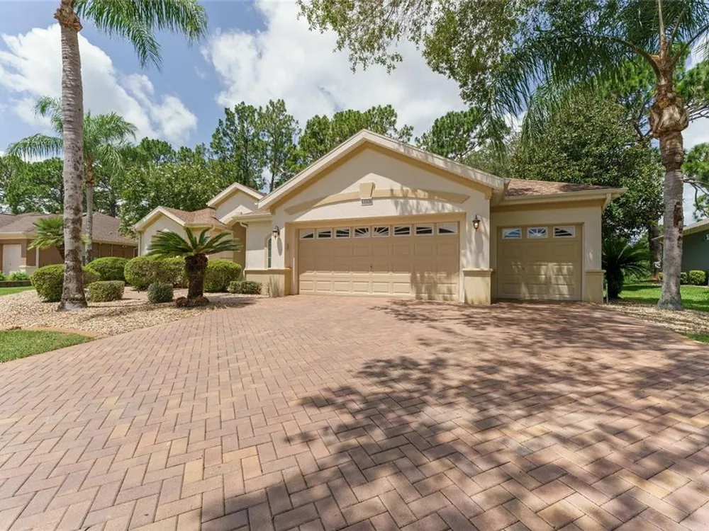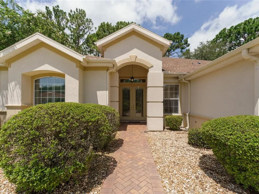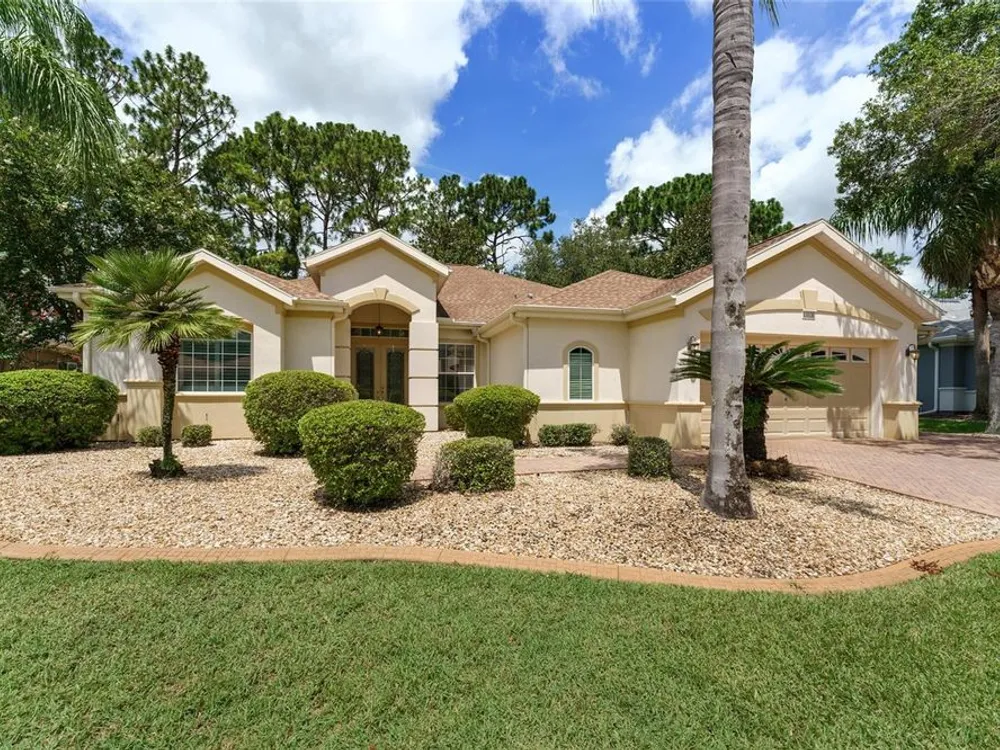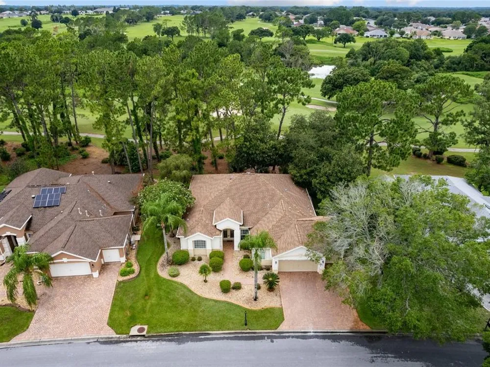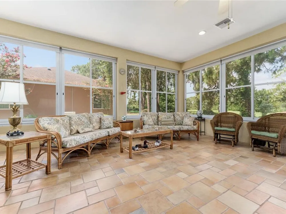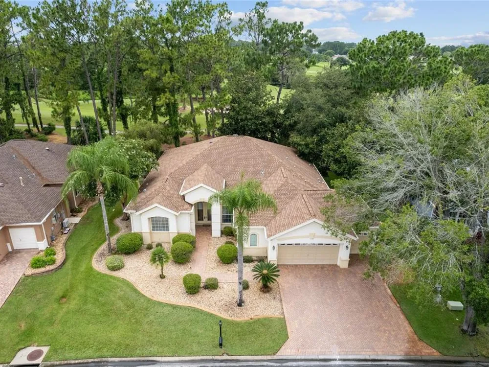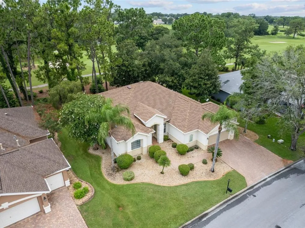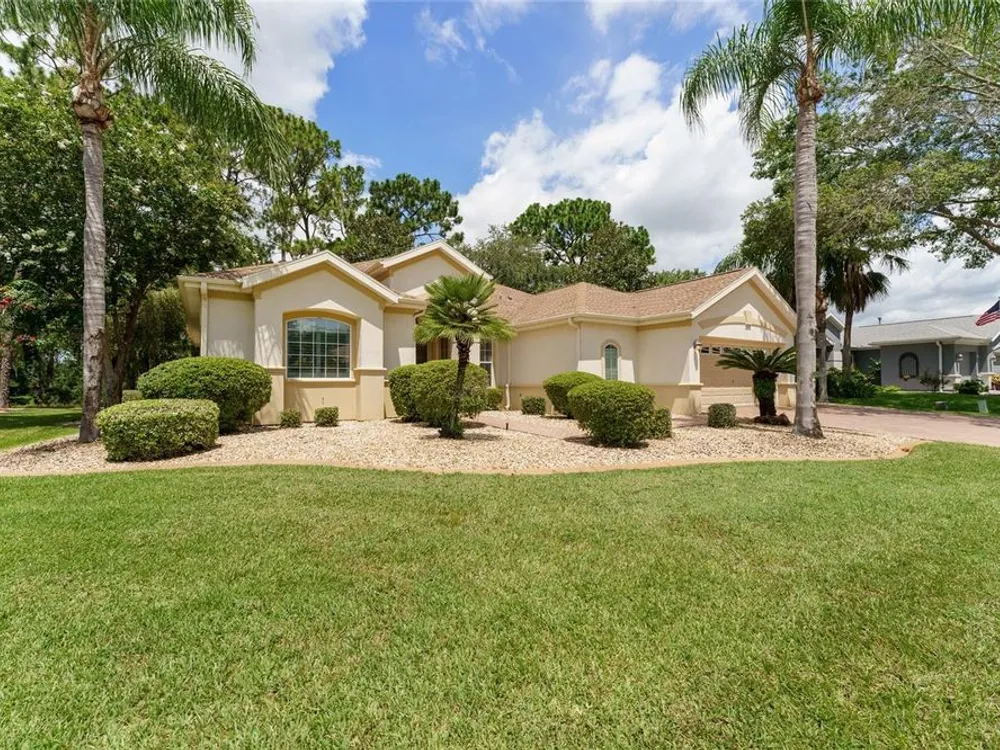 GORGEOUS GOLF COURSE VIEWS - Step into this pristine 2-bedroom, (plus Den/Office/Art Studio/Craft Room) 2 1/2-bathroom home and be captivated by the golf course views of the 7th Green of the Heritage Golf Course in Del Webb's Spruce Creek Golf & Country Club community, located in Summerfield; an hour North of Orlando, 20 minutes South of Ocala and 4 miles North of The Villages, Florida. Entering through the 9' double entry front doors with beveled glass inserts, you will find yourself inside a beautiful home with wonderful appointments. The Formal Living and Dining Rooms are very large and spacious and beyond them you will find an open floor plan with a HUGE kitchen with 42" cabinets, cabinet pull-outs, Corian countertops and tile backsplash; as well as a breakfast nook and 15' x 14' Family Room with gorgeous views of nature in between the home and the golf course. This home has a split bedroom plan (Primary Bedroom has a BRAND NEW waterproof stranded bamboo floor) and an inside laundry room. You will not find a bigger garage than this one, which includes a workshop, parking for 2 cars and a tandem golf cart garage, serviced with a side door to the outside. The home's Roof was replaced in 2018, Generator installed in 2018 and HVAC System in 2017. There are plantation shutters throughout EXCEPT on the back of the home, which would only block the beautiful views outside. There is also crown moldings through-out and 5' basebords. The home is in exceptional condition. Offering a 1 Year Broward Factory Home Warranty. Discover your forever home - schedule a tour today to experience this home first hand.