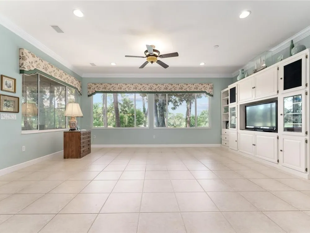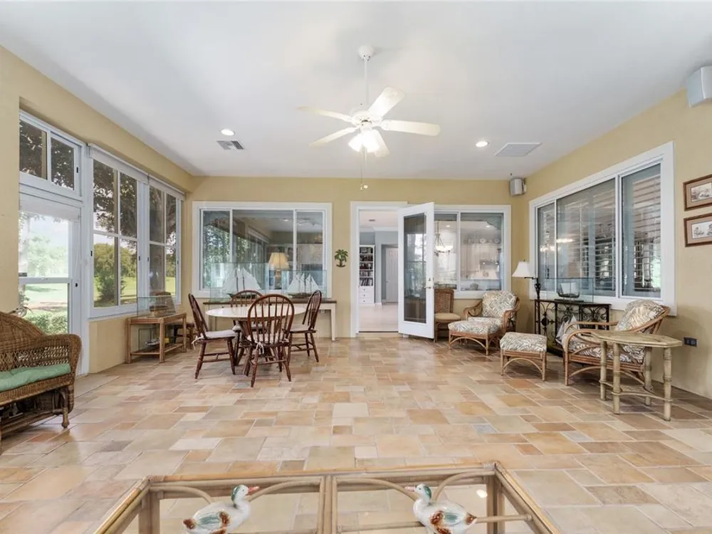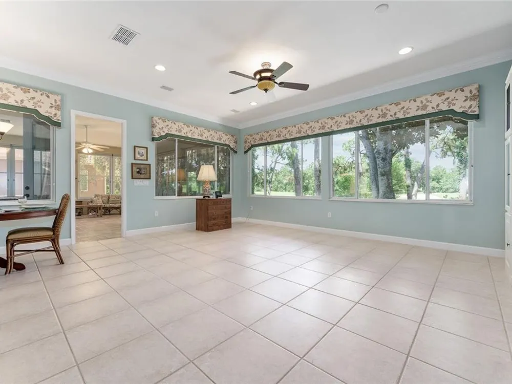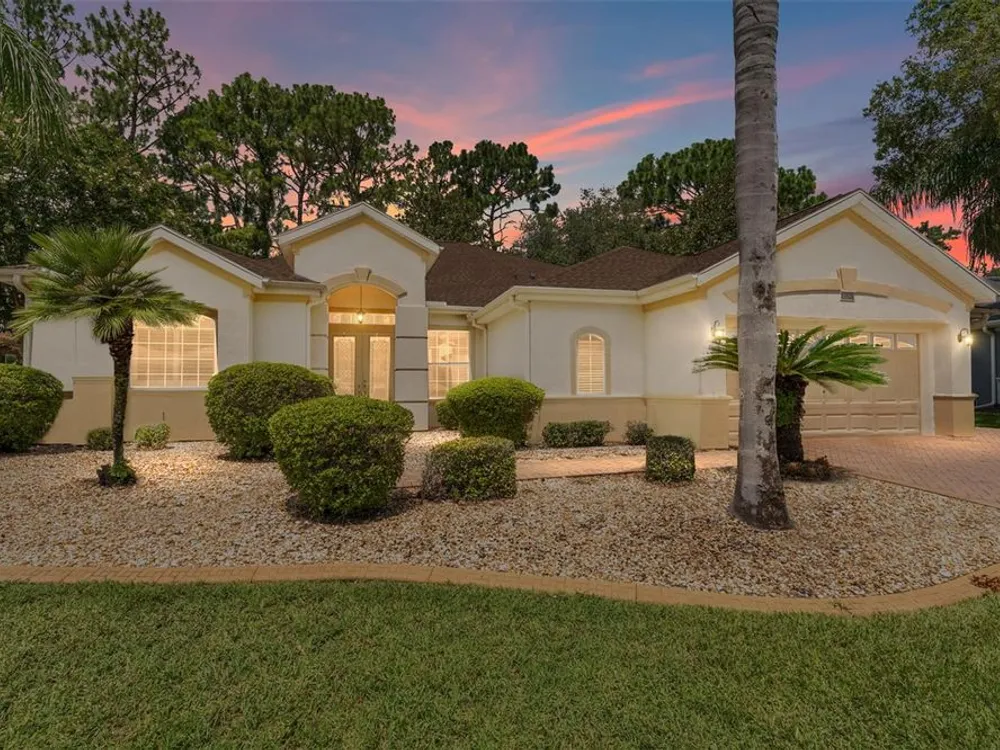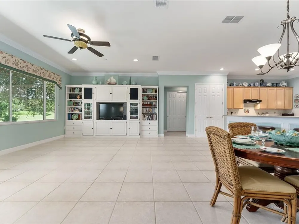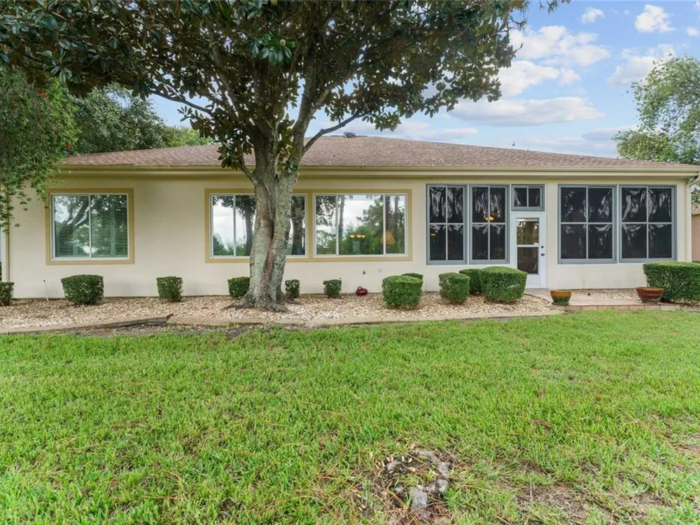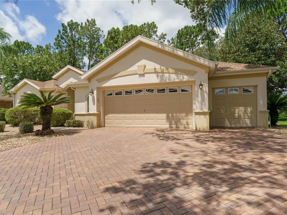 GORGEOUS GOLF COURSE VIEWS - Step into this pristine 2-bedroom, (plus Den/Office/Art Studio/Craft Room) 2 1/2-bathroom home and be captivated by the golf course views of the 7th Green of the Heritage Golf Course in Del Webb's Spruce Creek Golf & Country Club community, located in Summerfield; an hour North of Orlando, 20 minutes South of Ocala and 4 miles North of The Villages, Florida. Entering through the 9' double entry front doors with beveled glass inserts, you will find yourself inside a beautiful home with wonderful appointments. The Formal Living and Dining Rooms are very large and spacious and beyond them you will find an open floor plan with a HUGE kitchen with 42" cabinets, cabinet pull-outs, Corian countertops and tile backsplash; as well as a breakfast nook and 15' x 14' Family Room with gorgeous views of nature in between the home and the golf course. This home has a split bedroom plan (Primary Bedroom has a BRAND NEW waterproof stranded bamboo floor) and an inside laundry room. You will not find a bigger garage than this one, which includes a workshop, parking for 2 cars and a tandem golf cart garage, serviced with a side door to the outside. The home's Roof was replaced in 2018, Generator installed in 2018 and HVAC System in 2017. There are plantation shutters throughout EXCEPT on the back of the home, which would only block the beautiful views outside. There is also crown moldings through-out and 5' basebords. The home is in exceptional condition. Offering a 1 Year Broward Factory Home Warranty. Discover your forever home - schedule a tour today to experience this home first hand.