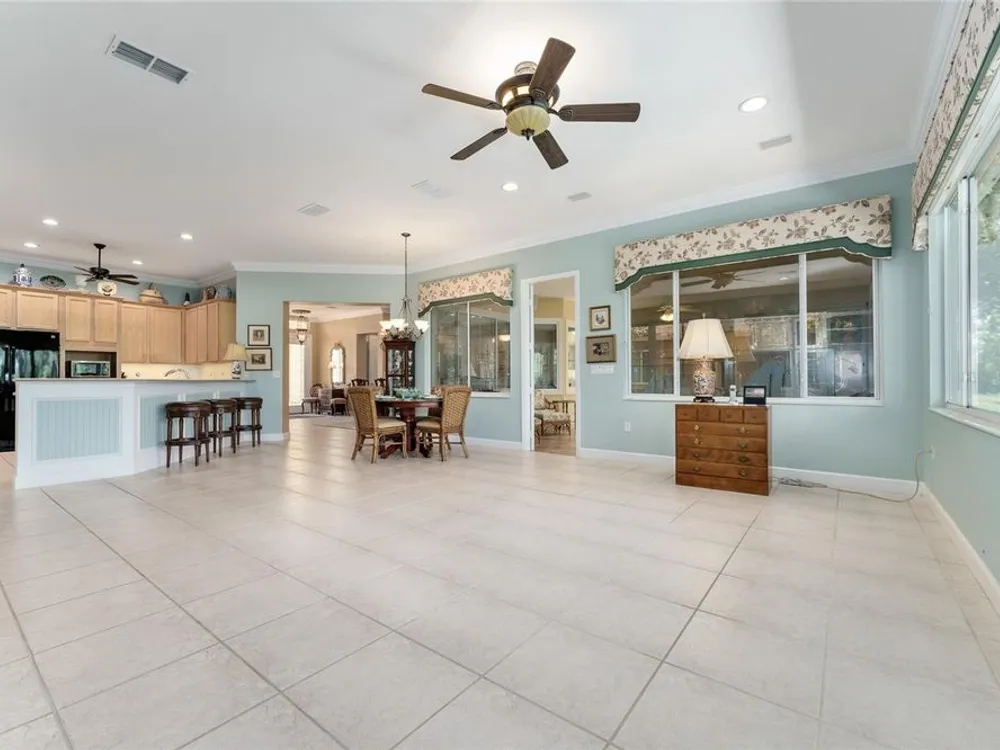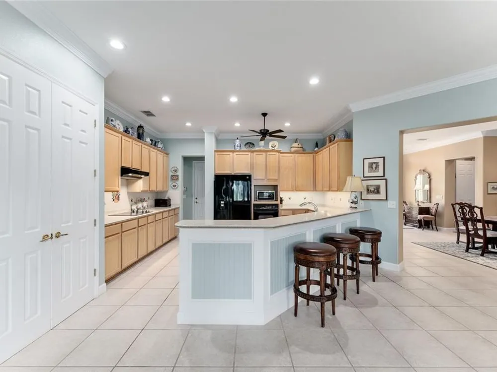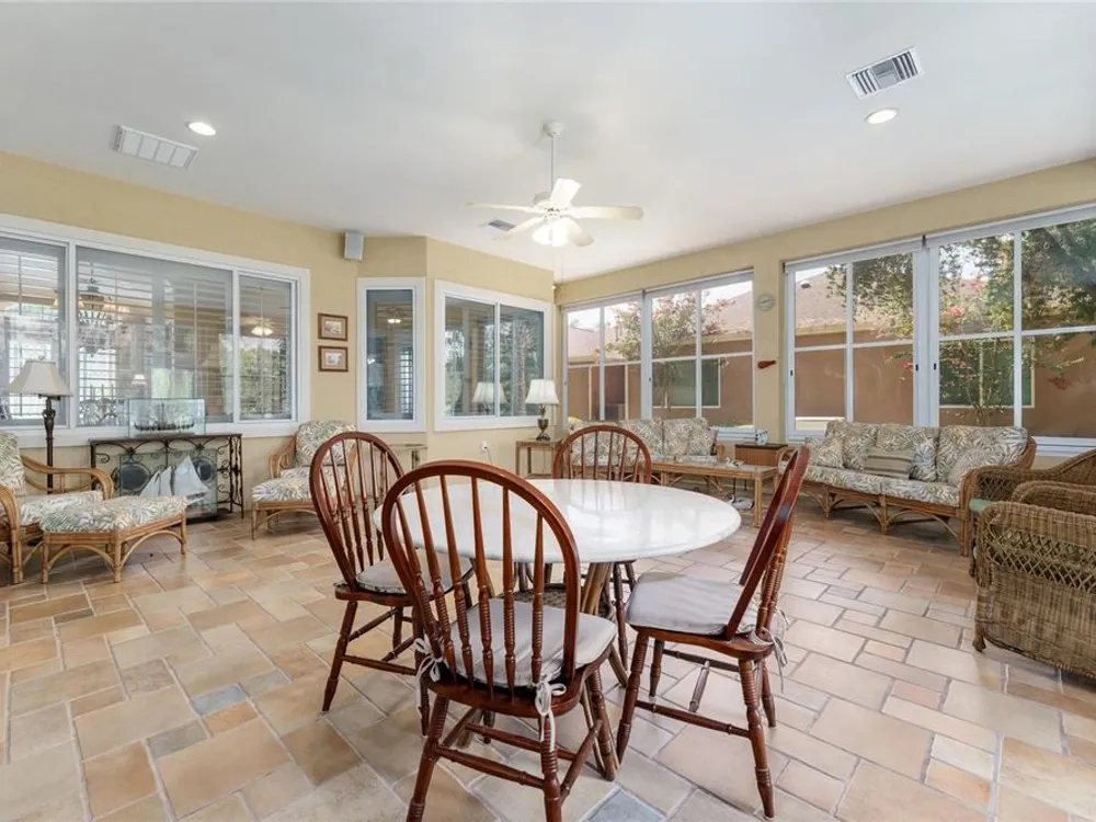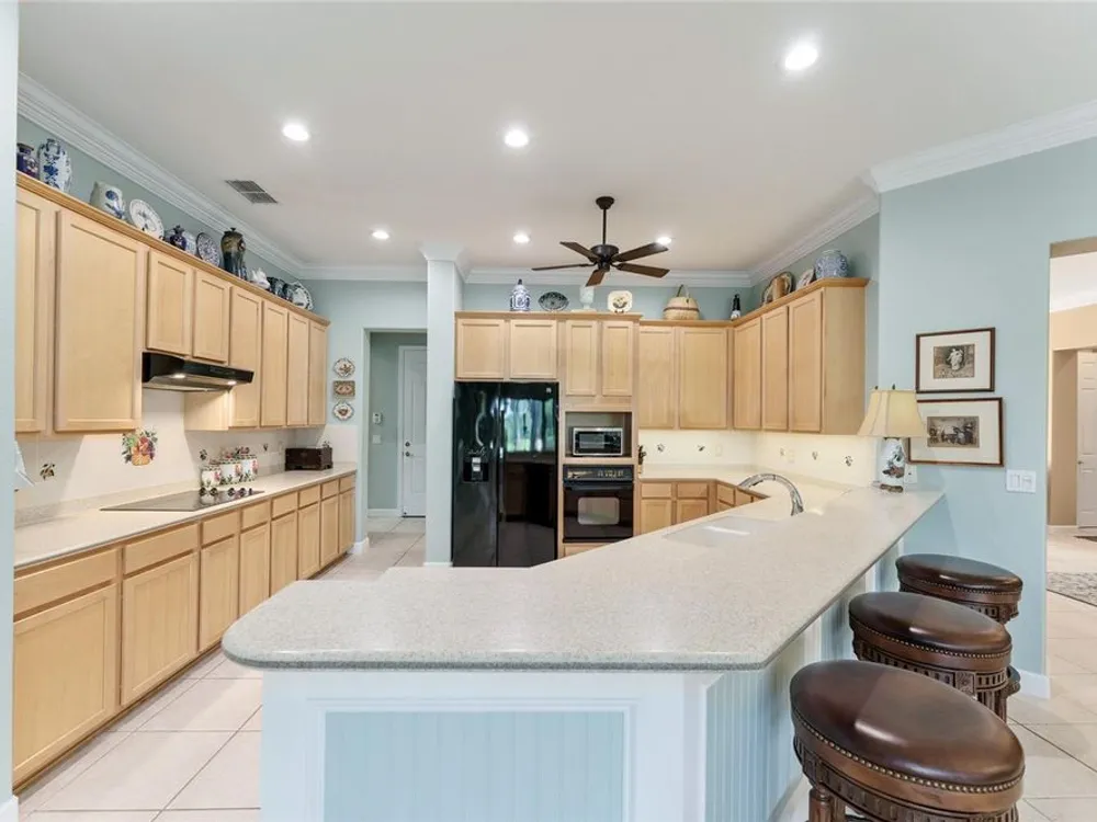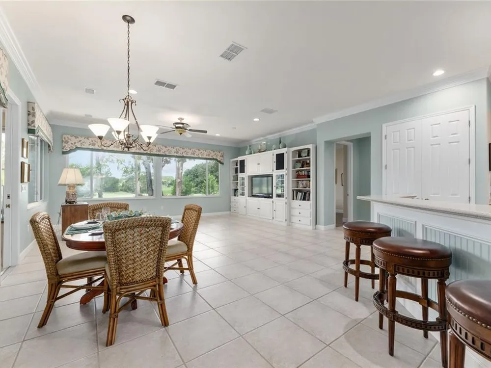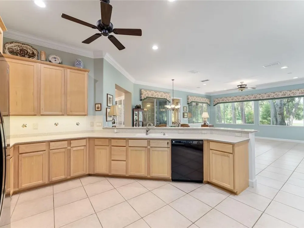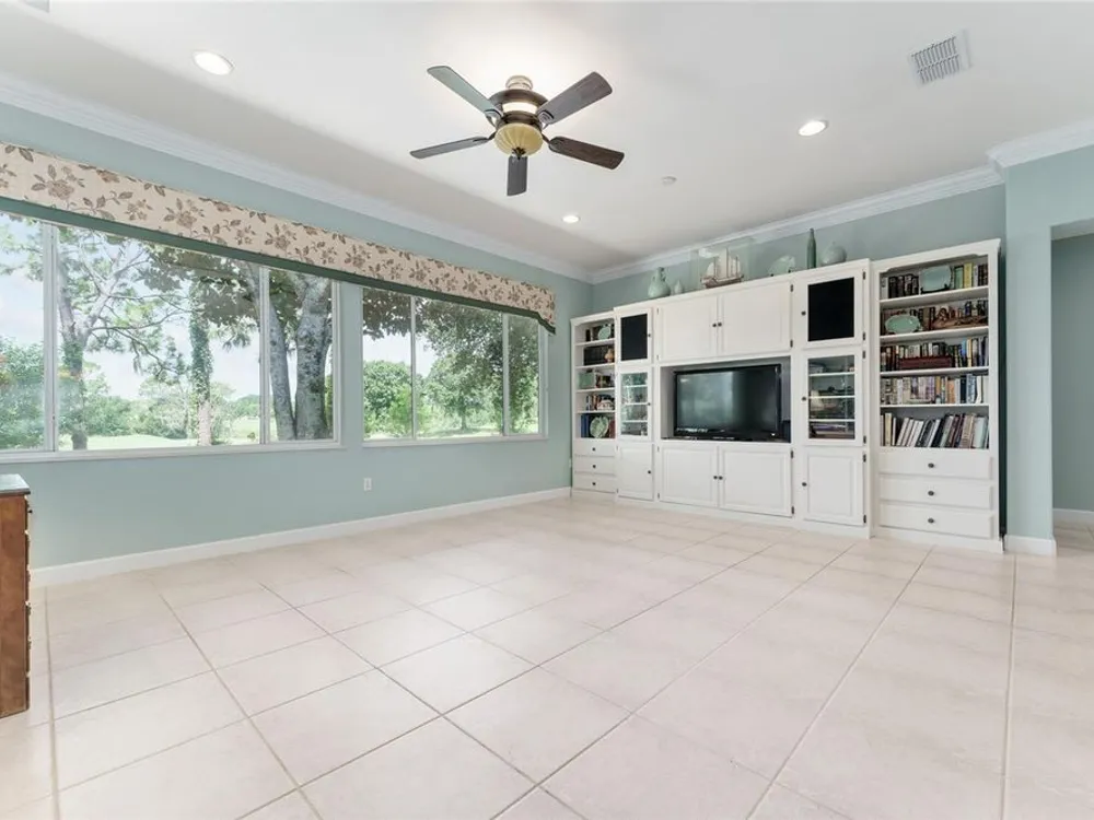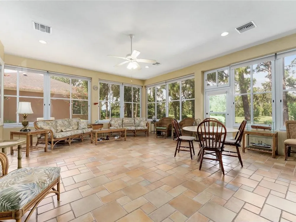 GORGEOUS GOLF COURSE VIEWS - Step into this pristine 2-bedroom, (plus Den/Office/Art Studio/Craft Room) 2 1/2-bathroom home and be captivated by the golf course views of the 7th Green of the Heritage Golf Course in Del Webb's Spruce Creek Golf & Country Club community, located in Summerfield; an hour North of Orlando, 20 minutes South of Ocala and 4 miles North of The Villages, Florida. Entering through the 9' double entry front doors with beveled glass inserts, you will find yourself inside a beautiful home with wonderful appointments. The Formal Living and Dining Rooms are very large and spacious and beyond them you will find an open floor plan with a HUGE kitchen with 42" cabinets, cabinet pull-outs, Corian countertops and tile backsplash; as well as a breakfast nook and 15' x 14' Family Room with gorgeous views of nature in between the home and the golf course. This home has a split bedroom plan (Primary Bedroom has a BRAND NEW waterproof stranded bamboo floor) and an inside laundry room. You will not find a bigger garage than this one, which includes a workshop, parking for 2 cars and a tandem golf cart garage, serviced with a side door to the outside. The home's Roof was replaced in 2018, Generator installed in 2018 and HVAC System in 2017. There are plantation shutters throughout EXCEPT on the back of the home, which would only block the beautiful views outside. There is also crown moldings through-out and 5' basebords. The home is in exceptional condition. Offering a 1 Year Broward Factory Home Warranty. Discover your forever home - schedule a tour today to experience this home first hand.