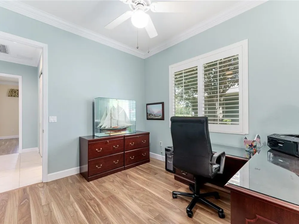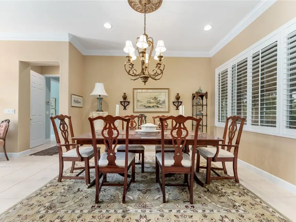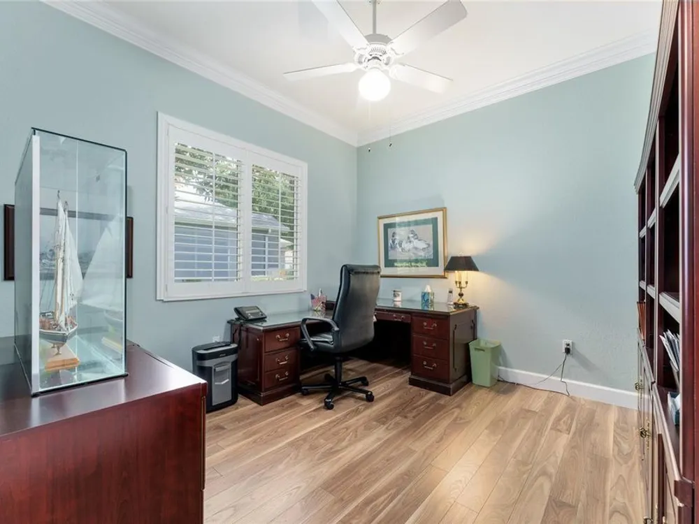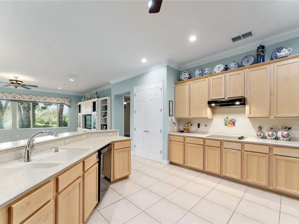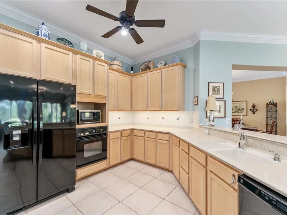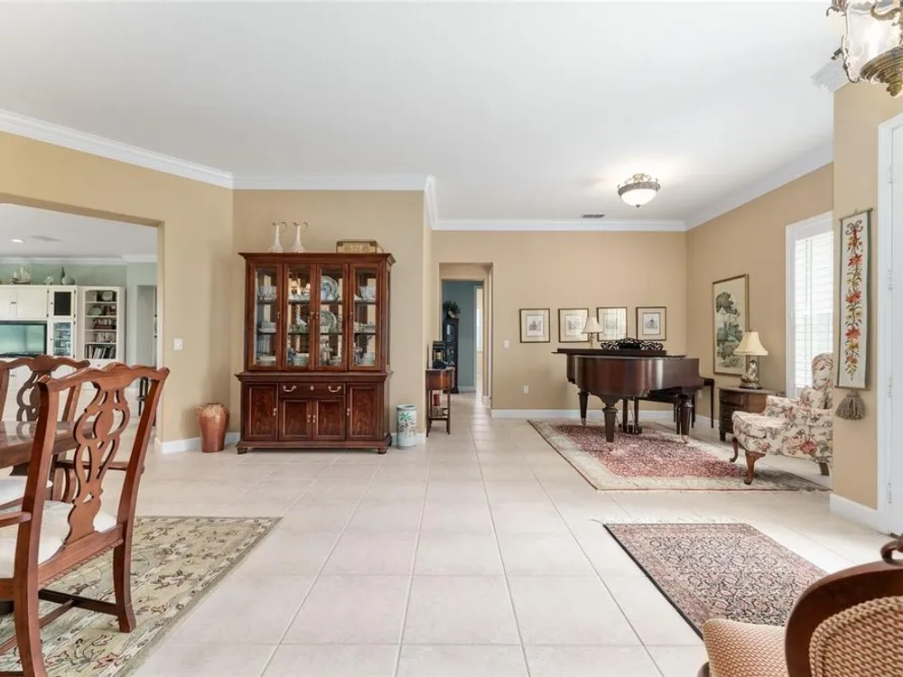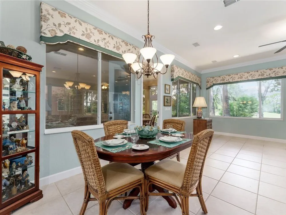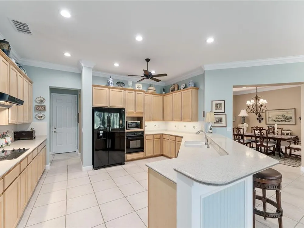 GORGEOUS GOLF COURSE VIEWS - Step into this pristine 2-bedroom, (plus Den/Office/Art Studio/Craft Room) 2 1/2-bathroom home and be captivated by the golf course views of the 7th Green of the Heritage Golf Course in Del Webb's Spruce Creek Golf & Country Club community, located in Summerfield; an hour North of Orlando, 20 minutes South of Ocala and 4 miles North of The Villages, Florida. Entering through the 9' double entry front doors with beveled glass inserts, you will find yourself inside a beautiful home with wonderful appointments. The Formal Living and Dining Rooms are very large and spacious and beyond them you will find an open floor plan with a HUGE kitchen with 42" cabinets, cabinet pull-outs, Corian countertops and tile backsplash; as well as a breakfast nook and 15' x 14' Family Room with gorgeous views of nature in between the home and the golf course. This home has a split bedroom plan (Primary Bedroom has a BRAND NEW waterproof stranded bamboo floor) and an inside laundry room. You will not find a bigger garage than this one, which includes a workshop, parking for 2 cars and a tandem golf cart garage, serviced with a side door to the outside. The home's Roof was replaced in 2018, Generator installed in 2018 and HVAC System in 2017. There are plantation shutters throughout EXCEPT on the back of the home, which would only block the beautiful views outside. There is also crown moldings through-out and 5' basebords. The home is in exceptional condition. Offering a 1 Year Broward Factory Home Warranty. Discover your forever home - schedule a tour today to experience this home first hand.