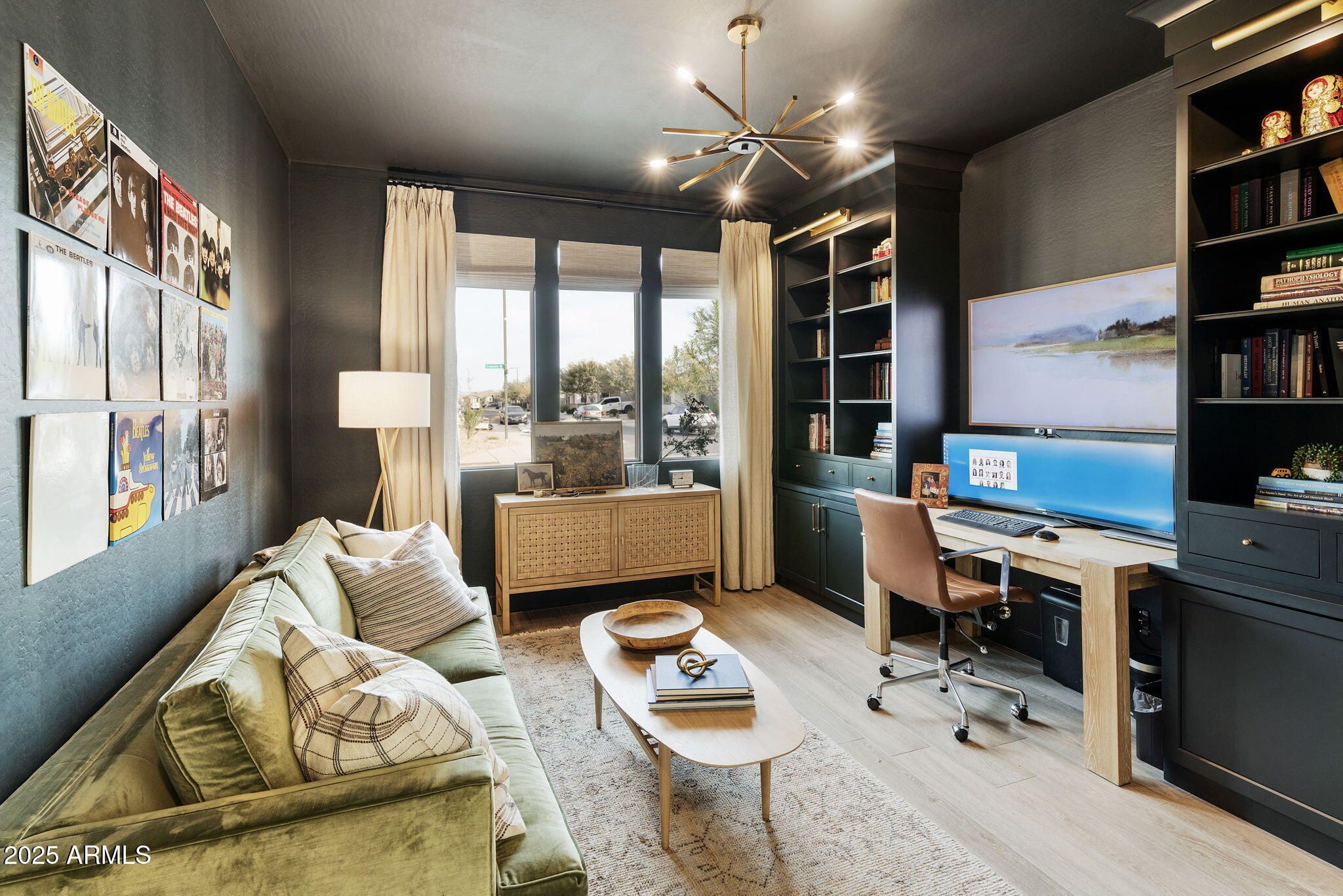 Must see!!! This beautifully designed smart home offers 2beds, 2.5baths & a flex-room. At the heart of the home is the chef inspired kitchen, featuring a large quartz island, stainless steel appliances, and a gas cook top. The kitchen flows seamlessly into the main living and dining areas. The owner's suite has a large walk-in closet, a spa-like bathroom with an upgraded tiled shower, and a raised dbl sink vanity. The 2nd bedroom is a private guest suite with its own full bathroom. The flex-room has custom built-ins. Additional highlights include custom cabinetry, smart shades by Hunter Douglas, drapery, premium light fixtures and tile flooring throughout. The oversized 2-car garage is equipped with a car charger. This smart home offers ease of living at the touch of a button.