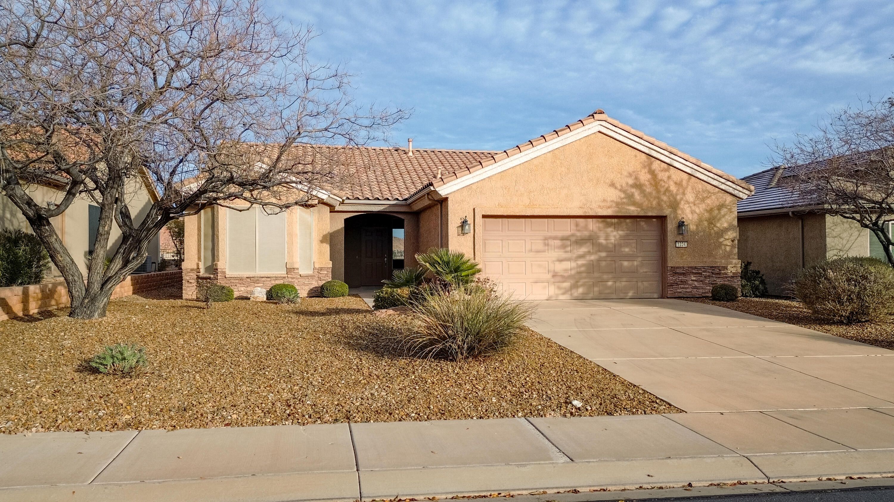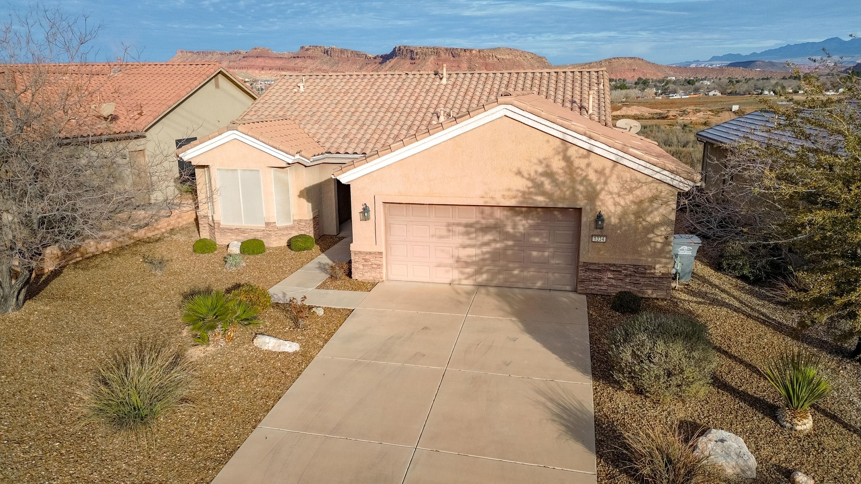 Welcome to this beautifully appointed 2-bedroom, 2-bath home in the premier 55+ community of Sun River St. George. Perfectly situated on an upgraded view lot, the home captures stunning vistas of Pine Valley Mountain and the city below, creating a peaceful backdrop for everyday living. Located near a trailhead, enjoy easy access to scenic walking paths, including a convenient route to the clubhouse and championship golf course. Thoughtfully designed with accessibility in mind, the home features handicap-friendly upgrades such as grab bars in both bathrooms. The garage is a standout, equipped with a mini-split HVAC system for year-round temperature control and a built-in air purification system. SunRiver offers an active lifestyle with indoor and outdoor pools, pickleball, golf, and a wide variety of clubs and activities. Ideally located near grocery stores, dining, a future Costco, movie complex, and endless entertainment options.